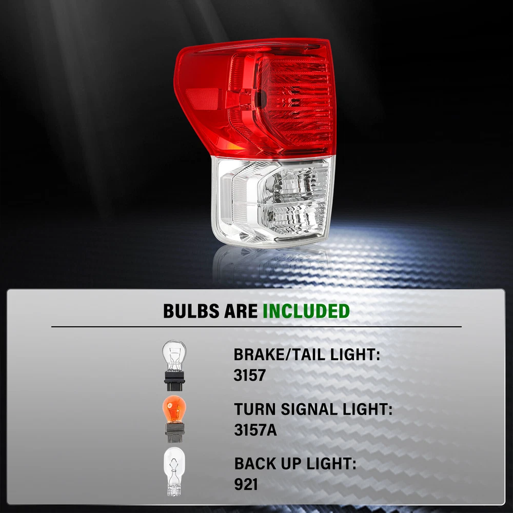 Store Categories Store Categories Other Fits 2007-2013 Tundra Pickup Tail Light Brake Lamp 2007-2013 Product Description Product Features 1. The item is 100% brand new in original box. 2. DOT (Department of Transportation) & SAE (Society of Automotive Engineers) Approved 3. Increase your visibility during heavy rain, snow, dense fog and night time driving. 4. A new headlights upgrade the face of your vehicle with clear style and broad range. 5. Direct Bolt On Replacement For Your Original Tail lights. No Wiring or Any Other Modification Needed. How to Remove Temporary Condensation Way 1. Check if the vents are blocked and switch on the low beam light for about 20 mins Way 2. Take the headlight bulb out and drive out moisture Way 3. Put a silica gel packet in the housing to soak up moisture Compatible with: 2007 2008 2009 20 10 2011 2012 2013 Toyota Tundra Package include s 1 tail light ( Bulbs included ) Payment Policy Shipping Policy Returns Policy About us Payment Policy We accept PayPal and all forms of credit card. Please submit your payment within 7days after your purchase. Otherwise, eBay will automatically open an Unpaid Item Dispute on our behalf if the item(s) are not paid within 7days. We DO NOT SHIP TO PO BOXES, And Customer Needs To Provide a Physical Address. Shipping Policy All Orders Will Ship Within Two Business Days.Except PR,HI,AK,GU and PO Box addresses. No local pick up All Packages Will Be Inspect Before Shipping, We Will Provide All Packing Material Needed For Your Package For Shipping Such As Boxes, Cushioning And Tape To Improve Shipping Quality. Very Important: Double check shipping address. We are not responsible for incorrect or undeliverable addresses. Returns Policy 30 Days returns satisfaction guarantee.90 Days warranty. All of Our Items Are 100% Brand New, We Do Not Sell Anything Other Than That. If The Item Shows Up Defective or Broken, Please Contact Us Within 3 Business Days By Using "Ask A Question" Link Located At The Bottom of Our Listing. Your Questions/Concerns Will Be Responded Within 24 Hours Monday To Friday. Buyers May Contact us On The Weekends or Pubic Holidays And We Will Respond On The Next Working Day. We Will Offer Replacements, Exchange or Full Refund. 100% Satisfaction Guaranteed. We Will File Damage Or Lost Claim For Our Buyers And Guaranteed Buyers Will Receive Products In A Timely Manner. About us Welcome to AU's eBay Store. We specialize in aftermarket automotive car parts and is the #1 industry distributor for affordable and quality products. We have our warehouse in CA.Item will be shipped out within 48 hours after payment cleared via UPS or Fedex. All emails will be answered within 1 business day during our business hours, except on weekends and major holidays. Before leaving us negative review, please contact our C ustomer Support Team first. We will do our best to offer satisfactory service to the customers. Copyright © 2023 Dianxiaomi