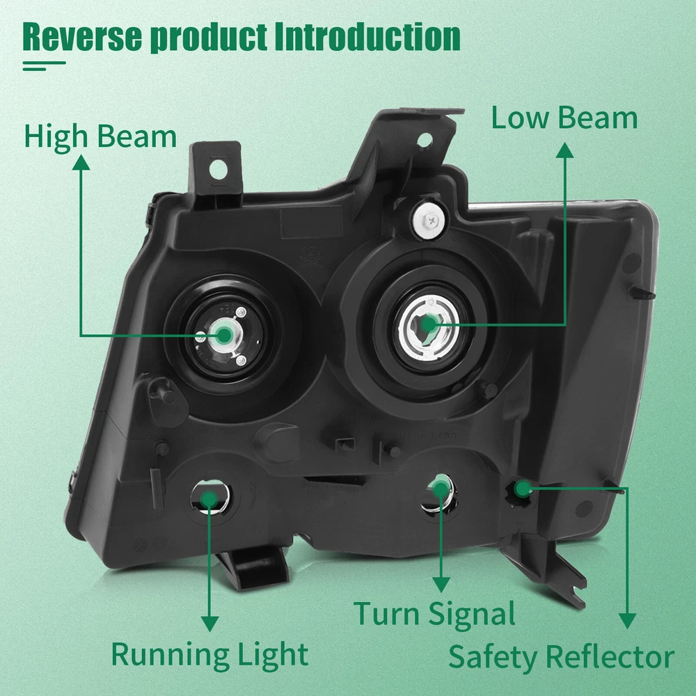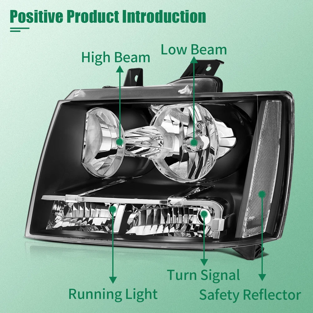 Compatibility should be checked and confirmed before placing order! Steps of confirming the compatibilities: Manage " My Garage ", and chose the right one when placing order; Or chose the " Year / Make / Model / Trim / Engine " of your vehicle on the compatible chart; Or Contact us if you have any question in confirming the compatibility, to make sure you will get the right and compatible item. COMPATIBLE WITH: 2007-2013 Chevy Avalanche 2007-2014 Chevy Suburban 1500 2007-2013 Chevy Suburban 2500 2007-2014 Chevy Tahoe Package Including: Headlights Pair Left+Right Side (Passenger & Driver Side) EASY TO INSTALL: 1.Undo the screws, clips, or retainer springs that hold the headlight in place. 2.Disconnect the wiring from the assembly. 3.Detach the headlight from the vehicle to replace it with a new one. 4.Fit in the new headlight assembly. 5.Fix the new headlight into place and make sure that the screws, clips, or retainer springs are sealed. 6.Reconnect the wiring that was unplugged from the assembly. 7.Put back the grille and other components that you removed. Seal them back into place. 8.Test the new assembly. You will get what you see in the picture showed. About US: We are committed to making the best auto-parts products and providing you with better services. So if you have any quesiton or problem, please fell free to contact us about that. Payment: Paypal and other methods which are acceptalbe by eBay. Shipping: All item will be packed with well condition in box or envelope, we make sure the item is in good protection, also please check all the item when you get the package. Product will be shipped within 2 business days after full payment is received and verified. All domestic orders will be shipped via USPS, UPS or FedEx from our US warehouse and usually arrives to your door in about 2-7 business days. Returns & Refund: 30-day free return will be provided. -Please note that the situations below will not be incounted: -Ordered by mistake. -Don't like it. -Duplicated orders. -Damaged product during installation. Contact Us: Any quesiton or problem, do contact us please. We are always online to answer. WARNING: Cancer and Reproductive Harm - www.P65Warnings.ca.gov. End Save for Web Slices