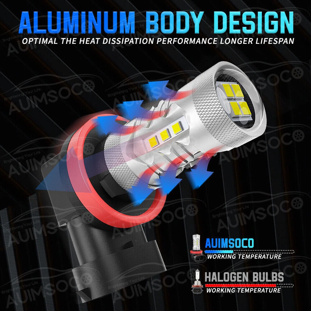 Description: AUIMSOCO LED Headlight Bulb Conversion Kit Upgrade Version 9005/HB3 High Beam + H11 Low Beam Replace Halogen Bulb Specifications: Plug Type: 9005 (High Beam) + H11 (Low Beam) Color Temperature: 6500K -Cold White Headlight Wattage: 40 W/Per Pair Headlight Lumens: 4000LM / Per Pair Working Voltage: DC 9V to 36V Material: Aviation 6063 Aluminum Pprofile Waterproof Level: IP68 Lifespan: > 50,000 Hours Fog Light Specification: Bulb Size: H11 Usage: LED Fog Light Voltage: DC 12V-24V Power: 30W/per pair Lumen: 3000LM/per pair Color Temperature: 6000K Cold White LED Chips: AUIMSOCO customized LED chips Material: Heatsink aluminum shell Fanless: yes, no noise Lifespan: 50,000 hours Waterproof Rate: IP68 Warranty: 1 years warranty Automotive LED Bulbs advantages: 1. AUIMSOCO LED lights than traditional halogen energy, more bright . High focus and max light output with a wider and farther lighting area, Safer Night Driving. 2. Xenon lamp brightness and proximity , but the LED lights light up without delay, to enhance road safety. Instant start no strong currents impact , effectively protecting the car comes with a battery , improving battery life of more than 30%. 3. Fast cooling , the appearance of the most advanced design , thermal structure ingenious and reasonable.Power driver with wide voltage constant current mode , the car can respond to a variety of voltage instability , the effective protection of normal use Led efficient and simple structure. 4. Heating temperature is low , protect the car . Xenon working temperature up to 800 ° -1000 ° , the main reason for the car ignition 5. LED car headlights simple structure, fewer parts than xenon lamps, significantly lower than the xenon lamp failure rates ! Package Includes: 1x Pair 9005/HB3 High Beam 1x Pair H11 Low Beam 1x Pair H11 Fog Lights Randomly send new and old packaging boxes Warm Tips: This model comes in multiple models, If you are not sure about the bulb size, please send us your vehicles' make/model/year via ebay message to confirm with us before purchasing. Any questions please feel free to contact us, we will help you solve it.