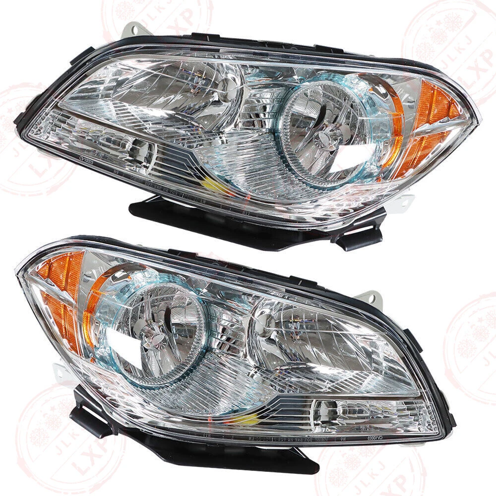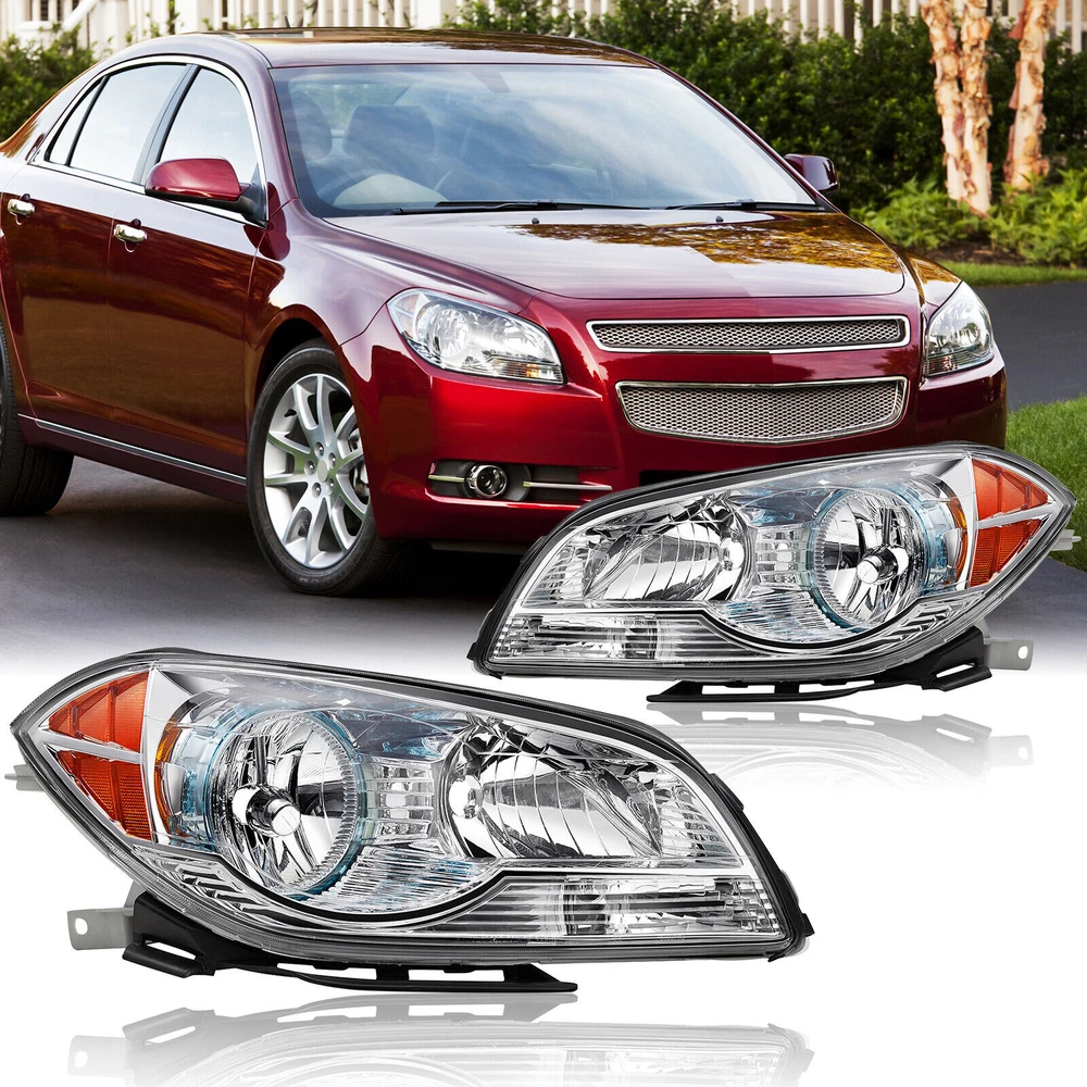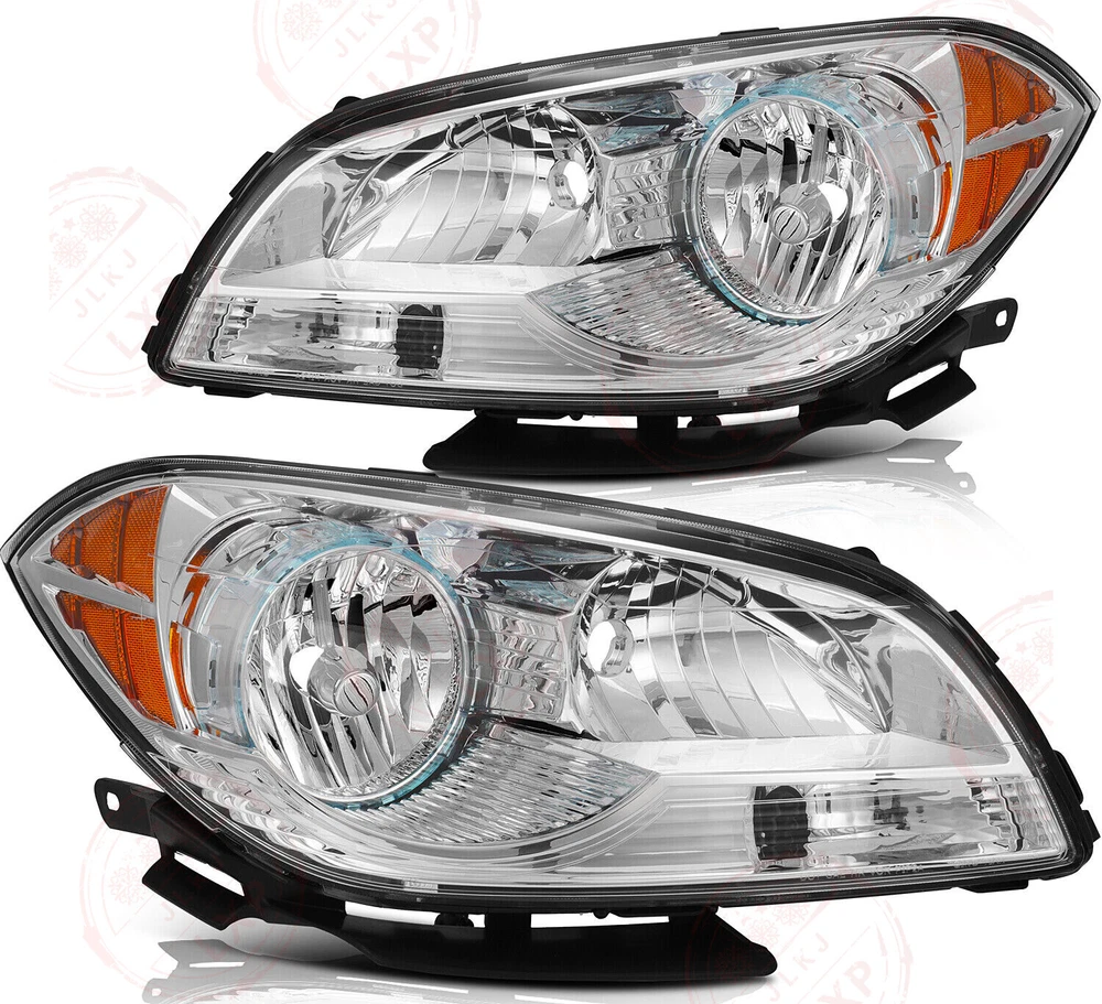For 2008-2012 Chevy Malibu Pair Headlights Assembly Chrome Set Headlamp W/ Amber