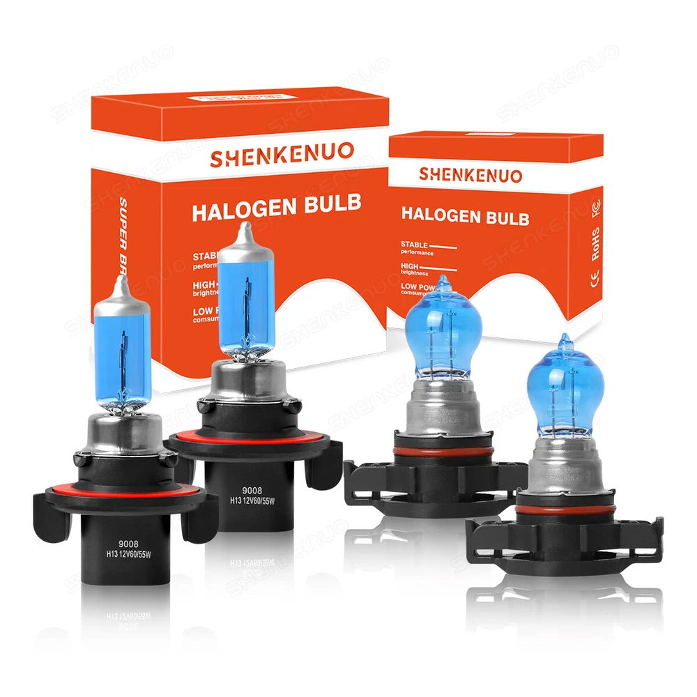 Specifications: • Bulb Socket: H13 9008 + 5202 2504 PS24W • Color Temperature: 4200K • Voltage(V): DC 12V • Working temperature: -40℃~+80℃ • Beam Angle: 360° • Waterproof Level: IP65 • Material: Aviation Aluminium • Super Long Service Life: ≥800 Hours • Warranty: 5 Year • Canbus Error Free: No. For most vehicles, just directly plug and play. Yet for some vehicles with CAN-BUS system, it may require install decoder or load resistor to avoid hyper flash or fast blinking. • Please Note: Please check your car manual or original bulb to confirm the bulb size, length is correct or not before purchasing to save your time. Package Included: • 2Pcs 9008/H13 Halogen Bulbs High Low Beam • 2Pcs 5202/PS24W Halogen Bulbs Fog Light (Random shipment of new and old packaging) Note: • Energy saving, environmental protection, Stable performance, through strict test, Use safer driving in the car • For most cars, just Plug-n-Play,no ballast required. Yet for some European vehicles or new vehicles, load resistors maybe required to avoid the error code or blinking. • When installing this bulb, please make sure to turn the car off, and key out. Bulbs are very easy to install. You just have to plug it in the socket. ( bulb has + AND -terminal. If it doesn't light up after inserting into the socket, all you need to do is insert it oppositely.) • The compatible vehicle list shows only partial cars due to the ebay limits, if your car plug is same with this bulb, the item will fit your car. • If you're not sure about it, please send us an ebay message and tell us your car year, make, model and the position you need to replace, we will help you check with it. • If you have a decoding problem or any other problems, please contact us first, we will help you with it. I'm a new seller, thanks a lot for your trust and convince! I will serve you with all my heart.