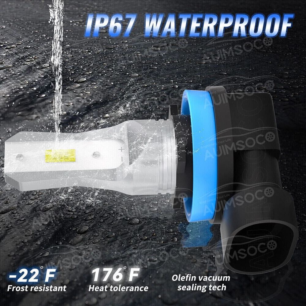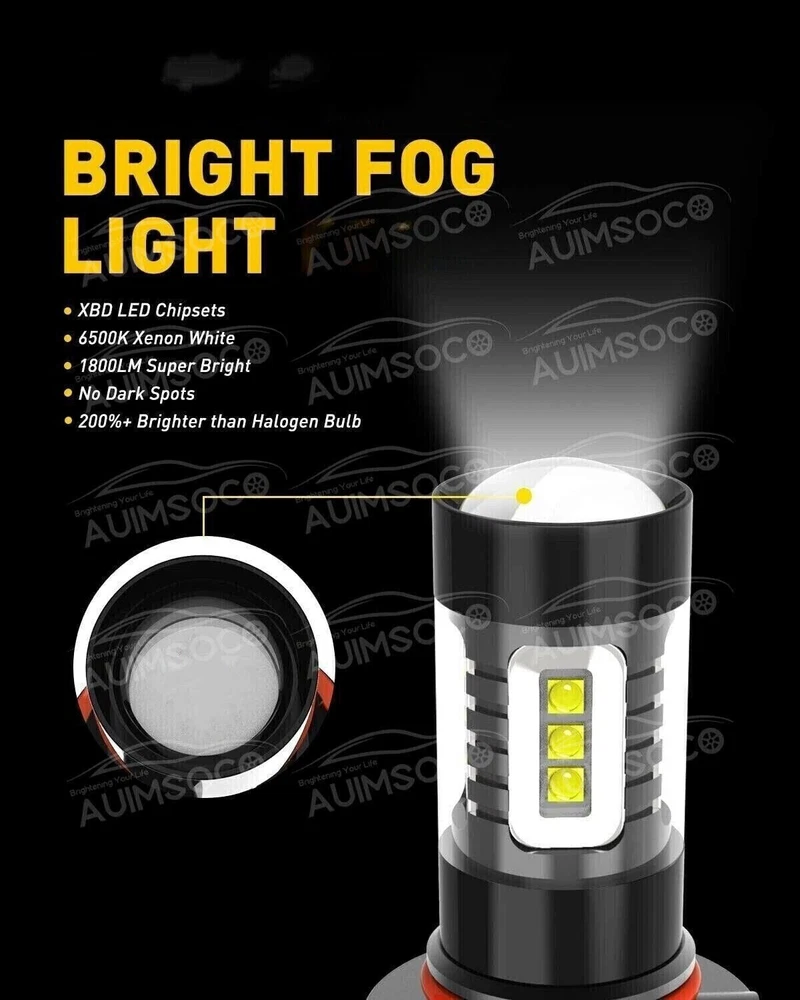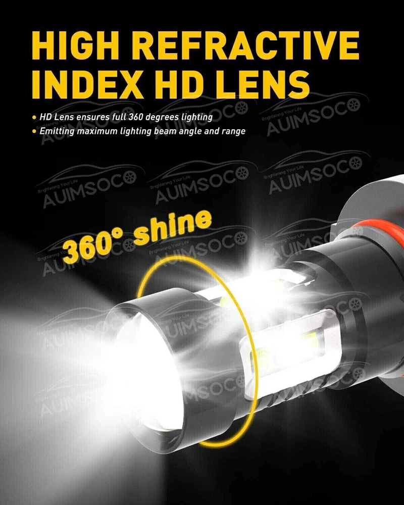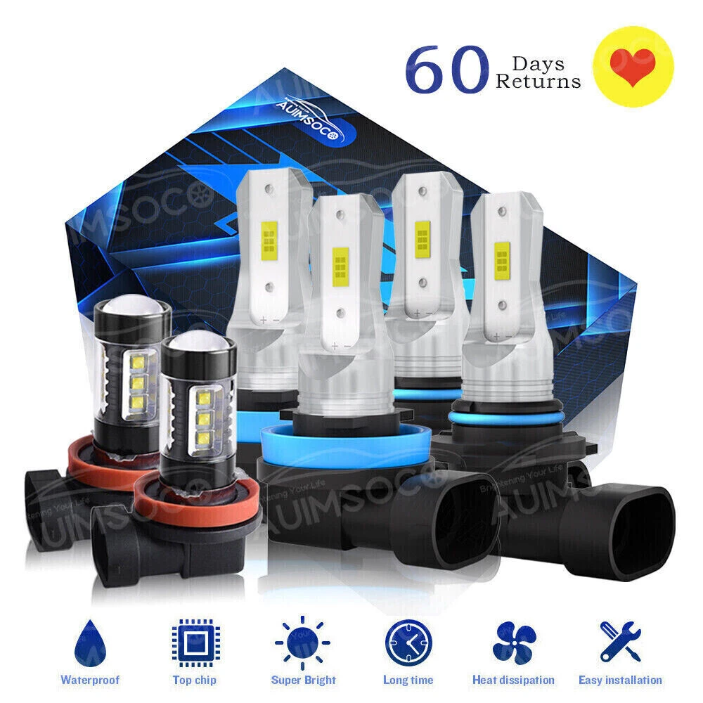 Package Content: 2x H11/H8 Low Beam LED Headlights Bulbs 2x 9005/HB3 High Beam LED Headlights Bulbs 2x H11 Fog Light Bulbs ● 300% Brighter: Equipped with high luminous efficacy CSP chips.300% Brighter than standard halogen. Our LED headlight bulbs ensure the clarity of vision allows drivers easy to react to sudden movement. Effectively illuminate wildlife, falling rocks and obstacles. Huge improvement for road safety. ● Ideal Beam Pattern: AUIMSOCO LED bulb features 0.12inch slim led chips distance design that almost can emit 360 degrees illumination angle. Super focused beam pattern as stock halogen lamp, no dark spots or glare to oncoming drivers, avoiding scattered light problem to ensure safety. ● 50,000 Hours Lifespan: Efficient cooling system speed up heat dissipation to ensure LED headlight bulbs superior performance, lifespan up to 50,000 hours. ● 10 Mins Quick Install: Built-in driver and non-polarity plug, 1:1 same filament position as stock halogen. LED headlight small size design for higher compatibility in factory housing. No modification required,easy installation in 10 mins. Just Plug & play! ● Superb Performance: CANbus ready and fits 99% vehicles without issue. Integrated with CSP chip, no radio interference. IP67 waterproof feature makes it work perfectly on any extreme weather, like rainy day, snowy day, foggy day, hazy weather,etc. ● Unique Fanless Design: Our led bulbs, without fans at the bottom, provide you a quiet driving environment and do not affect the heat dissipation of the lights. Specifications: --Plug type: 9005/HB3+H11/H8+H11 --Condition: Brand New / Never Used --Voltage: DC 9-32V ( Fit 12V,24V Vehicle ) --Color Temperature : 6000K White --IP Rate: IP67 --LED type:CSP LEDs --Color Temperature: 6000K-6500K White --Beam Angle: 360° --Operating Temperature: -40 - +105°C --Lifespan: 50,000+ working hours --Number of Bulbs: 6 --To Fit: Headlights Kit + Fog Light --Placement on Vehicle: Left,Right,Front --Material: Aluminum alloy --Application: Headlight (High + Low Beam Head Lights )+Fog Light Bulbs