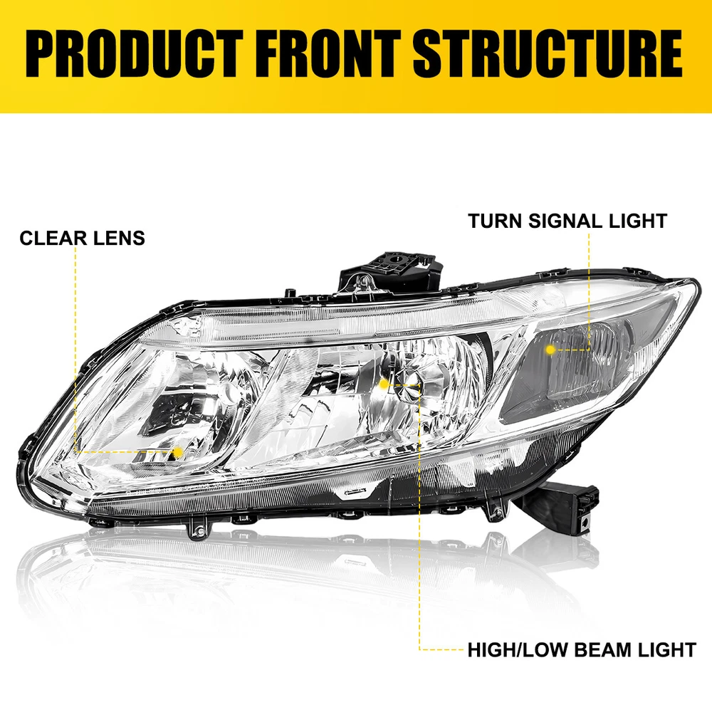 Fit for: 2012-2015 Honda Civic 4Dr Sedan 2012-2013 Honda Civic 2Dr Coupe Specifications: OE number: 33150TR0A01,33400TR0A01,33150TR2A01,331400TR2A01 HO2502144, HO2503144, HO2502150, HO2503150 Material: ABS+PC (ABS Plastic Housing/Polycarbonate lens) Appearance color: 1.Housing Color:Chrome 2.Lens Color:Clear 3.Reflector Color:White Note: Projector ×( Not Include) DRL × (Not Include) Bulb × ( Not include) Features: *Easy to install: Direct replacement, drilling and cutting are not required. For 2012-15 Honda Civic Sedan 12-13 Coupe Chorme Headlights Assembly Pair Fit for: 2012-2015 Honda Civic 4Dr Sedan 2012-2013 Honda Civic 2Dr Coupe Specifications: OE number: 33150TR0A01,33400TR0A01,33150TR2A01,331400TR2A01 HO2502144, HO2503144, HO2502150, HO2503150 Material: ABS+PC (ABS Plastic Housing/Polycarbonate lens) Appearance color: 1.Housing Color:Chrome 2.Lens Color:Clear 3.Reflector Color:White Note: Projector ×( Not Include) DRL × (Not Include) Bulb × ( Not include) Features: *Easy to install: Direct replacement, drilling and cutting are not required. *Superior quality: Made of ABS and PC materials with toughness and heat resistance functions to ensure its long service life and durability. *Angle adjustment: Equipped with a headlamp Angle adjustment knob, you can adjust the best Angle of view through the knob. *Suggestion: 1.Please confirm the OE number before purchasing!!! 2.Professional installation is required!!! Packaging include: Headlights*2(Left+Right) Item Specifics Other Part Number HO2502144, HO2503144,HO2502145, HO2503145 High Beam Bulb Type 9005 Bulb (No Included) Bulbs Included No Fitment Type Direct Replacement Items Included Driver Side & Passenger Side Low Beam Bulb Type 9006 Bulb (No Included) Manufacturer Part Number F09W140001 Number of Bulbs 0 Turn Signal Bulb Type 7443 Bulb (No Included) Placement on Vehicle Front Left Right California Prop 65 Warning This product can expose you tochemicals including dehp, which are known to the State of California to cause cancer and birth defects or other reproductive harm. Brand AUXITO Bulb Shape Code 9005;9006 Type Headlight Assembly Interchange Part Number 33150TR0A01,33400TR0A01,33150TR2A01,331400TR2A01 Manufacturer Warranty 1 Year OE/OEM Part Number HO2503144 HO2502150 HO2503150 Housing Color Chrome Fits for 2 For 2012-2013 Honda Civic 2-Door Coupe Features DOT-Certified SAE-Certified Fits for 1 For 2012-2015 Honda Civic 4-Door Sedan Lens Color Clear Lighting Technology Halogen Superseded Part Number 33150TR0A01,33400TR0A01,33150TR2A01,331400TR2A01 Payment Returns DESCRIPTION PAYMENT SHIPPING RETURN POLICY CONTACT US Shop Category Store Home LED Headlight ◈ H4 ◈ H13 LED Reverse Light ◈ T15/921/W16W LED License Plate Light LED Side Marker Light Car Parts & Accessories Tail Light assemblies Other Hot Item Picture New List Item 4PC Smoked Lens LED Front Side Lamp Marker White For 2003-09 Dodge Ram 2500 3500 USD 15.99 Smoked Lens White LED Bumper Rear Side Marker Lights For 1993-2002 Chevy Camaro USD 22.29 For 2016-2018 Honda HRV HR-V Chrome Housing Headlights Assembly Left&Right Pair USD 145.99 For 2015-2020 Chevy Tahoe Suburban [OE Style] LED DRL Headlights Headlamps LH USD 139.99 Pair Halogen Headlight Set For 2011-2015 Chevrolet Chevy Cruze 4-Door Sedan EOV USD 113.99 Help & Info Payment Policy Shipping Policy Return Policy FAQ About Us For 2012-15 Honda Civic Sedan 12-13 Coupe Chorme Headlights Assembly Pair Fit for: 2012-2015 Honda Civic 4Dr Sedan 2012-2013 Honda Civic 2Dr Coupe Specifications: OE number: 33150TR0A01,33400TR0A01,33150TR2A01,331400TR2A01 HO2502144, HO2503144, HO2502150, HO2503150 Material: ABS+PC (ABS Plastic Housing/Polycarbonate lens) Appearance color: 1.Housing Color:Chrome 2.Lens Color:Clear 3.Reflector Color:White Note: Projector ×( Not Include) DRL × (Not Include) Bulb × ( Not include) Features: *Easy to install: Direct replacement, drilling and cutting are not required. *Superior quality: Made of ABS and PC materials with toughness and heat resistance functions to ensure its long service life and durability. *Angle adjustment: Equipped with a headlamp Angle adjustment knob, you can adjust the best Angle of view through the knob. *Suggestion: 1.Please confirm the OE number before purchasing!!! 2.Professional installation is required!!! Packaging include: Headlights*2(Left+Right) Payment Returns All rights reserved. On Dec 17, 2024 at 07:47:49 PST, seller added the following information:
