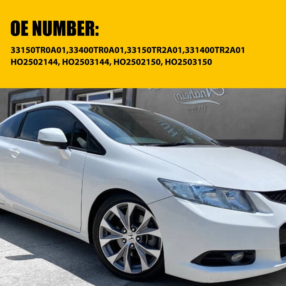 Fit for: 2012-2015 Honda Civic 4Dr Sedan 2012-2013 Honda Civic 2Dr Coupe Specifications: OE number: 33150TR0A01,33400TR0A01,33150TR2A01,331400TR2A01 HO2502144, HO2503144, HO2502150, HO2503150 Material: ABS+PC (ABS Plastic Housing/Polycarbonate lens) Appearance color: 1.Housing Color:Chrome 2.Lens Color:Clear 3.Reflector Color:White Note: Projector ×( Not Include) DRL × (Not Include) Bulb × ( Not include) Features: *Easy to install: Direct replacement, drilling and cutting are not required. For 2012-2015 Honda Civic Sedan 12-13 Coupe Chorme Headlights Assembly Pair Fit for: 2012-2015 Honda Civic 4Dr Sedan 2012-2013 Honda Civic 2Dr Coupe Specifications: OE number: 33150TR0A01,33400TR0A01,33150TR2A01,331400TR2A01 HO2502144, HO2503144, HO2502150, HO2503150 Material: ABS+PC (ABS Plastic Housing/Polycarbonate lens) Appearance color: 1.Housing Color:Chrome 2.Lens Color:Clear 3.Reflector Color:White Note: Projector ×( Not Include) DRL × (Not Include) Bulb × ( Not include) Features: *Easy to install: Direct replacement, drilling and cutting are not required. *Superior quality: Made of ABS and PC materials with toughness and heat resistance functions to ensure its long service life and durability. *Angle adjustment: Equipped with a headlamp Angle adjustment knob, you can adjust the best Angle of view through the knob. *Suggestion: 1.Please confirm the OE number before purchasing!!! 2.Professional installation is required!!! Packaging include: Headlights*2(Left+Right) Item Specifics Other Part Number HO2502144, HO2503144,HO2502145, HO2503145 High Beam Bulb Type 9005 Bulb (No Included) Bulbs Included No Fitment Type Direct Replacement Items Included Driver Side & Passenger Side Low Beam Bulb Type 9006 Bulb (No Included) Manufacturer Part Number F09W140001 Number of Bulbs 0 Turn Signal Bulb Type 7443 Bulb (No Included) Placement on Vehicle Front Left Right California Prop 65 Warning This product can expose you tochemicals including dehp, which are known to the State of California to cause cancer and birth defects or other reproductive harm. Brand AUXITO Bulb Shape Code 9005;9006 Type Headlight Assembly Interchange Part Number 33150TR0A01,33400TR0A01,33150TR2A01,331400TR2A01 Manufacturer Warranty 1 Year OE/OEM Part Number HO2503144 HO2502150 HO2503150 Housing Color Chrome Fits for 2 For 2012-2013 Honda Civic 2-Door Coupe Features DOT-Certified SAE-Certified Fits for 1 For 2012-2015 Honda Civic 4-Door Sedan Lens Color Clear Lighting Technology Halogen Superseded Part Number 33150TR0A01,33400TR0A01,33150TR2A01,331400TR2A01 Payment Returns DESCRIPTION PAYMENT SHIPPING RETURN POLICY CONTACT US Shop Category Store Home LED Headlight ◈ H4 ◈ H13 LED Reverse Light ◈ T15/921/W16W LED License Plate Light LED Side Marker Light Car Parts & Accessories Tail Light assemblies Other Hot Item Picture New List Item For 2016-2018 Honda HRV HR-V Chrome Housing Headlights Assembly Left&Right Pair USD 145.99 For 2015-2020 Chevy Tahoe Suburban [OE Style] LED DRL Headlights Headlamps LH USD 139.99 Smoked Lens White LED Bumper Rear Side Marker Lights For 1993-2002 Chevy Camaro USD 22.29 Pair Halogen Headlight Set For 2011-2015 Chevrolet Chevy Cruze 4-Door Sedan EOV USD 113.99 4PC Smoked Lens LED Front Side Lamp Marker White For 2003-09 Dodge Ram 2500 3500 USD 15.99 Help & Info Payment Policy Shipping Policy Return Policy FAQ About Us For 2012-2015 Honda Civic Sedan 12-13 Coupe Chorme Headlights Assembly Pair Fit for: 2012-2015 Honda Civic 4Dr Sedan 2012-2013 Honda Civic 2Dr Coupe Specifications: OE number: 33150TR0A01,33400TR0A01,33150TR2A01,331400TR2A01 HO2502144, HO2503144, HO2502150, HO2503150 Material: ABS+PC (ABS Plastic Housing/Polycarbonate lens) Appearance color: 1.Housing Color:Chrome 2.Lens Color:Clear 3.Reflector Color:White Note: Projector ×( Not Include) DRL × (Not Include) Bulb × ( Not include) Features: *Easy to install: Direct replacement, drilling and cutting are not required. *Superior quality: Made of ABS and PC materials with toughness and heat resistance functions to ensure its long service life and durability. *Angle adjustment: Equipped with a headlamp Angle adjustment knob, you can adjust the best Angle of view through the knob. *Suggestion: 1.Please confirm the OE number before purchasing!!! 2.Professional installation is required!!! Packaging include: Headlights*2(Left+Right) Payment Returns All rights reserved. On Dec 17, 2024 at 11:22:15 PST, seller added the following information: