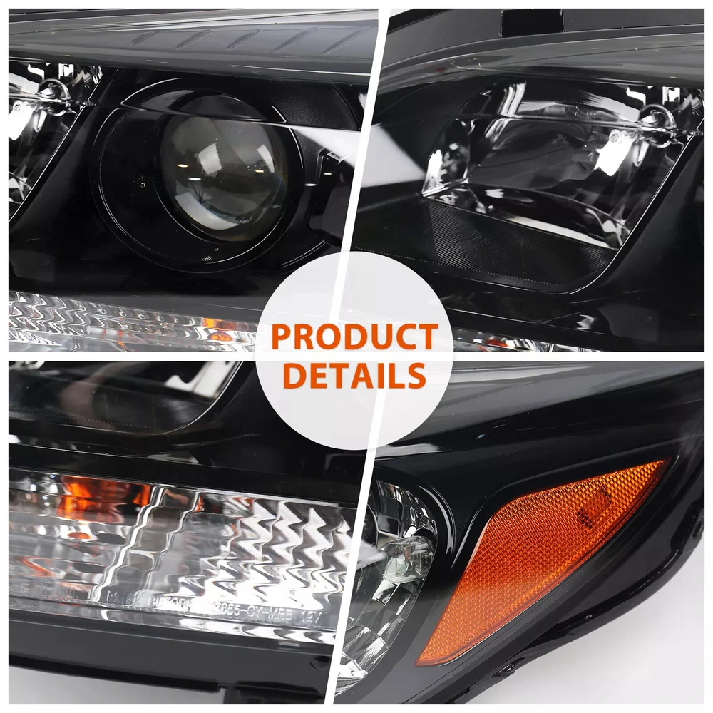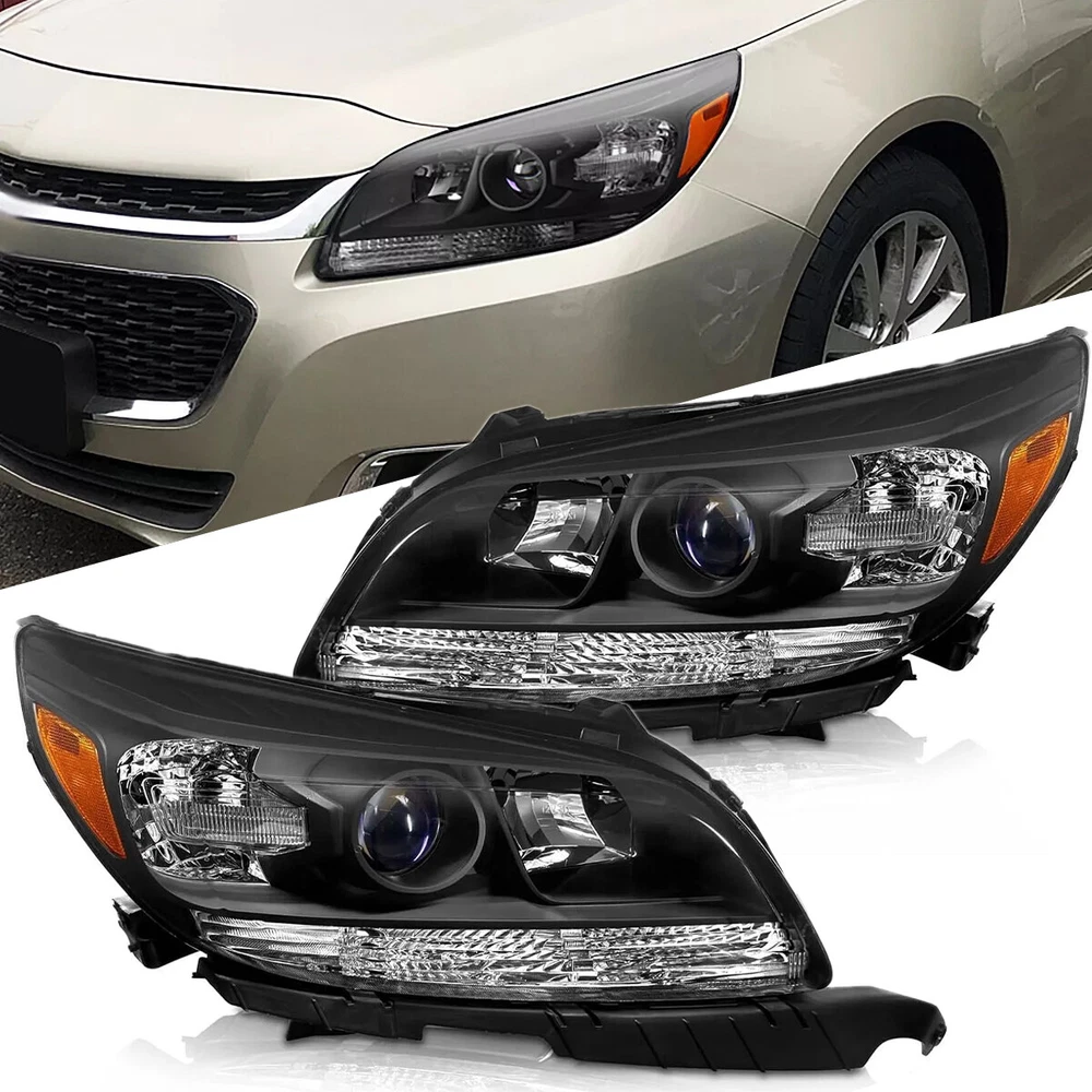 For 2013-2015 Chevrolet Malibu Black Housing Projector Headlight Assembly Pair