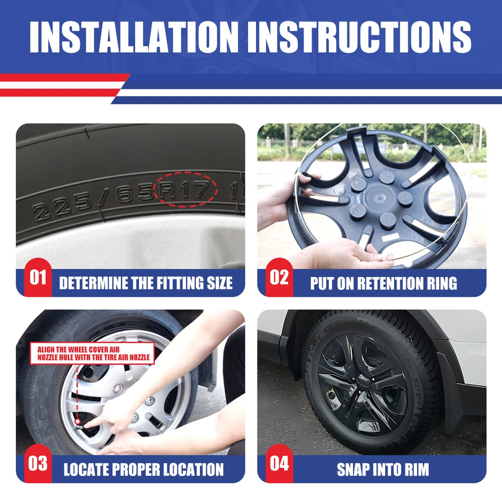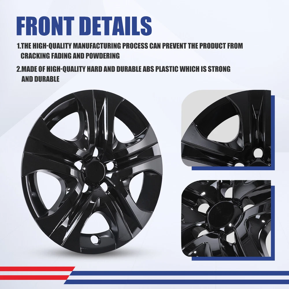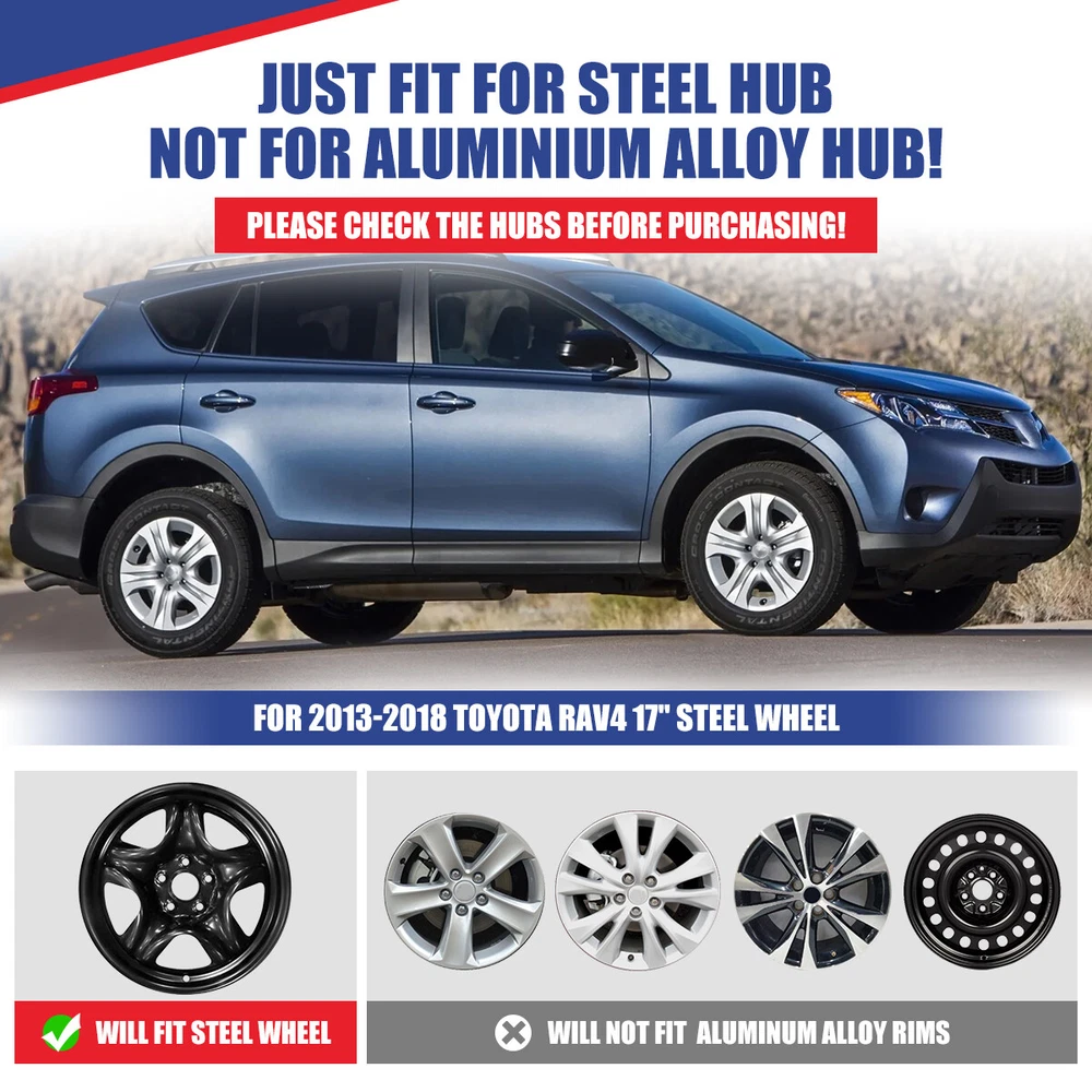 For 2013-2018 Toyota RAV4 17 Inches Hubcap Set of 4 Wheel Rim Skin Cover Specification: 👍 Fitment: Standard 17" silver steel wheel Covers. Compatible with 2013 2014 2015 2016 2017 2018 Toyota Rav4. These only compatible with Rav4 17" black steel wheels. Please check your tire/wheel size before purchasing. 👍 Feature: High Quality Come With Silver. Painted Silver for a beautiful finish. Hubcaps snap on just like the previous RAV4 hubcaps do, providing a tight and very secure fit. 👍 Heavy Duty: The high-quality manufacturing process can prevent the product from cracking, fading and powdering. Made of high-quality hard and durable ABS plastic, which is strong and durable. To the maximum extent, ensure strength and durability for long lasting usage. 👍 Package: Hardware & instructions are NOT included. JUST Set of 4 Wheel Covers 17" (Silver Hub Caps Full Rim), as the picture shown. 👍 Installation Tips: Professional installation is highly recommended. You might need a hubcap installation tool. When installed, your existing chrome lug nuts will show through, just like the factory wheel covers. Fitment: Just Fit fot 2013-2018 TOYOTA RAV4 Specification: Quantity: 4 PCS Material: ABS Color: Black Wheel Size: 17 inch Placement on Vehicle:Front/Left/Rear/Right Package including: 4× Wheel Hubcap Cover Payment Delivery details Terms of sales About us Contact us Payment We accept PayPal, credit card , Apple Pay & Google Pay etc. We ship to your eBay or payment address. Please make sure your eBay and payment address is correct before you pay. Delivery details We will arrange transport the products to you within 1 working day . Please confirm your address after bid the item.We will upgrade your address to Registered Tracking shipping for Free. Terms of sales We believe our items are so outstanding. We are convinced you will be happy with your purchase. If you do not satisfy with our items. Please simply return us within 60 Days in original condition. Just pay for the returned postage. Then we can issue full refund to you after the returned item arrived at our warehouse. Please include your eBay ID and item number with any email requests. About us cpw_offroad is a Professional Automotive Accessories company,which include mould design,CNC,EDM,WEDM,Milling machine and Grinding machine.Dedicated to Produce and Invent High Quality Product to Broad Customers. The mainly products including head light,tail light,fog light,with DOT/SAE, E-MARK, ROHS, 3C certification,which make our clients have great confidence in cpw_offroad . Contact us If the items with some problem or there are some questions about our products, please contact us on eBay message first, we will reply you within 24 hours , because the time difference, we cannot reply immediately, thanks for the understand. Manufacturer Part Number Does not apply Manufacturer Warranty Yes Type Wheel Center Cap Number in Pack 4 Placement on Vehicle Front, Left, Rear, Right Features Easy to Install, Unique design, Lightweight, Flexible, No Tools Required Color Black Material ABS Compatible Wheel Diameter 17 in Finish Glossy Installation Type Snap-On Model Universal Hubcap for Iron Wheels Country/Region of Manufacture United States OE/OEM Part Number Does not apply Brand WOLFX