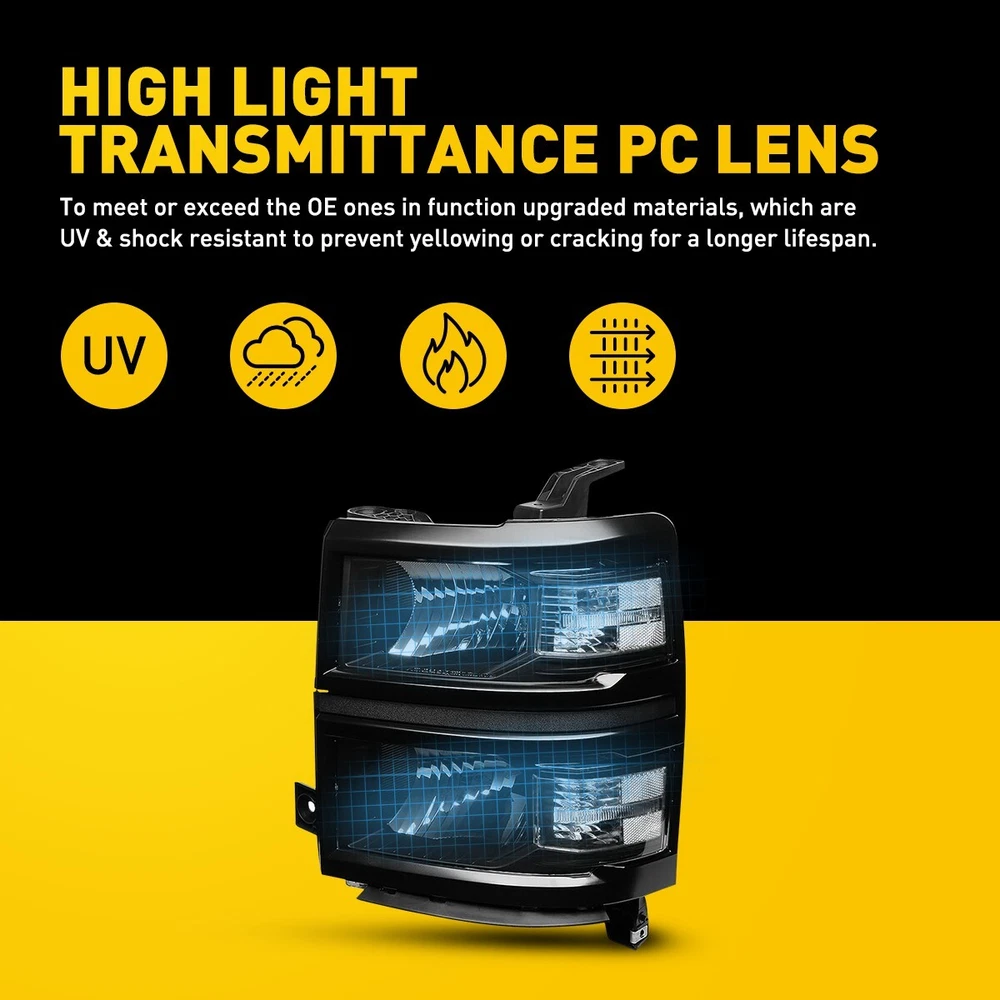 Fit for: For 2014-2015 Chevy Silverado 1500 Models Only (Fit For 2014 New Body Style Models Only; Does NOT Fit For HD Models) Specifications: OE number: 20933724, 20933725, 20933722, 20933723, 23172782, 23172783 GM2502389, GM2503389, GM2502395, GM2503395, GM2502410 Material: ABS+PC (ABS Plastic Housing/Polycarbonate lens) Appearance color: 1.Housing Color: Black 2.Lens Color:Clear 3.Reflector Color:White Note: Projector ×(Not include) DRL ×( Not Include) Bulb × (Not include) Features: *Easy to install: For 2014-2015 Chevy Silverado 1500 Factory Style Headlamps Headlights Pair Fit for: For 2014-2015 Chevy Silverado 1500 Models Only (Fit For 2014 New Body Style Models Only; Does NOT Fit For HD Models) Specifications: OE number: 20933724, 20933725, 20933722, 20933723, 23172782, 23172783 GM2502389, GM2503389, GM2502395, GM2503395, GM2502410 Material: ABS+PC (ABS Plastic Housing/Polycarbonate lens) Appearance color: 1.Housing Color: Black 2.Lens Color:Clear 3.Reflector Color:White Note: Projector ×(Not include) DRL ×( Not Include) Bulb × (Not include) Features: *Easy to install: Direct replacement, drilling and cutting are not required. *Superior quality: Made of ABS and PC materials with toughness and heat resistance functions to ensure its long service life and durability. *Angle adjustment: Equipped with a headlamp Angle adjustment knob, you can adjust the best Angle of view through the knob. *Suggestion: 1.Please confirm the OE number before purchasing! 2.Professional installation is required! Packaging include: Headlights*2(Left+Right) ABOUT US For 2014-2015 Chevy Silverado 1500 Factory Style Headlamps Headlights Pair Fit for: For 2014-2015 Chevy Silverado 1500 Models Only (Fit For 2014 New Body Style Models Only; Does NOT Fit For HD Models) Specifications: OE number: 20933724, 20933725, 20933722, 20933723, 23172782, 23172783 GM2502389, GM2503389, GM2502395, GM2503395, GM2502410 Material: ABS+PC (ABS Plastic Housing/Polycarbonate lens) Appearance color: 1.Housing Color: Black 2.Lens Color:Clear 3.Reflector Color:White Note: Projector ×(Not include) DRL ×( Not Include) Bulb × (Not include) Features: *Easy to install: Direct replacement, drilling and cutting are not required. *Superior quality: Made of ABS and PC materials with toughness and heat resistance functions to ensure its long service life and durability. *Angle adjustment: Equipped with a headlamp Angle adjustment knob, you can adjust the best Angle of view through the knob. *Suggestion: 1.Please confirm the OE number before purchasing! 2.Professional installation is required! Packaging include: Headlights*2(Left+Right) FAQ Shipping Returns Contact Us Payment Why swith to LED? LEDs not only give your vehicle a clean, modern look but, with proper use, will outlast any halogen bulb and HID bulb! Low energy draw, high lumen output, and instant on/off LED technology out shines stock bulbs in every way. Which bulbs are used in my vehicle? Check Sylvania automotive lamp replacemnt guide , you can select the year, make, and model of your vehicle, then select the application you want to replace or upgrade from stock. What does CAN Bus mean? CAN Bus means Controller Area Network Bus. This system monitors your vehicle and reports operating conditions. CAN Bus systems are commonly found in European vehicles such as BMW, Audi, Mercedes, Volkswagen, Porsche, and in many American vehicles. While most late model American vehicles have CAN Bus systems, it is always good to check with your vehicle dealer to see which system your vehicle has before purchasing electrical products. When do you need Warning Canceller? Some vehicles with cmplex internal computers(such as Audi,BMW,Jaguar,Mercedes,etc.) might report on-dash errors or flickering on the headlights. The warning canceller fixes the dashboard warning and flickering effect. Bulb Out Dashboard Error: On some vehicles, the dashboard will report as if you have a headlight bulb missing or burnt. It does not affect the headlights functioning, but the light on-dash will be on. The warning canceller fixes the issue. Flickering Issue: This happens when your vehicle does not recognize the new headlights installed. When turning the headlights on, the vehicle's computer does not understand the signal back from the headlights hence thinking they are still off. This triggers the headlight flickering effect. The warning canceller solves this issue. LED Advantages: Very low and efficient energy consumption than halogen bulbs & HID Bulbs Compared with HID bulbs, LED bulbs Light up instantly, no warm up period Low voltage protection, high precision constant current driver chip Longer lifespan than HID and halogen bulbs Light can be controlled easily in color and intensity Easy to install a LED headlight conversion kit (1) We will ship your item(s) within 24 hours. (2) We ship this item to US only via USPS first class mail. It usually takes 3-6 working days to deliver. How Long Will It Take to Receive My Refund? If you have emailed us for a refund ,once we have approved it ,after 60 days your money will be refunded. The estimated time for the refund to appear in your account is based on the payment method you use. Paypal is the only supported in NIGHTEYE Store. Please notify us within 30 days after you've received your purchased item. All return requests must be submitted through your eBay account. NOTE: Buyers pay for the return shipping fee. Items to be returned must be in resalable condition, for example: You do not satisfy the item quality Item do not fit your vehicle perfect Item can not reach your expectation The item arrived be broken You do not receive the item Parcel Lost Receive the wrong item If you have problems with the above issue, please Contact Us immediately ! [Our office hours are MONDAY - Saturday 9:00PM - 6:00PM PST, but we will response you once we get your message .There will be some delay on respons if you send message or E-Mail on Sundy.] (1).Negative feedback will not help res