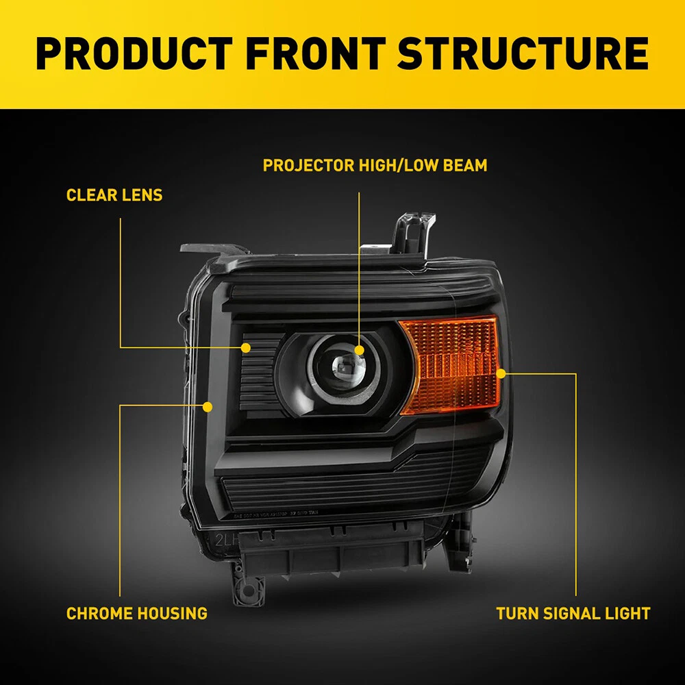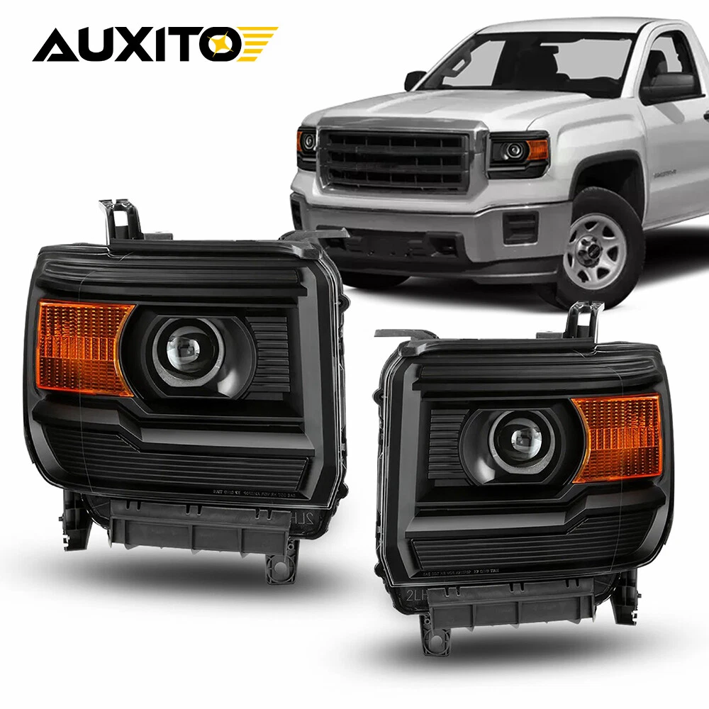 Fit for: 2014-2015 GMC Sierra 1500 Base / Denali / SLE / SLT models only 2015-2019 GMC Sierra 2500HD Base / Denali / SLE / SLT models only 2015-2019 GMC Sierra 3500HD Base / Denali / SLE / SLT / Chassis models only Does Not Fit Models with LED DRL Headlights Does Not Fit 2014 Old Body Style Models Does Not Fit Models with HID Headlights Specifications: OE number: 23130718 23130717 84144049 84144050 23268192 23268193 GM2502394, GM2503394 Material: ABS+PC (ABS Plastic Housing/Polycarbonate lens) Appearance color: 1.Housing Color:Black 2.Lens Color:Clear 3.Reflector Color:Amber Note: For 2014-2015 GMC Sierra 1500 Black Amber Pair Headlights Assembly 12V Fit for: 2014-2015 GMC Sierra 1500 Base / Denali / SLE / SLT models only 2015-2019 GMC Sierra 2500HD Base / Denali / SLE / SLT models only 2015-2019 GMC Sierra 3500HD Base / Denali / SLE / SLT / Chassis models only Does Not Fit Models with LED DRL Headlights Does Not Fit 2014 Old Body Style Models Does Not Fit Models with HID Headlights Specifications: OE number: 23130718 23130717 84144049 84144050 23268192 23268193 GM2502394, GM2503394 Material: ABS+PC (ABS Plastic Housing/Polycarbonate lens) Appearance color: 1.Housing Color:Black 2.Lens Color:Clear 3.Reflector Color:Amber Note: Projector √ ( Include) DRL × (Not Include) Bulb × ( Not include) Features: *Easy to install: Direct replacement, drilling and cutting are not required. *Superior quality: Made of ABS and PC materials with toughness and heat resistance functions to ensure its long service life and durability. *Angle adjustment: Equipped with a headlamp Angle adjustment knob, you can adjust the best Angle of view through the knob. *Suggestion: 1.Please confirm the OE number before purchasing!!! 2.Professional installation is required!!! Packaging include: Headlights*2(Left+Right) Item Specifics Mounting Style Screws Bulbs Included No. Reuse Existing Bulbs Fitment Type Direct Replacement Items Included Driver & Passenger Side Headlgihts Material ABS Plastic / Polycarbonate Lens Superseded Part Number GM2502394, GM2503394 Placement on Vehicle Front, Left, Right California Prop 65 Warning This product contains chemicals known to the State. Brand AUXITO Bulb Shape Code H7 High / Low Beam Type Headlight Assembly Interchange Part Number 23130718 23130717 84144049 84144050 2014 2015 2016 2017 2018 Parking Light 7443 OE/OEM Part Number GM2503394 GM2502394 15 16 17 Housing Color Black Style OE Features Projector Housing Lens Color Clear Lens / Amber Reflector Please Note Fit Models with Halogen Headlights Only Turn Signal 7443A Lighting Technology Halogen Number of Bulbs 0 Light Color Cold White Manufacturer Warranty 1 Year Payment We only accept PayPal payment, should be received within 3 days from the date of purchase. Please keep the consistency of Paypal address and ebay address. Payment should be made within 4 days once you won a item ,or ebay will launch Unpaid Reminder agaist you and there will be bad record on your ebay account . Buyers are responsible for import duties, custom fees and taxes.Please check with your country's custom office to determine the additional costs before you finally make the purchase Shipping All items will be shipped in 48 hours after receiving your payment . We ship this item to US only via USPS first class mail. It usually takes 3-6 working days to deliver. Returns We offer 30 days return policy. Please contact us within 30 days t from the date you receive your order if you have any issues with the product or want return .Refund will be send after we got your resend package. All returned items should be in the original packaging , return tracking information should be provided .. Buyer is responsible for return shipping cost due to the problem not caused by item quality itself . Contact Us Our office hours are MONDAY - FRIDAY 9:00PM - 6:00PM PST, but we will response you once we get your message .There will be some delay on response if you send message or E-Mail on weekend. FAQ Q1: Will this bulb fit my vehicle? A: We can match almost any vehicle to one of our bulb sizes. eBay only lets us include partial vehicle fitments per listing, but if your vehicle does not show up on the compatibility table at the top of our listings, welcome you to contact us for free consulation before purchasing a product. Q2: My item has not arrived, what's taking so long? A: Sometimes items take longer than expected, especially if it’s going far or to rural area. Check with your post office to see if your item has been held up. Sometimes USPS will not update a tracking number until it has arrived at its destination. If your item still has not arrived after a few days, let us know so we can double check for you and help solve it asap. Q3: Do I need to mention the Year, Make and Model in the notes when place order? A: YES. Please include the Year, Make, and Model in the notes section during checkout to ensure you receive everything needed for your kit! Q4: My bulbs won't fit, help! A: Special bulb holder may be required. See if you can take the holder from the stock bulb. If not, let us know. The bulb size may be wrong, double check the item you received with the item you ordered. Do you have an aftermarket lighting housing? These may not be perfectly fitted for aftermarket bulbs and will require some manual modifications. Q5: Neither side lighting up? Both sides flicker, flash, or work inconsistantly. A:Check the headlight fuses, and then check the ballast plugs to insure correct installation. If this doesn't work, there may be a voltage problem with the vehicle. You probably just need a relay or capacitor. Q6: WARNING ABOUT POLARITY Unlike halogen bulbs, LED are polarity sensitive. BEFORE you start your LED kit installation, verify the polarity on your vehicle by simply plugging the LED bulb into your vehicle socket. - if your light turns on, please proceed to install both bulbs onto your vehicle. - if your light DOES NOT turn on, disconnect the bulb and flip the socket in