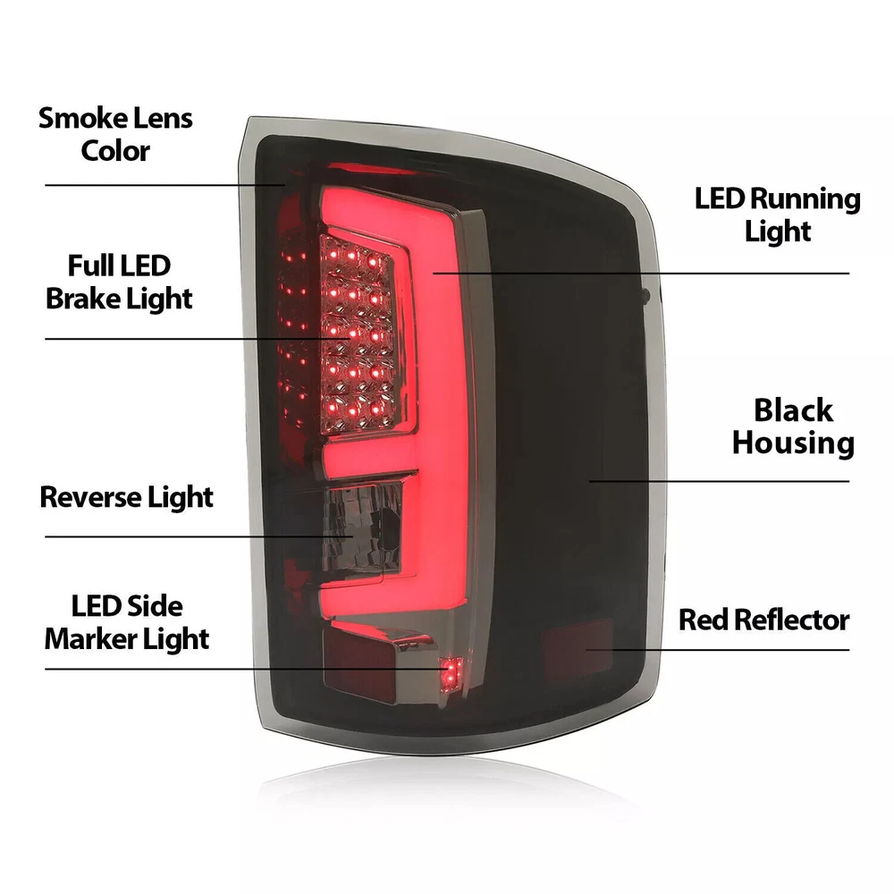 For 2014-2018 GMC Sierra 1500 2500HD 3500HD LH&RH LED Tail Lights Lamps Smoke Feature 100% Brand New, never used or installed. Equipped with full set = 1 pair of taillights (driver and passenger side). Dramatically enhances visibility during fog, rain, snow, night time, or other severe weather conditions. High brightness and high definition: ensure that the taillight can emit bright enough light at night or in low light conditions so that the vehicles behind can see clearly. High-quality materials: select high temperature and corrosion-resistant materials to ensure that the taillight is still reliable in various adverse weather conditions. Sealed design: prevent water vapor from entering, avoid moisture or short circuit of the bulb, and extend the service life. Specification Condition: 100% Brand New Type: Tail Light Material: Plastic Color: Smoke Lens+Black Housing Installation method: Screw Placement on Vehicle: Left, Right, Rear Manufacturer Warranty: 1 Year Installation Instruction:Included Replaces Part Number: for 23424737, 23424738, 84019504, 23295941, GM2800281, GM2801281, GM2801262, GM2800262 Fits for For 2014-2018 GMC Sierra 1500 / 2500HD / 3500HD Package Include 1 x Pair of Tail Lights w/ Installation Instruction Shipping All items will be shipped out in 1 business day, no expedited service available. (USA only, Does NOT include Hawaii, Alaska or Puerto Rico, PO Boxes/APO's) Contact us Any Questions, Just feel free to contact us on eBay. We will reply you in 1 business day. On Jan 19, 2025 at 23:02:12 PST, seller added the following information: