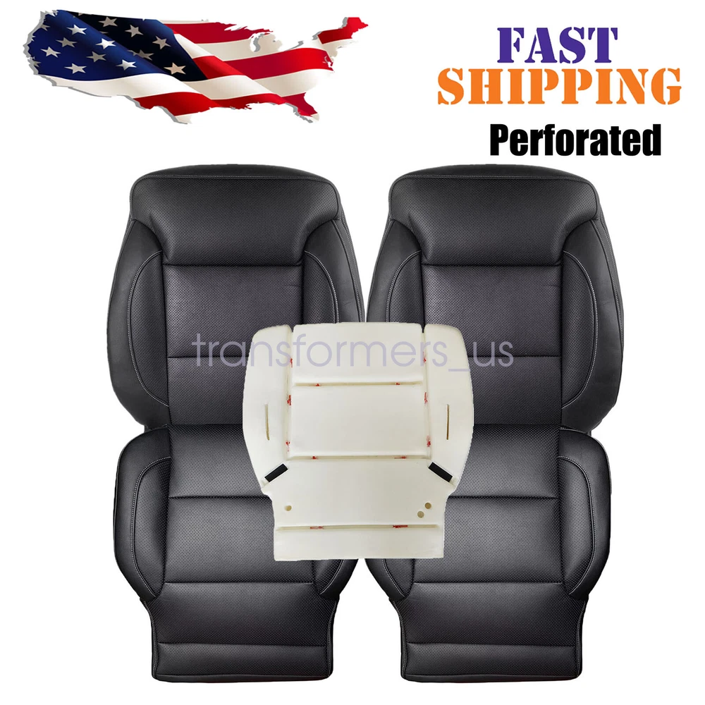 For 2014-2019 Chevy Silverado LTZ Front Leather Seat Cover Black / Foam Cushion 20 14-2019 For Chevy Silverado/GMC Sierra 1500, 2500HD, 3500HD, LT, LS, LTZ, Z71 Hybrid Front Driver / Passenger Bottom / Top Leather Seat Cover Black Note: Seat Cover Color is Jet Black Microfiber Leather Perforated With White Stitching On Side Description: Type: Driver / Passenger Bottom / Top Replacement Seat Cover Black / Foam Side: Driver / Passenger Side Seat Cover Color: Jet Black - 's Exact Color Match Interior Trim Code: H2U, H1Y or H3B or 4AA (Codes on Sticker Inside Glove Box) Material: Microfiber Leather & High Density Foam Make: Chevy/GMC Model: Sil verado LT, LS, LTZ, Z71, Hybrid / Sierra SLT, SLE, Z71 Fit Years : 2014 2015 2016 2017 2018 2019 This item is a new Custom-made, replacement in " Jet Black " C olor for: 2014-2018 GMC Sierra 1500 SLT, SLE, Z71, Hybrid (Single-Cab, Extended-Cab, Crew-Cab) 2015-2019 GMC Sierra 2500HD SLT, SLE, Z71 (Single-Cab, Extended-Cab, Crew-Cab) 2015-2019 GMC Sierra 3500HD SLT, SLE, Z71 (Single-Cab, Extended-Cab, Crew-Cab) 2015-2019 Chevrolet Tahoe LT, LS, LTZ, Z71, Midnight Ed, Premier, Sport, PPV, SSV, 2WD, 4X4 2015-2019 Chevrolet Suburban LT, LS, LTZ, Z71, Premier, Sport, HD, 2WD, 4X4 2014-2018 Chevrolet Silverado 1500 LT, LS, LTZ, Z71, Hybrid (Single-Cab, Extended-Cab, Crew-Cab) 2015-2019 Chevrolet Silverado 2500HD LT, LS, LTZ, Z71 (Single-Cab, Extended-Cab, Crew-Cab) 2015-2019 Chevrolet Silverado 3500HD LT, LS, LTZ, Z71 (Single-Cab, Extended-Cab, Crew-Cab) 2015 - 2019 GMC Yukon Denali 2015 - 2019 GMC Yukon 1500 XL Denali Heated Seats: Fits Heated Seats and Non Heated Seats Power Seats: Fits Power Seats and Non Power Seats Vehicles Seat Cover's Attached Padding: ½ Inch attached foam padding Warranty: 5 Year Seat Cover Type: Factory's Seat Cover's Replacement-NOT a pull Over, you'll take off the old cover, and install the new cover Package Including: Choose your pieces If you do not know how to install, please contact us , We can provide video installation instructions Tips: This Driver / Passenger Bottom / Top Replacement seat cover, built to factory specs with Quality Microfiber Leather to match the Interior of your vehicle! Our product is exactly the same as your existing cover and guaranteed to fit perfectly on your seat foam Pad. Any wrinkles seen in the pictures is from being in a box and guaranteed to disappear once installed Correctly. Please note this item is a replacement, not a slip on or pull over. Please Note: Actual Replacement Cover. NOT A SLIP ON or PULLOVER. You will remove the old cover & then install the New Cover. Communication is the best way to solve the problem. If you have any problems after purchasing, please contact us in time, before opening return or case. General Policies : Dear customer,if you have any questions,you can contact us,we will provide the best service for you. Shipping policy : The item will be shipped within 24 hours on payment received except the holidays.(except weekends & official holidays). You can log on to eBay to check your logistics tracking number. Please confirm address before purchase, and cannot change address once purchased. If you need to receive the item quickly, please contact us, you can pay the postage to choose other logistics. Payment: Please purchase and pay for the item through the eBay,only accpected the paypal payment. Returns: Please contact us first when return, exchange and refund is required. Any direct return of purchased items will not be processed. Item must be returned in new condition, as received with all accompanied accessories and literature, including the factory carton. Shipping, handling is not refundable unless item is returned because of defect. If the product is defective or damage upon arrival,please contact us immediately,we will provide the solve the problem. Returns accepted within 30 days of delivery date and item must be in new condition. About us: Our goal is complete customer satisfaction. We will be very honored to provide you with quality service. If there is an issue with shipping or the item you purchased please contact us via ebay message or call us before opening a case or leaving feedback.We will try our best to resolve any kind of issue. For 2014-2019 Chevy Silverado LTZ Front Leather Seat Cover Black / Foam Cushion 20 14-2019 For Chevy Silverado/GMC Sierra 1500, 2500HD, 3500HD, LT, LS, LTZ, Z71 Hybrid Front Driver / Passenger Bottom / Top Leather Seat Cover Black Note: Seat Cover Color is Jet Black Microfiber Leather Perforated With White Stitching On Side Description: Type: Driver / Passenger Bottom / Top Replacement Seat Cover Black / Foam Side: Driver / Passenger Side Seat Cover Color: Jet Black - 's Exact Color Match Interior Trim Code: H2U, H1Y or H3B or 4AA (Codes on Sticker Inside Glove Box) Material: Microfiber Leather & High Density Foam Make: Chevy/GMC Model: Sil verado LT, LS, LTZ, Z71, Hybrid / Sierra SLT, SLE, Z71 Fit Years : 2014 2015 2016 2017 2018 2019 This item is a new Custom-made, replacement in " Jet Black " C olor for: 2014-2018 GMC Sierra 1500 SLT, SLE, Z71, Hybrid (Single-Cab, Extended-Cab, Crew-Cab) 2015-2019 GMC Sierra 2500HD SLT, SLE, Z71 (Single-Cab, Extended-Cab, Crew-Cab) 2015-2019 GMC Sierra 3500HD SLT, SLE, Z71 (Single-Cab, Extended-Cab, Crew-Cab) 2015-2019 Chevrolet Tahoe LT, LS, LTZ, Z71, Midnight Ed, Premier, Sport, PPV, SSV, 2WD, 4X4 2015-2019 Chevrolet Suburban LT, LS, LTZ, Z71, Premier, Sport, HD, 2WD, 4X4 2014-2018 Chevrolet Silverado 1500 LT, LS, LTZ, Z71, Hybrid (Single-Cab, Extended-Cab, Crew-Cab) 2015-2019 Chevrolet Silverado 2500HD LT, LS, LTZ, Z71 (Single-Cab, Extended-Cab, Crew-Cab) 2015-2019 Chevrolet Silverado 3500HD LT, LS, LTZ, Z71 (Single-Cab, Extended-Cab, Crew-Cab) 2015 - 2019 GMC Yukon Denali 2015 - 2019 GMC Yukon 1500 XL Denali Heated Seats: Fits Heated Seats and Non Heated Seats Power Seats: Fits Power Seats and Non Power Seats Vehicles Seat Cover's Attached Padding: ½ Inch attached foam padding Warranty: 
