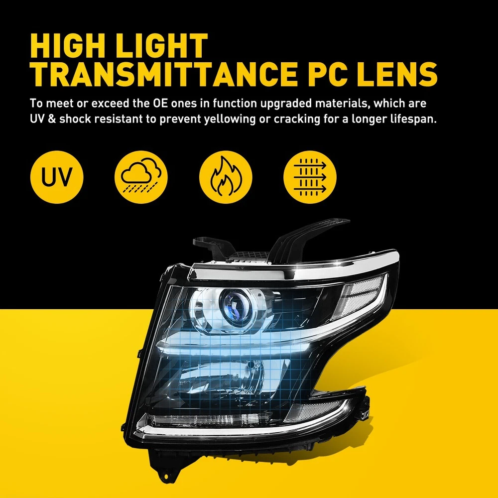 Headlights Headlamps Fit For 2015-2020 Chevy Tahoe Suburban etc Fit for: 2015-2020 Chevy Tahoe 2015-2020 Chevy Suburban 2016-2019 Chevy Suburban 3500HD (Fit Models With Halogen Headlights Only) Specifications: OE number: 23387143 23490005 23387144 23490006 GM2503405 GM2502405 Material: ABS+PC (ABS Plastic Housing/Polycarbonate lens) Appearance color: 1.Housing Color: Black 2.Lens Color:Clear 3.Reflector Color:White Note: Projector ×(Not include) DRL × (Not include) Bulb × (Not include) For 2015 16-2020 Chevy Tahoe Suburban Black Housing Left+ Headlights Right Pair Headlights Headlamps Fit For 2015-2020 Chevy Tahoe Suburban etc Fit for: 2015-2020 Chevy Tahoe 2015-2020 Chevy Suburban 2016-2019 Chevy Suburban 3500HD (Fit Models With Halogen Headlights Only) Specifications: OE number: 23387143 23490005 23387144 23490006 GM2503405 GM2502405 Material: ABS+PC (ABS Plastic Housing/Polycarbonate lens) Appearance color: 1.Housing Color: Black 2.Lens Color:Clear 3.Reflector Color:White Note: Projector ×(Not include) DRL × (Not include) Bulb × (Not include) Features: *Easy to install: Direct replacement, drilling and cutting are not required. *Superior quality: Made of ABS and PC materials with toughness and heat resistance functions to ensure its long service life and durability. *Angle adjustment: Equipped with a headlamp Angle adjustment knob, you can adjust the best Angle of view through the knob. *Suggestion: 1.Please confirm the OE number before purchasing!!! 2.Professional installation is required!!! Packaging include: Headlights*2(Left+Right) Item Specifics Mounting Style Screws Bulbs Included High & Low Beam Included Fitment Type Direct Replacement Items Included Driver & Passenger Side Headlgihts, Tools Set Manufacturer Part Number DDZC-SUBURBAN-15-20-BC Material ABS Plastic / Polycarbonate Lens Superseded Part Number DDZC-SUBURBAN-15-20-BC Placement on Vehicle Front, Left, Right California Prop 65 Warning This product contains chemicals known to the State. Brand AUXITO Bulb Shape Code 9005 High / H7 Low Beam Type Headlight Assembly Interchange Part Number 23387143 23490005 23387144 23490006 2015 2016 2017 2018 2019 2020 Parking Light LED OE/OEM Part Number GM2503405 GM2502405 16 17 18 19 20 Housing Color Black Style LED DRL Features Reflector Housing Lens Color Clear Lens / Clear Reflector Please Note Fit Models with Halogen Headlights Only Turn Signal 7440A Lighting Technology Halogen FIT FOR 2015-2020 Chevy Tahoe Suburban FIT FOR 1 2016-2019 Chevy Suburban 3500HD FIT FOR 2 (Fit Models With Halogen Headlights Only) Reflector Color White Note Projector (Not include) DRL (Not include) Bulb(Not include) Packaging include Headlights*2(Left Right) Universal Fitment No KEYWORD BLACK PROJECTOR HEADLIGHT CLEAR LED KEYWORD 1 RIGHT LEFT LED DRL PROJECTOR HEADLIGHT GM2503405 KEYWORD 2 BLACK/White CORNER LED DRL PROJECTOR HEADLIGHT KEYWORD 3 DRL Projector Headlight Blk Smoke FULL LED Tail light KEYWORD 4 [Factory Look] Black Headlight Replacement PAIR KEYWORD 1 RIGHT LEFT LED DRL PROJECTOR HEADLIGHT GM2503405 KEYWORD 2 BLACK/White CORNER LED DRL PROJECTOR HEADLIGHT KEYWORD 3 DRL Projector Headlight Blk Smoke FULL LED Tail light KEYWORD 4 [Factory Look] Black Headlight Replacement PAIR Warranty 1 Year Payment Variety of payment methods are accepted, such as credit, debit, gift cards, Apply pay, Google Pay, Paypal and Paypal Credit. Shipping 1. All items will be shipped in 24 hours after receiving your payment . 2. We ship this item to US only via USPS first class mail. It usually takes 3-5 working days to deliver. Returns 1. We offer 60 days return policy. 2. Please contact us if you have any questions with the products . 3. Refund will be sent after we got your returned package. 4. All returned items should be in the original packaging with tracking number. Contact Us We work from Monday - Saturday 9:00AM - 6:00PM, but we will reply once we get your message. There will be delay on response if you send message or E-Mail on Sunday. DESCRIPTION PAYMENT SHIPPING RETURN POLICY CONTACT US Shop Category Store Home LED Headlight ◈ 9005 HB3 ◈ 9006 HB4 ◈ H7 LED Fog Light ◈ H8 H9 H11 LED Plate Light LED Reverse Light LED Brake Light Rear Bumper Light LED Tail Light Tail Light assemblies Car Parts & Accessories ◈ LED Third Brake Light ◈ Other Parts & Accessories Other Hot Item FOR 94-04 MUSTANG PASSENGER or DRIVER SIDE MASTER POWER WINDOW CONTROL SWITCH USD 9.99 AUXITO Combo 4 9005 + H11 LED Headlight Kit Bulbs High Low Beam White 80000LM USD 35.99 Auxito 9005 + H11 Combo LED Headlight 120W 80000LM High/Low Beam 6500K Bulbs Kit USD 46.99 Rubber Seal Trim Prevent Water Leakage Windshield Sunroof Roof Top Window 10FT USD 10.99 Rubber Seal Trim Prevent Water Leakage Windshield Sunroof Roof Top Window 10FT USD 12.99 New List Item Left and Right Support Tailgate Cable Set Kit for 1995-2004 Toyota Tacoma USD 13.48 For 08-13 Chevrolet Silverado GMC Sierra Window Left Driver Switch Power Master USD 25.64 AUXITO H11 H9 H8 LED Driving Fog Light Bulb 3000K Bright Yellow Replacement Lamp USD 20.89 Smoked LED Third 3rd Rear Brake Stop Light Tail Lamp Fits 2004-2015 Nissan Titan USD 33.24 Power Mirror Switch Front Left For 06-16 Chevrolet Monte Carlo Malibu 15261342 USD 11.39 Excellent Delivery For 2015 16-2020 Chevy Tahoe Suburban Black Housing Left+ Headlights Right Pair Headlights Headlamps Fit For 2015-2020 Chevy Tahoe Suburban etc Fit for: 2015-2020 Chevy Tahoe 2015-2020 Chevy Suburban 2016-2019 Chevy Suburban 3500HD (Fit Models With Halogen Headlights Only) Specifications: OE number: 23387143 23490005 23387144 23490006 GM2503405 GM2502405 Material: ABS+PC (ABS Plastic Housing/Polycarbonate lens) Appearance color: 1.Housing Color: Black 2.Lens Color:Clear 3.Reflector Color:White Note: Projector ×(Not include) DRL × (Not include) Bulb × (Not include) Features: *Easy to install: Direct replacement, drilling and cutting are not required. *Superior quality: Made of ABS and PC materials with toughness an