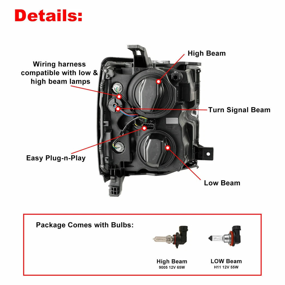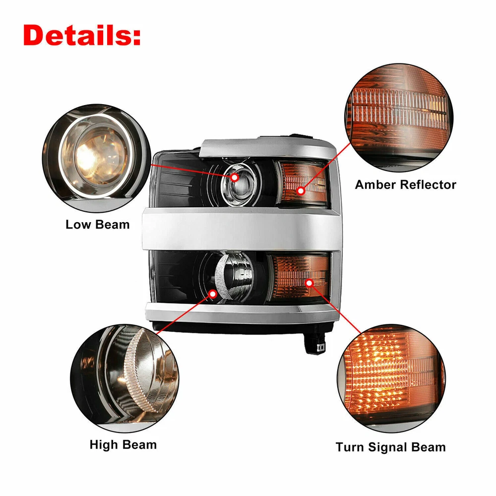 Head Lights Tail Lights Fog Lights Turn Signal Bumper Fender Flare Inner Fender Hubcaps Refrigerator Other Items for sale Head Lights Tail Lights Fog Lights Turn Signal Bumper Fender Flare Inner Fender Liners Portable Refrigerator For Chevy Silverado 3in1 Front Bumper & Side Wing & Bull Bar For 2019 2020 2021 Chevy Silverado 1500 646.97 USD Steel Front Bumper+Bull Bar+LED Lights For 2022 2023 2024 Chevy Silverado 1500 575.98 USD For 2019-2021 Chevrolet Silverado 1500 Textured Front Bumper Steel W/2x D-Rings 244.99 USD 2 IN 1 Front Bumper Steel For 2022-2024 Chevy Silverado 1500 w/ LED Lights 732.98 USD Steel Front Bumper For 2022-2024 Chevy Silverado 1500 w/Skid Plate + LED Lights 842.97 USD Full Width Front Bumper Steel for 2014 2015 Chevy Silverado 1500 Pickup Trucks 669.96 USD Offroad Front Bumper for 2014 2015 Chevy Silverado 1500 w/ LED Lights & D-Rings 799.96 USD Black Front Bumper for 2014 2015 Chevy Silverado 1500 Pickup Truck w/Winch Plate 646.96 USD Front Bumper for 2014 2015 Chevy Silverado 1500 w/ Winch Plate & D-Rings LED 599.97 USD For 2015-2019 Chevy Silverado 2500 3500 HD Headlight Assembly Left Side LH Black Trim Chrome Trim Passenger Side Driver Side Specification: High Beam Bulbs: 9005(HB3) 12V 60W included Low Beam Bulbs: H11 12V 55W included Turning Light:12V 5W/12W included Installation: 100% Plug and Play Color Finish: Chrome housing / Clear lens / matte black bezels Replaces Original (OE) Part # R: 23389971; 23477067;84096573 Partslink: R: GM2503416 Fitment: For 2015-2019 Chevrolet Silverado 2500HD For 2015-2019 Chevrolet Silverado 3500HD ※ Fits for HD Models Only Installation: 1. Plug and play operation, direct bolt-on OE fitment or replacement for the stock unit; 2. Requires no modification or drilling. **Professional installation is highly recommended. Package Includes: 1 x Passenger Headlight Only (Right side) 2 x Bulbs 1 x H11 12V 55W bulbs 1 x 9005 12V 60W bulbs Payment Shipping Return About us Contact us Payment Appreciated for the prompt payment, Contact us if bid by mistake, system open unpaid item automatically. Payment must be complete within 3 days from the date you purchase or after the end of auction. Items unpaid within 3 days of the auction end will be forfeited. We reserve the right of cancel the order and re-selling the items. Shipping All shipment will ship by UPS or USPS . All items will be ship within 1 working days , and we will ship out all orders as soon as possible after payment verified, please allow up to 1-4 business days for delivery. CANADA & International customers please note: your government might charge a duty tax (brokerage fees). We do not responsible for any custom duty or import tax. Why Choose the US Stock? 1. Us Local Shipping, No Extra Customs Cost to the US. 2. Fast Delivery: 1-4 Working days Delivery. 3. Best After-Sales Service!!! Return The buyer is responsible for all return shipping including a result of customer error or defective item. 1) If you received an incorrect, damaged, defective, or item not as described, contact us for full refund or replacement on our cost. 2) If you want to return the item, please contact us within 60 days after package received. Return products must also be in its original condition: including box, packaging and all other accessories. About us We are the best auto parts, we have been pursuing excellence, continuous exploration as the slogan, let customer satisfaction is our purpose! We adhere to the United States local delivery, one year warranty! Welcome! Contact us How Should You Contact us? Please Read The Item Description And See if The item Fits Your Vehicle Exactly. If You Found Any questions, Feel Free to email us by "Ask a question" Our Office Hours Are Monday - Friday 8:00am - 5:00pm PST / 11:00am - 8:000pm ET, We Do Not Answer Any E-Mails On Weekend, And We Will Reply All E-Mails In The Order It Was Receive. All E-Mail Take Us Around 24 Hours To Respond To Any E-Mail. We Are Close During The Weekends And We Do Not Answer Any E-Mails During That Time.