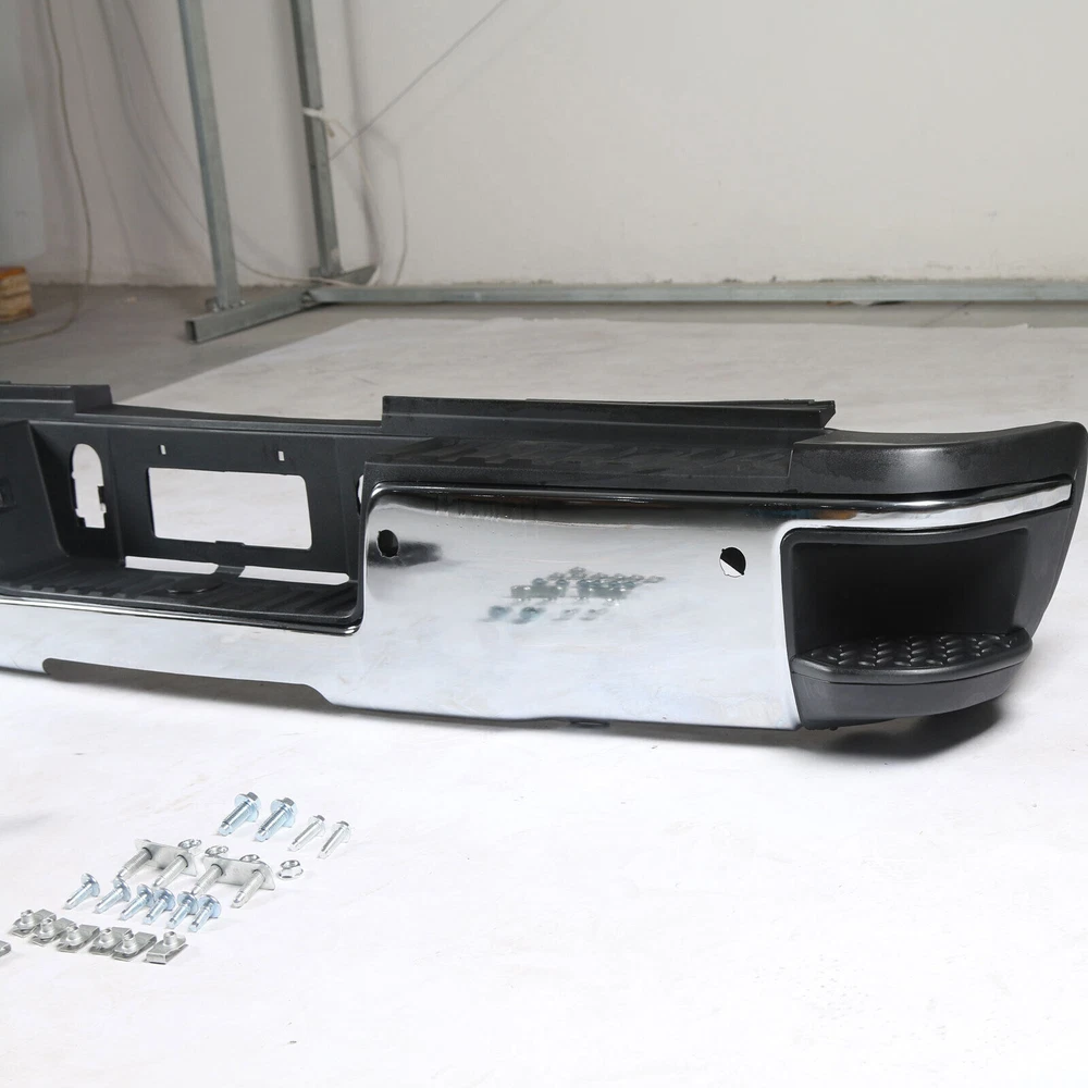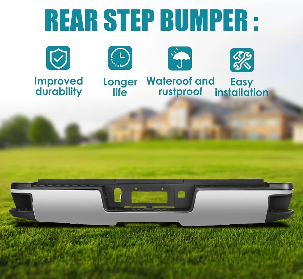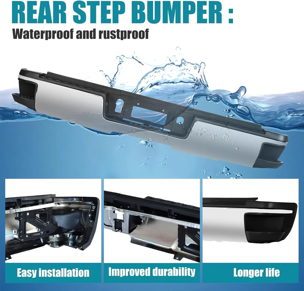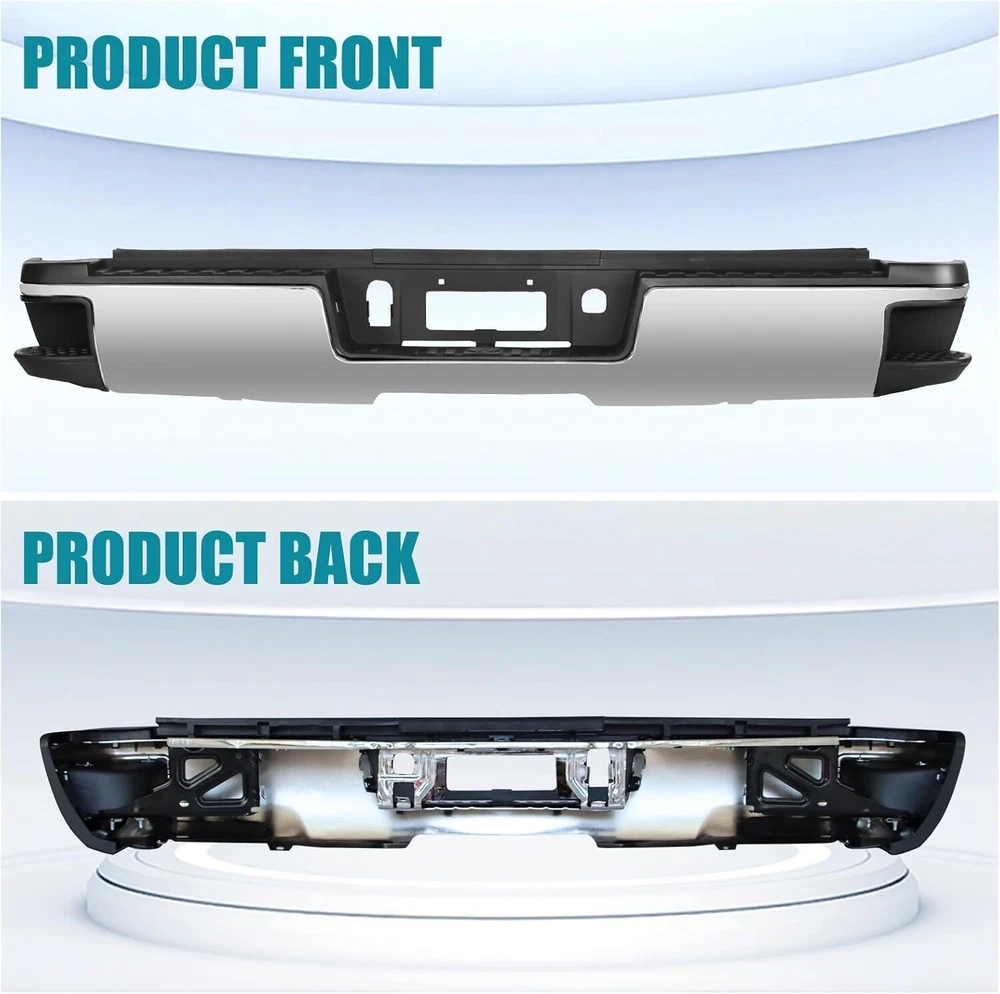 Park Assist Sensor Cut-out Rear Bumper Compatible with 2015-2019 Chevy Silverado/GMC Sierra 2500 HD 3500 HD, Step Bumper with Parking Sensor Hole without Tow Hitch for Dual Rear Wheel (Dually) Models , Chrome Bar Replacement Step Pad Assembly Product Description About this item Chrome Rear Bumper Assembly: Enhance the look of your 2015-2019 Silverado Sierra 2500 3500 with this and stylish chrome rear bumper assembly. compatible with Specific Models: Designed to compatible with seamlessly on Silverado Sierra 2500 3500 models from 2015 to 2019, e a precise and custom compatible with. Integed Park Assist: This rear bumper assembly comes equipped with park assist sensors, making parking and ee your vehicle easier and safer. Easy Installation: With a straightforward installation process, you can quickly upgrade your vehicle's rear bumper without the need compatible with professional help. Enhanced ion and Style: Not only does this chrome rear bumper assembly your vehicle, but it also adds a touch of sophistication and style to your Silverado Sierra 2500 3500. Features: 2015-2019 Chevrolet Silverado 2500 HD 2015-2019 Chevrolet Silverado 3500 HD 2015-2019 GMC Sierra 2500 HD 2015-2019 GMC Sierra 3500 HD For Models With Park Sensors For Use With Factory Tow Hitch (Hitch Plate Not Included) For Dual Rear Wheel (Dually) Models ONLY High Polished Chrome Finish Includes Reinforcement, Brackets, Hardware, Lamps and Step Pad Direct OE Replacement W/o Park Assist Sensor Cut-out Chrome Steel Rear Step Bumper Replacement for 2015-2019 Chevy Silverado Sierra 2500HD 3500HD Single Rear Wheels without Park Assist Sensor Holes GM1103182 Product Description About this item Compatible with: specifically designed replacement for 2015-2019 Silverado 2500HD 3500HD 2015-2019 Sierra 2500HD 3500HD, ensuring a secure and stable installation Premium quality steel: constructed from steel and chrome for an extra layer of protection and an aesthetic appeal, is designed to withstand daily crash, ensuring a long-lasting performance Easy installation: no drilling or cutting required, designed as a direct replacement for your original step bumper. Installation instruction is not included. Professional installation would be highly recommended Stable use: the stepped bumper provides additional protection for your vehicle, ensuring stable driving on the road Complete package: it comes with 1 x rear bumper as shown in the picture. All these components are of good quality, ensuring reliable performance and functionality Features: It undergoes strict factory testing to ensure reliable performance and a long service life It is designed to be a direct replacement, made to factory specifications, so no modifications are required This rear bumper is the good fit for your vehicle, seamlessly integrating with the overall design and enhancing its aesthetics Not only does this rear bumper provide excellent protection for your vehicle, but it also offers a stylish and sleek appearance Its finish adds a touch of elegance to your car while effectively guarding avoid impacts, scratches, and other forms of damage Fitment: Replacement for 2015-2019 Silverado 2500HD Replacement for 2015-2019 Silverado 3500HD Replacement for 2015-2019 Sierra 2500HD Replacement for 2015-2019 Sierra 3500HD Specifications: Part number: replacement for GM1103182 23108142-PFM 84078289 Color: chrome Material: steel Type: rear step bumper Placement on vehicle: rear Fitment type: direct replacement Attachment type: bolt-on Package included: 1 x rear step bumper shown in pictures Notes: With corner step Without hitch draw bar Without mounting brackets For Single Rear Wheel Models ONLY For models without park assist holes only For use with factory tow hitch (no stabilizer plate included) Payment Delivery Details Return Feedback Contact us Payment We accept payment by any of the following methods: Delivery Details Shipping Time Your item will ship within 3 days (Mon-Fri) of your cleared payment. Items will be shipped to the shipping address you specify via Paypal only. We are NOT able to change the shipping address once payment has been made. A tracking number will be provided once your item has shipped. Domestic Buyers No shipping to PO BOX and APO addresses. No shipping to PR, AK, HI. International Buyers International buyers please note: Import duties, taxes and charges are not included in the item price or shipping charges. These charges are the buyer's responsibility. Please check with your country's customs office to determine what these additional costs will be prior to bidding/buying. Return All returns must have RMA number. Returns with no RMA number will be avoided! 1. Changed your mind and don't want the item anymore? We back our products with a 30-DAY SATISFACTION GUARANTEE! (Item must be in the original condition as it was received. 30 Days Refund, 30 Day Replacement.). Brand New items will have 30 days warranty or replacement policy. 2. Restocking fees will be charged ONLY on Brand New items. 3. Defective/Dead items will be fully refunded or replaced after matching the serial number with the one in our records. 4. Mobile phones and tablets MUST be restored to factory setting. 5. If your order arrives incorrect or the package is damaged in result of a carrier company, you must notify us within 4 days of receipt. Defective items will be credited only after matching the serial number with the one in our records. We are aware of all fraud cases and have all the items details in our records. 6. If there is a quality issue or malfunction with the product, we strongly suggest you to contact the original manufacturer. 7. Any item needed to be returned must be securely packaged, insured and shipped with tracking for safety. We cannot be responsible for lost damaged packages. We carefully inspect returned items upon receipt before any possible refunds, credits, or exchanges. Feedback Customer satisfaction is our top priority. Please give us a chance to resolve any issues 