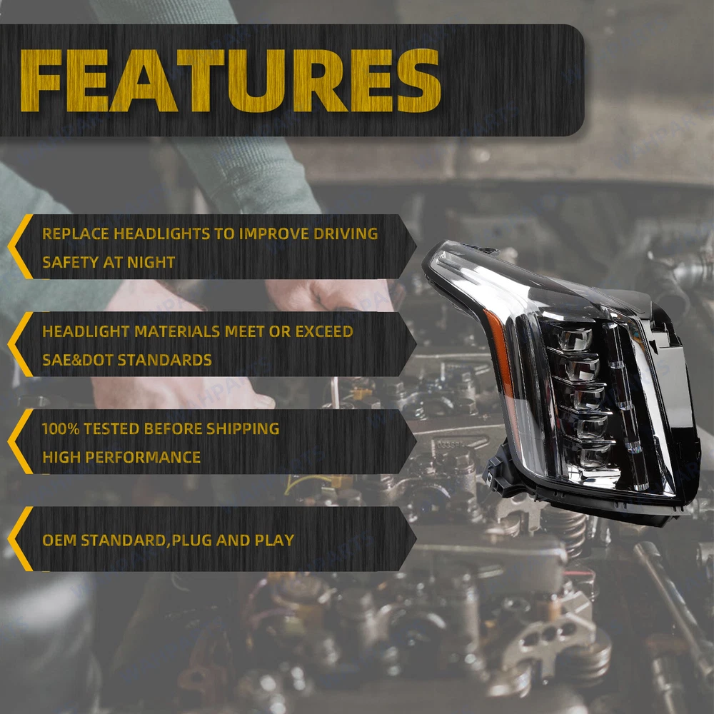 Features & details 【Compatible With】 2015-2020 Cadillac Escalade 【Manufacture Part Number】 23304391, 84580183, 84216045 ( Front, Right Passenger Side ) 【Package Includes】 1x Headlight Assembly ( As picture shows ) 【 Item Description 】 Type : Headlight Light Assembly Condition : 100% New Lens Color :Clear Housing Color :Black Lighting Technology:LED Fitment Type: Direct Replacement 【 Features 】 Headlight Assemblies Undergo Strict Quality Control to Ensure it is Waterproof & Impact / UV Resistant; Easy Installation. Direct Bolt On Replacement From Your Original Headlights! No Wiring or Modifications Needed! No Installation Instructions Included. Professional Installation is Highly Recommended! 【Service & Warranty】 Purchase from WAHPARTS, enjoy 1 year no worries-warranty, whenever you met issue when installing or using, please contact us via eBay Message, and we will reply within 24 hours and help solve the problem. 100% Testing Before Packing This Parts Are Designed To Fit And Function As The Original Equipment Did. Longest Lasting And Most Efficient L ight Assembly S tyle. Features: DOT-Certified ISO-Certified SAE-Certified Item Type: Headlight Assembly Package include: 1pc Right Passenger Side Headlight Placement on Vehicle: Front, Right Passenger Side Customer Question & Answers Q1: Will This Part Fit My Vehicle? We list all the compatiblity, if your vehicle does not show up on the compatibility table at the top of our listings, welcome you to contact us for free consulation before purchasing a product. Q2: Does they come with warranty? All of our product comes with 1-year warranty, but some times you need to pay the shipping fee. Q3: How to use it? If you don't know how to install this accessory, welcome to contact us, we will provide you with a video guide. Payment Shipping Warranty & Service Returns/Exchanges Contact us Payment Most of the payment methods are available, such as Paypal, Payoneer, Credit Card. Within 1 day of receiving your payment, we will start processing your order. Shipping All Items Will Be Ship Within 1working Days, and We Will Ship out All Orders As Soon As Possible After Payment Verified, Please Allow up to 1-6 Business Days for Delivery. Why Choose the Us Stock? 1. Us Local Shipping, No Extra Customs Cost. 2. Fast Delivery: 1-6 Working Days Delivery. Warranty & Service All the product in our store come with a 1-year-warranty. If there is a problem with the product you purchased within 1 year, please contact us, we will provide you with after-sale protection. Our job is not complete until each customer is satisfied! Receiving positive feedback is extremely important to us. We give all our buyers positive feedback as soon as payment is received Negative feedback and bad ratings do not solve the problem! If you contact us via eBay, we will be more than happy to work with you! Returns/Exchanges If you received an incorrect, damaged, defective, or item not as described , contact us for a partial/full refund or replacement on our costs. If we shipped you the wrong part, we pay for the return shipment and send you the correct part. If you ordered the wrong part, contact us for a return address and simply return it,give us a tracking number. We will send you the new item as soon as the returned package is received; If you simply don't want the part, ship it back and give us a tracking number. After we receive the item, we will refund the item price minus shipping costs. All returns must be done within 30 days after receiving the package. Parts must be new and unused in the original condition: including box, packaging and all other accessories,or we will charge you a partial costs. Contact us If you encounter any problems during purchase or use, please contact us via eBay message directly. On Nov 14, 2024 at 23:43:32 PST, seller added the following information: