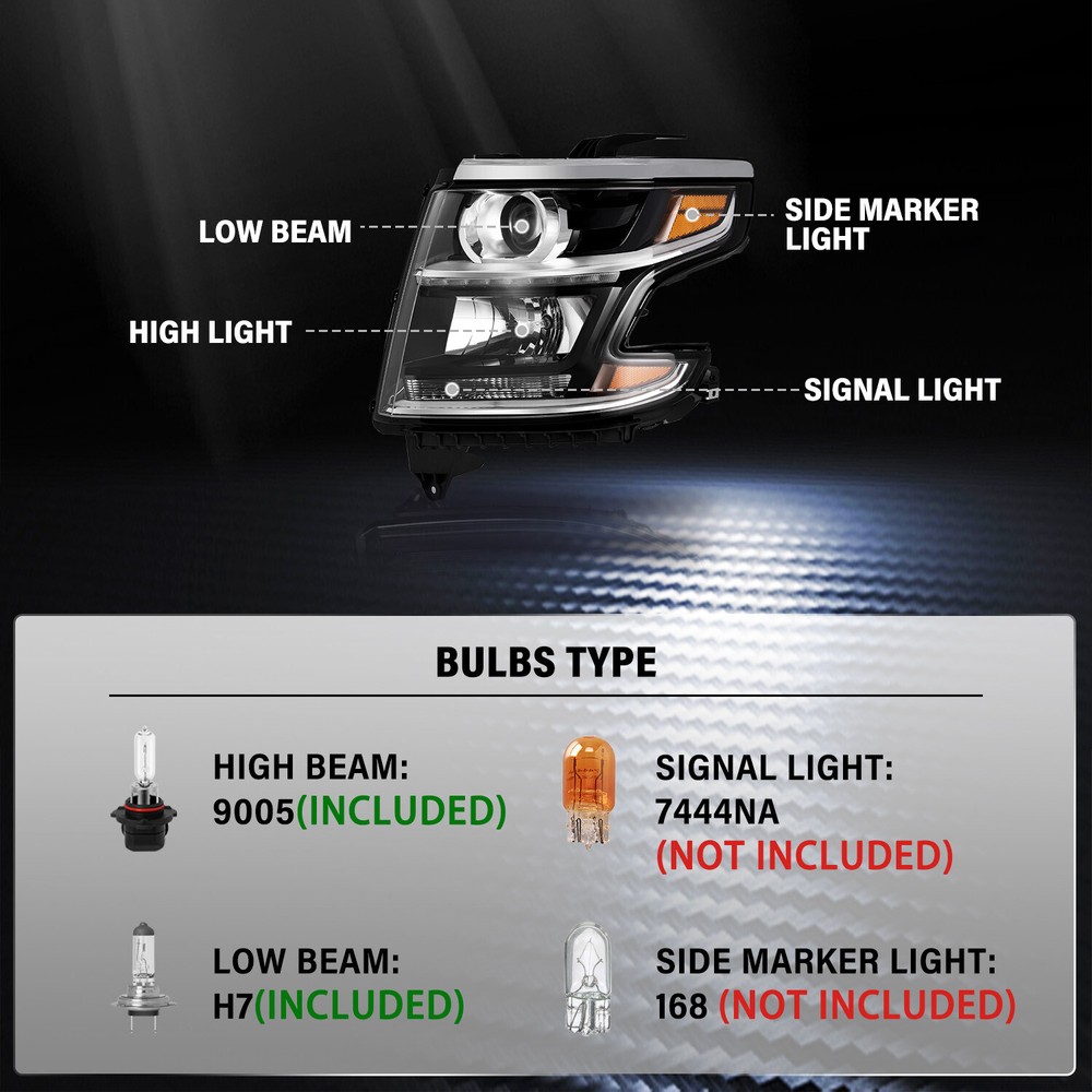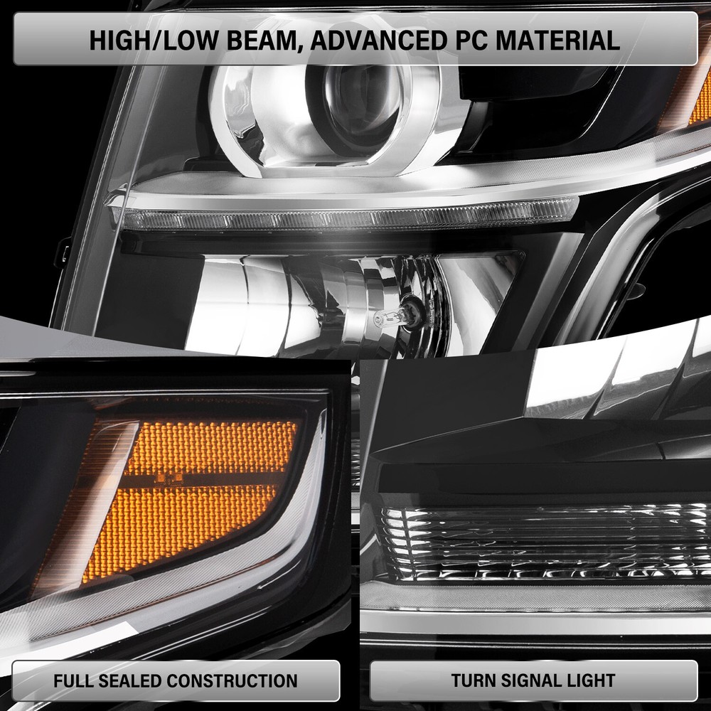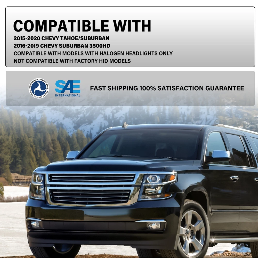 Store Categories Store Categories Headlight Tail light Other For 2015-2020 Chevy Tahoe Suburban Headlight Projector Headlamp w/ B LED DRL Product Description Product Features The item is 100% brand new in original box. DOT (Department of Transportation) & SAE (Society of Automotive Engineers) Approved Comes with a Complete pair of Headlights. Increase your visibility during heavy rain, snow, dense fog and night time driving. A new headlights upgrade the face of your vehicle with clear style and broad range. Direct Bolt On Replacement For Your Original Headlights. No Wiring or Any Other Modification Needed. Compatible with 2015-2020 Chevy Tahoe 2015-2020 Chevy Suburban 1500 2500 2016-2019 Chevy Suburban 3500HD Compatible with models with halogen headlights ONLY Comes with 9005 H7 bulb, Original Style is 9005 H11, without turn singal bulb Package includes Headlights + Bulbs Payment Policy Shipping Policy Returns Policy About us Payment Policy We accept PayPal and all forms of credit card. Ple ase submit your payment within 7days after your purchase. Otherwise, eBay will automatically open an Unpaid Item Dispute on our behalf if the item(s) are not paid within 7days. We DO NOT SHIP TO PO BOXES, And Customer Needs To Provide a Physical Address. Shipping Policy All Orders Will Ship Within Two Business Days.Except PR,HI,AK,GU and PO Box addresses. No local pick up All Packages Will Be Insp ect Before Shipping, We Will Provide All Packing Material Needed For Your Package For Shipping Such As Boxes, Cushioning And Tape To Improve Shipping Quality. Very Important: Double check shipping address. We are not responsible for incorrect or undeliverable addresses. Returns Policy 30 Days returns satisfaction guarantee.90 Days warranty. All of Our Items Are 100% Brand New, We Do Not Sell Anything Other Than That. If The Item Shows Up Defectiv e or Broken, Please Contact Us Within 3 Business Days By Using "Ask A Question" Link Located At The Bottom of Our Listing. Your Ques tions/Concerns Will Be Responded Within 24 Hours Monday To Friday. Buyers May Contact us On The Weekends or Pubic Holidays And We Will Respond On The Next Working Day. We Will Offer Replacements, Exchange or Full Refund. 100% Satisfaction Guaranteed. We Will File Damage Or Lost Claim For Our Buyers And Guaranteed Buyers Will Receive Products In A Timely Manner. About us Welcome to ZEN's eBay Store. We specialize in aftermarket automotive car parts and is the #1 industry distributor for affordable and quality products. We have our warehouse in CA.Item will be shipped out within 48 hours after payment cl eared via UPS or Fedex. All emails will be answered within 1 business day during our business hours, except on weekends and major holidays. Before leaving us negative review, please contact our C ustomer Support Team first. We will do our best to offer satisfactory service to the customers. Copyright © 2023 Dianxiaomi