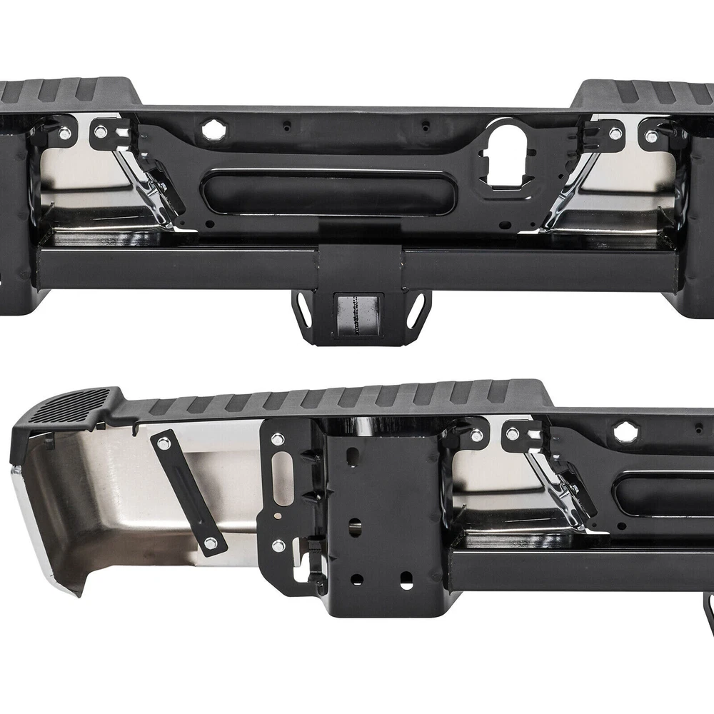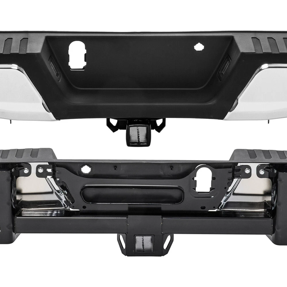 Package Content: 1x Pickup Rear Bumper 1 x Set of Mounting Brackets Some Bolts and Screws Item Specifications: Condition: 100% Brand New Color: Chorme Material: Carbon Steel Warranty: 5 Years Type: Bumper Assembly Placement on Vehicle: Rear Fitment Type: Direct Replacement Notice: For Models with Tow Hitch Fitment: Fit Ford F-150 2015-2020 Not Fit 2019/2020 F-150 Limiter Models Not Fit F-150 Raptor Models For Models Without Park Assist Holes, with Tow Hitch Features: Simple Installation Process Practical and Ornamental Coexis High-quality Steel Raw Materials Integrated Step Fits Perfectly with the Vehicle Protect the Vehicle and Reduce Damage On Mar 20, 2024 at 01:52:52 PDT, seller added the following information: On Jun 16, 2024 at 08:30:14 PDT, seller added the following information: On Dec 3, 2024 at 02:54:00 PST, seller added the following information: