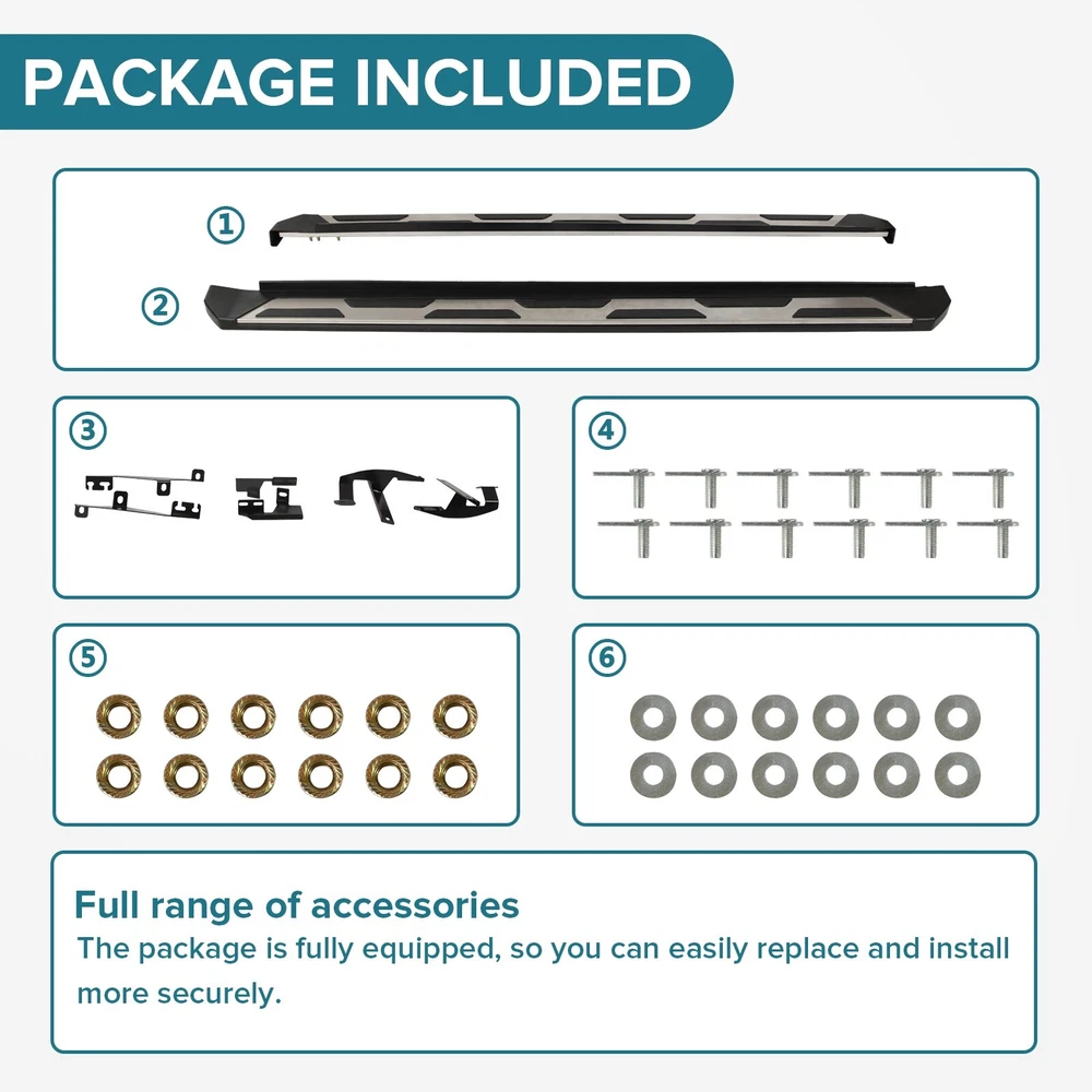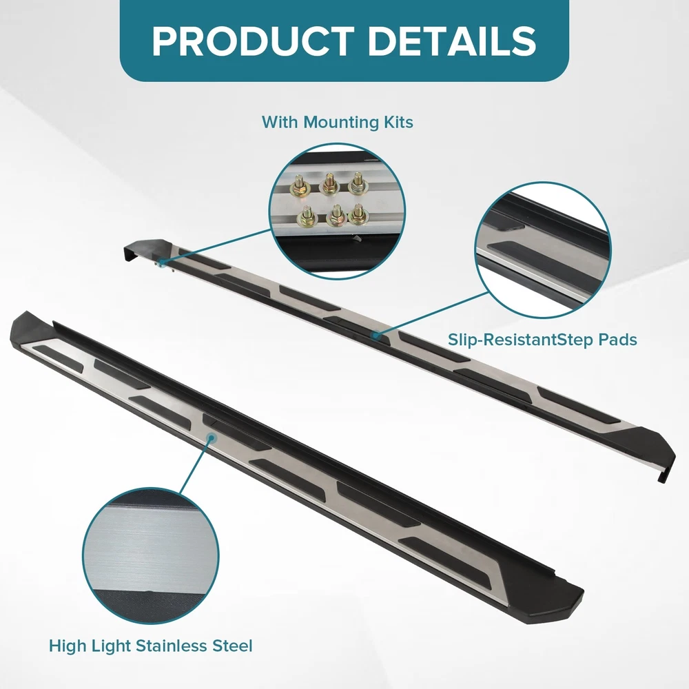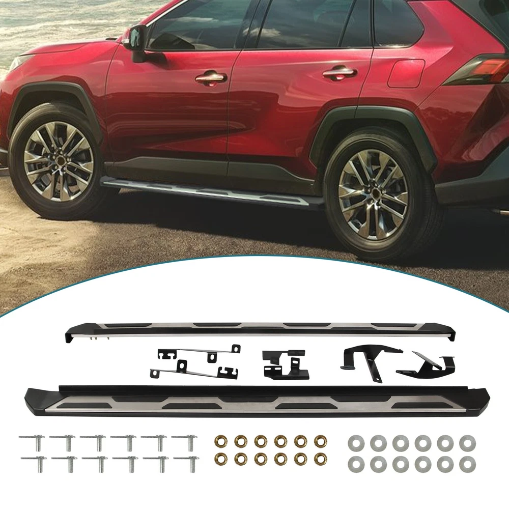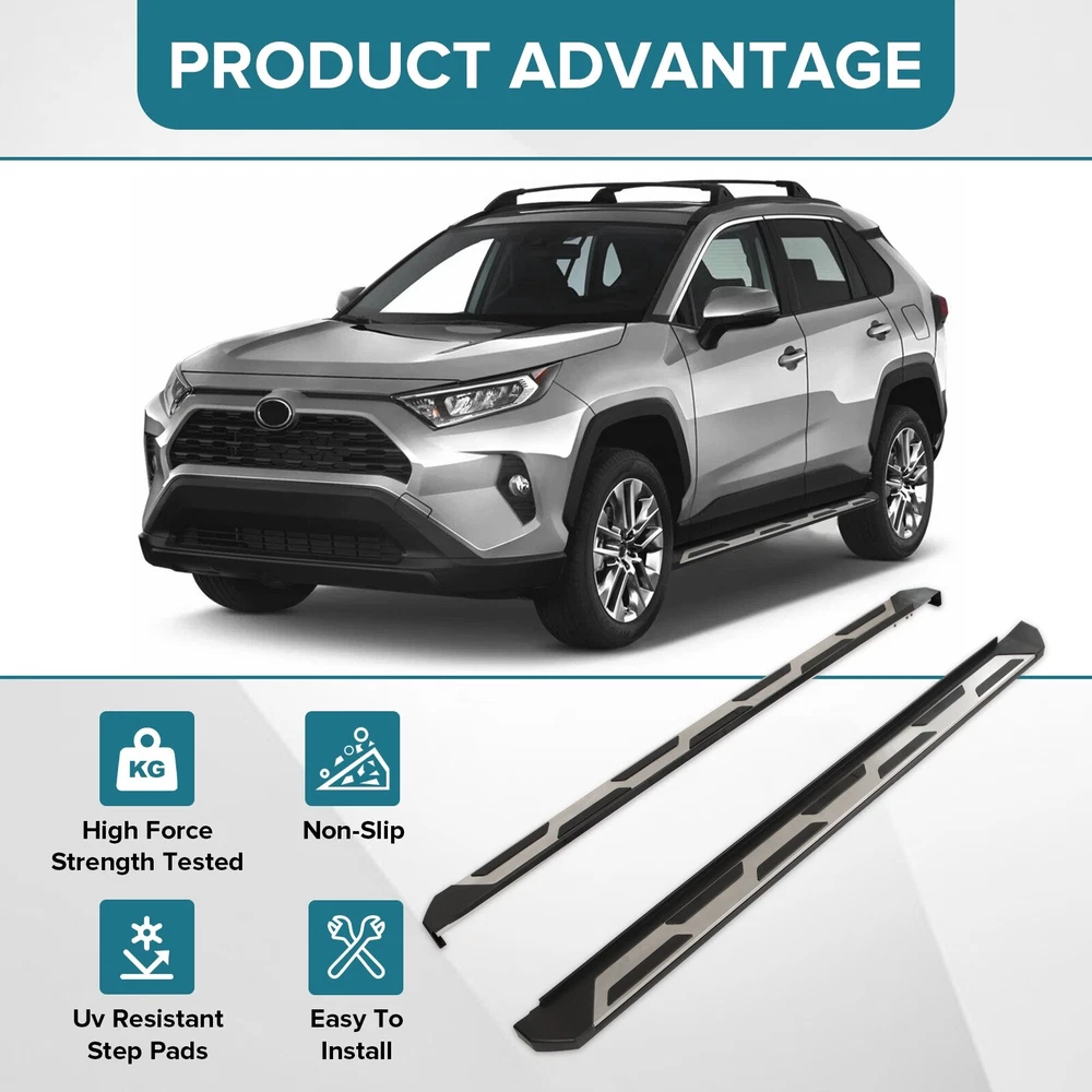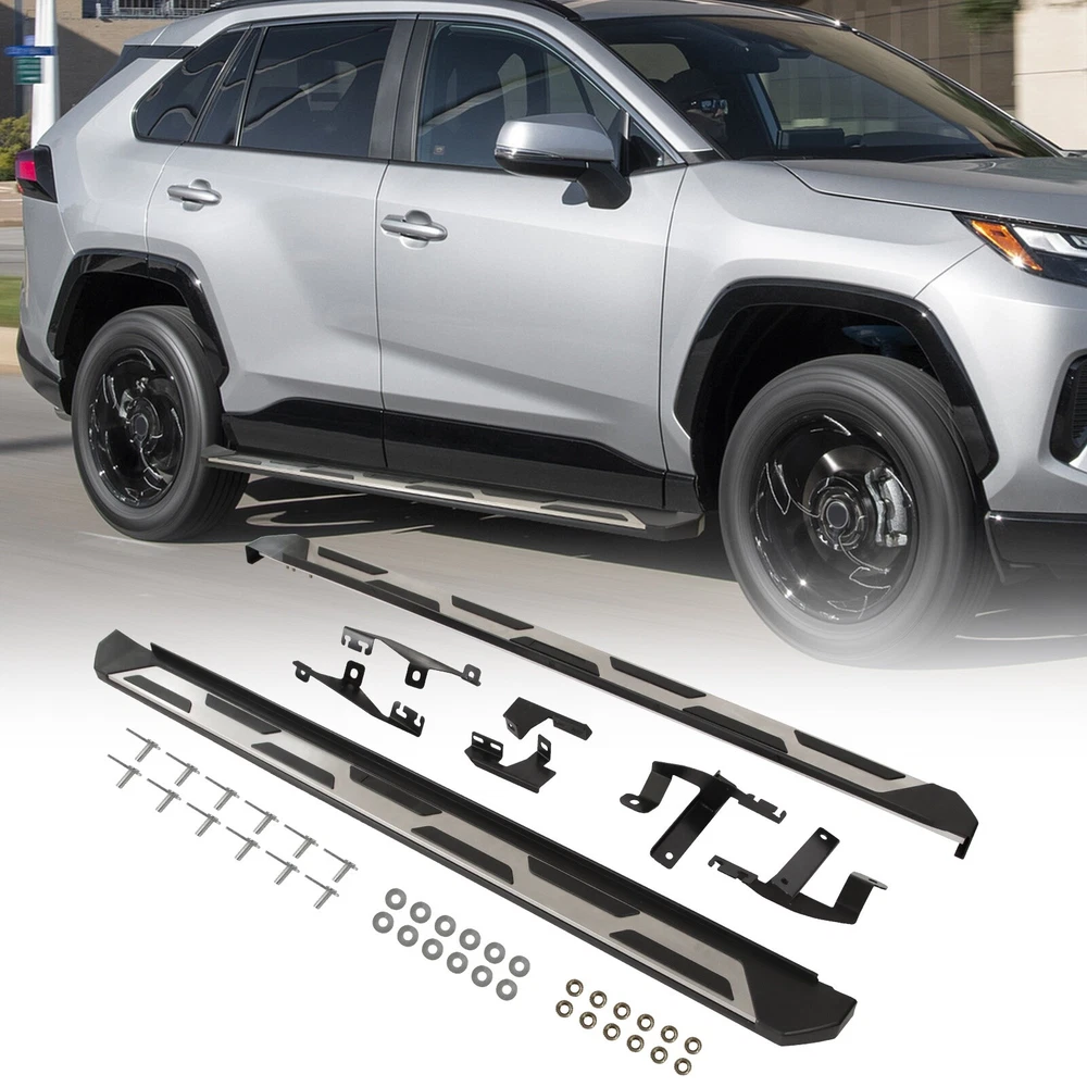 Specification Color: Black+silver Type: Step Nerf Bar Placement on Vehicle: Left, Right Fitment Type: Performance/Custom Material: Stainless Steel,ABS Shape: Rectangular Mounting Hardware Included: YES Package Size: 72.83*11.61*7.28 Package Weight: 28.88 Fitment 2019-2024 Toyota RAV4 Features & Benefits 1. High-Grade Construction: These running boards, also known as Side Steps, are made from high-grade Stainless Steel. This makes them lightweight yet extremely durable, perfect for long-term use. 2. Weather Resistant: Built tough, these running boards are highly resistant to corrosion. They perform well in all weather conditions, making them a reliable addition to your vehicle. 3. Easy Assembly and Removal: These running boards are designed for easy assembly and removal. This means you can easily install them when needed and remove them when not in use. 4. OEM Replacement with Quality Guarantee: These running boards serve as the perfect OEM replacement. They come with a quality guarantee, ensuring that you get the best value for your money. 5. Enhances Vehicle's Exterior: Apart from their functional benefits, these running boards also provide a great upgrade for your vehicle's exterior look. Please ensure to check the compatibility of these running boards with your vehicle before ordering. Feel free to contact us if you have any questions. On Nov 19, 2024 at 01:33:50 PST, seller added the following information: On Nov 22, 2024 at 02:00:25 PST, seller added the following information: