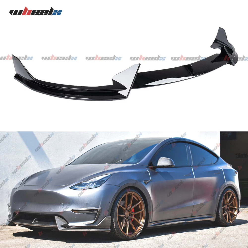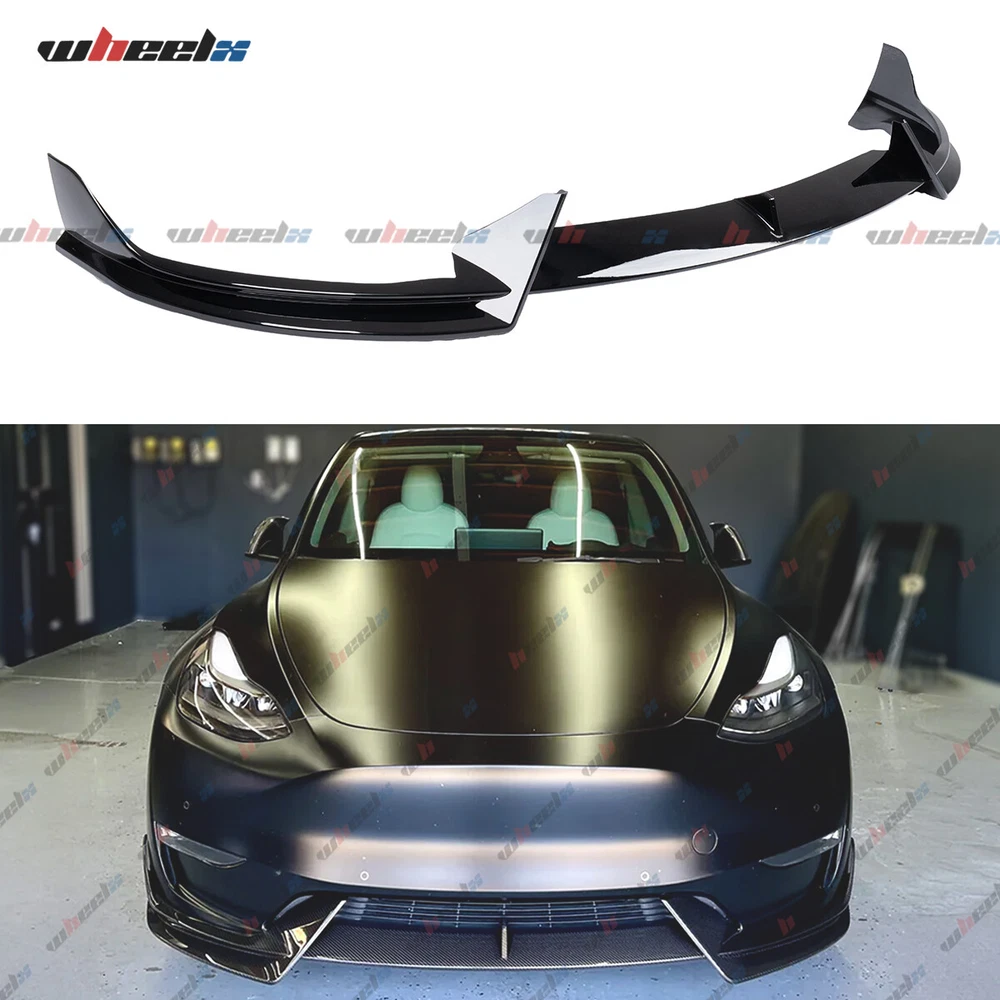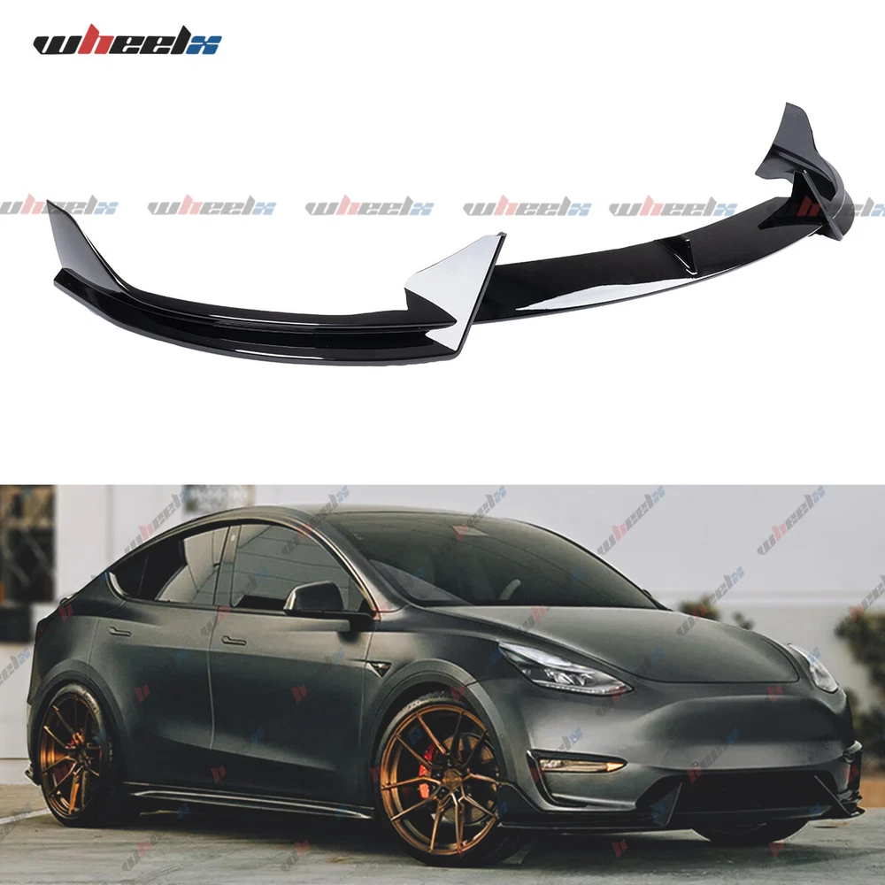 For 2020-2024 Tesla Model Y Glossy Black ABS Front Bumper Lip Spoiler Splitter