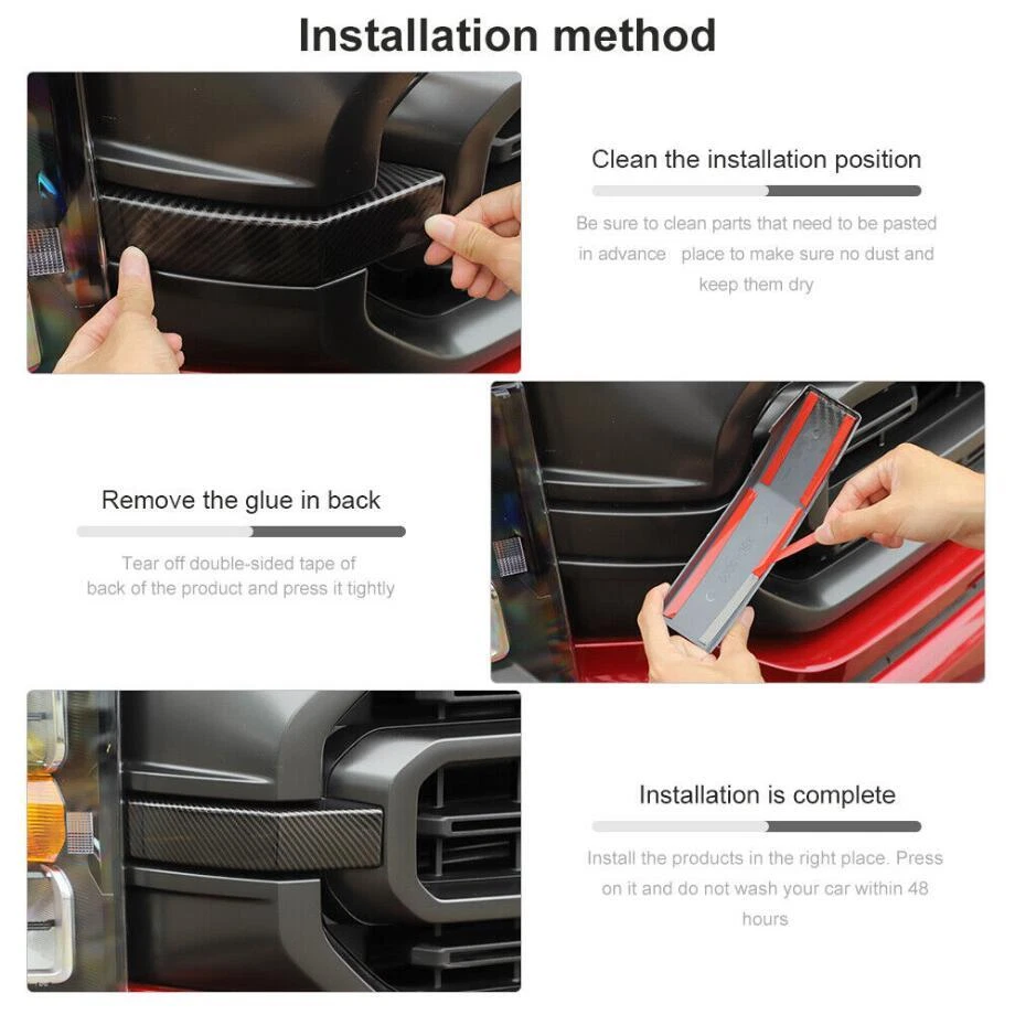 Fitment: Fit For Ford F150 F-150 2021 2022 2023 "Before purchase Please note that this product only fits the Ford F150 F-150 (XL, XLT) car model" Feature: Condition:100% Brand new Material: Made of high quality ABS Color: Carbon Fiber Style(Black) Package including:2PCS Made in a ISO9001 Factory,good quality and have been exported all over the world Easy installation.3M automotive adhesive tape is attached. (Sold as seen, please ensure suitability carefully before purchase) INSTRUCTION MANUAL IS NOT INCLUDED For 2021-2023 Ford F150 F-150 Carbon Fiber Front Grille Insert Cover Trim Bezels Fitment: Fit For Ford F150 F-150 2021 2022 2023 "Before purchase Please note that this product only fits the Ford F150 F-150 (XL, XLT) car model" Feature: Condition:100% Brand new Material: Made of high quality ABS Color: Carbon Fiber Style(Black) Package including:2PCS Made in a ISO9001 Factory,good quality and have been exported all over the world Easy installation.3M automotive adhesive tape is attached. (Sold as seen, please ensure suitability carefully before purchase) INSTRUCTION MANUAL IS NOT INCLUDED Installation method: Step1: please clean the place with 50% alcohol to make sure no dust. Step2: remove the 3m glue in back; Step3 : heat the 3m glue by hot air gun;(A tip for putting on with supplied 3m tape is to warm the handles and the covers this makes the glue on the tape more sticky and they will stay on for ever!) Step 4: install the products in the right place ,Don't wash your car within 48hours. Customer Service If you cannot find the answers to your questions in this listing, please contact us , we will reply u ASAP,we will try our best to pleasure to serve u ! we hope have more happy and longtime shopping experience with u ! Shipping We will ship your order within 120 hours after receiving your verified payment (Excluding Weekends and Public Holidays) ! If u need delivery now , pls inform us , we will delivery it ASAP! shipping Shipping and handing Payment Refunds and returns About us shipping Country Approx / Delivery time United States : 8-25 working days United Kingdom / Australia / Canada : 20-35 working days Brazil / South America : may take up to 5-8 weeks due to strict Custom Inspection Italy / France / Spain / Germany/Eastern Europe : may take up to 6-8 weeks due to strict Custom Inspection Shipping and handing Item will be shipped within 24 -48 hours after full payment is received. · We ship worldwide with flat rate China Post , and other standard international shipping. this international order may take a longer time to arrive, Normally the shippment to worldwide is used to take 8 to 25 business days, exclude Weekend. Payment We accept PayPal only. Payment must be received in 7 business days of auction closing. Any special request cannot be accepted after 24 hours of payment, because most of orders will be processed instantly and same day dispatched. Refunds and returns Please contact us before leaving Netural or Negative feedback if you are not satisfied our service or products. Good communication is helpful for both of us to resolve any problems and issues. We are promising to try our best to provide the best service and 100% satisfaction for valuable buyer like you · All of the items are new. If it is not in new conditions, refund is offered. Otherwise, replacement can be offered for defective product. We will exchange or give the seller credit to buyer. · Please email us for all returns, and exchange shipping and handling charges are non-refundable. · Customers are responsible for return shippment fee except for wrong shipment or defective products. About us If you have any questions, please feel free to email our service specialists 24 Hours a Day, 7 Days a Week, and we will reply you ASAP. If no response within 24 Hours, please check the spam of mail box or kindly re-send it to us. We greatly appreciate your POSITIVE feedback. Please do NOT leave negative or neutral feedback without any contact. If you haven't received item in 30 days, please contact us and we will arrange refund. Advantage Will Never fade or rust Country/Region of Manufacture China Items Automotive > Exterior Accessories Approve Made in an ISO 9001 facility to ensure good quality Color Carbon Fiber Style(Black) Manufacturer Part Number Does Not Apply Placement on Vehicle Exterior, Front, Left, Right Brand Unbranded Fitment Type Paste covering decorations Manufacturer Warranty 1 Year External Testing Certification ISO9001(ISO9001) Compatible with For Ford F150 F-150 2021 2022 2023 Material High quality ABS plastic Features Beautiful & Scratch Resistant Finish Painted Type Hood Package include 2PIECES/SET