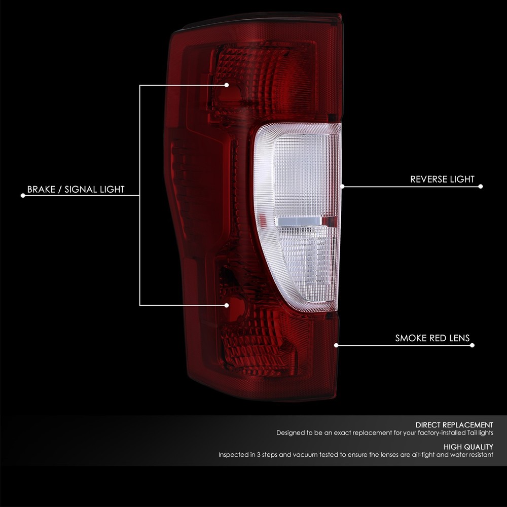 Welcome to Speed Daddy Store Home About Us Feedback Add To Favorites New Arrivals Ending Soon Contact Us For 20-22 Ford F250 F350 Super Duty Dark Red Lens Rear Tail Brake Lights Lamps Product Description Tail lights are a necessity to anyone wanting to add that custom look to their car or truck. Tail lights are perfect for replacing any broken or faded factory tail lights, and give your car or truck an awesome new appearance. Compared to other styling modifications, our tail lights are relatively inexpensive and extremely easy to install. Most cars have a variety of tail lights available, including those with chrome, smoke and carbon fiber housings. Specifics and Features : Plug-n-Play Operation, Direct Bolt-On OE Fitment or Replacement for the Stock Unit Comes with a Complete Set of Tail Lights (Driver and Passenger Side) Brings a Different Appearance to Vehicle thats Great for Show Use or to Replace Old and Worn Headlights Requires no Modification or Drilling Dark Red Lens Chrome Reflector Housing Halogen Taillight Uses OEM Bulbs Includes : 1 X Pair of Tail Lights (Left & Right) Notes : Compatible With: Ford F-250 Super Duty 2020-2022 Ford F-350 Super Duty 2020-2022 Ford F-450 Super Duty 2020-2022 Fits Models with Halogen Tail Lamps without Blind Spot Detection 100% Brand New Professional Installation Is Highly Recommended Installation Instruction Is Not Included Shipping Payment Returns Terms & Conditions Feedback Contact Us DOMESTIC LOWER 48 US STATES: FREE SALES TAX: CA ONLY VERY IMPORTANT: Double check shipping address. We are not responsible for incorrect or undeliverable addresses. Please use Shipping & Payments tab on top of page for shipping details for your location. Shipping to PR, HI, AK and PO Box addresses will be charged the same as shipping to Canada. GU, VI, SAIPAN will be charged the same as international shipping rate. For Canada shipping please select the lowest price. We do not offer expedited shipping. US Territories such as GU, VI, SAIPAN will be charged the same as CANADA shipping rate. Transaction will be held until a full shipping amount received. Some of the packages cannot be delivered to a PO Box. Customer is responsible to ensure PO Box address given is deliverable by the shipping company. Package will be held until a valid physical address is provided. Customer assumes shipping charges incurred in shipping to undeliverable address. International buyers are responsible for all customs duties, taxes, and other applicable fees incurred by the country's customs/border regulations. Please contact customs for more information. We ship 98% of all orders the same or next business day after payment received/cleared. Please understand that once orders are shipped, we cannot control the transit times thereafter. Most orders will ship via USPS First Class/Priority Mail or FedEx/UPS or the best suitable carrier for the specific size of the product. We are not responsible for any changes to address after item has been shipped. Item will be shipped out within 24 hours after payment cleared, except for weekends and holidays. PayPal e-check takes 3-7 business days to be processed. We will not ship until an e-check has been cleared. 30 Days Free Returns, please notify us within 30 days after you've received your order. Please email us or call us to obtain a RMA (Return Merchandise Authorization) number from us, and have the RMA number written on the return package. Items to be returned must be in resalable condition. All returns are for refund ONLY. No exchange accepted. For emissions related items, please check with your local jurisdiction for emission specific requirements before purchasing. All items do not come with installation instruction unless otherwise specified. If item is questionable, please consult your local professional/mechanic before making purchase. Shipping DOMESTIC LOWER 48 US STATES: FREE SALES TAX: CA ONLY VERY IMPORTANT: Double check shipping address. We are not responsible for incorrect or undeliverable addresses. Please use Shipping & Payments tab on top of page for shipping details for your location. Shipping to PR, HI, AK and PO Box addresses will be charged the same as shipping to Canada. GU, VI, SAIPAN will be charged the same as international shipping rate. For Canada shipping please select the lowest price. We do not offer expedited shipping. US Territories such as GU, VI, SAIPAN will be charged the same as CANADA shipping rate. Transaction will be held until a full shipping amount received. Some of the packages cannot be delivered to a PO Box. Customer is responsible to ensure PO Box address given is deliverable by the shipping company. Package will be held until a valid physical address is provided. Customer assumes shipping charges incurred in shipping to undeliverable address. International buyers are responsible for all customs duties, taxes, and other applicable fees incurred by the country's customs/border regulations. Please contact customs for more information. We ship 98% of all orders the same or next business day after payment received/cleared. Please understand that once orders are shipped, we cannot control the transit times thereafter. Most orders will ship via USPS First Class/Priority Mail or FedEx/UPS or the best suitable carrier for the specific size of the product. We are not responsible for any changes to address after item has been shipped. Payment Item will be shipped out within 24 hours after payment cleared, except for weekends and holidays. PayPal e-check takes 3-7 business days to be processed. We will not ship until an e-check has been cleared. Returns 30 Days money back, please notify us within 30 days after you've received your purchased item. All return requests must be submitted through your eBay account. You have to obtain a RMA (Return Merchandise Authorization) number from us, and have the RMA number written on the return package. Buyers pay for return shipping fee. Items to be returned must be in resalable c