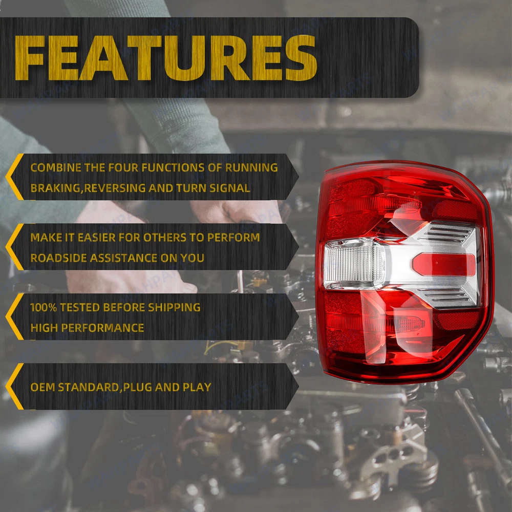 Features & details 【 Compatible with 】2022-2024 Ford Maverick XL XLT 【 OE Replace Number 】NZ6Z-13404-C, NZ6Z-13404-E, NZ6Z-13404-A, FO2801288 Please confirm the product if it matches your car before you purchase. 【Description】 Type: Tail Light Assembly Condition: 100% Brand New Placement On Vehicle: Rear, Passenger, Right, RH Lens Color: Red Housing Color: Chrome Lighting Technology: Halogen Light Color: Red+ Yelllow+ White Funtion: Driving Light+ Brake Light+ Reversing Light ( Without Side Light ) 【Features】 Easy to Install. Direct replacement of the damaged or worn rear lamps.Plug and Play, no splicing needed. Professional installation is recommended for the functionality. Improve the safety of driving. Made of high-quality polycarbonate housing, makes taillights durable; clear and red lens provide bright red color, and the sided safety reflector, make the tail lights easily visible when visibility is low due to rain, fog, or darkness, make your daily driving safer. Enhance aesthetics. The shape and design of the tail lights often contribute to the vehicle's overall aesthetic, giving it a distinct and modern look. Quality. This structure of tail light is strong, with good shock resistance and impact resistance, and at the same time excellent waterproof effect, it can bring you a safer driving experience even in bad weather. 【Note】 Professional installation is highly recommended. For 2022-2024 Ford Maverick XL and XLT Model with HALOGEN Lamps The real color of the item may be slightly different from the pictures shown on website caused by many factors such as brightness of your monitor and light brightness. 【 Package Includes 】 1× Halogen Tail Light Assembly ( Rear Right Passenger Side ) This item doesn't come with manual installation. 【Service & Warranty】 Purchase from WAHPARTS, enjoy 1 year no worries-warranty, whenever you met issue when installing or using, please contact us via eBay Message, and we will reply within 24 hours and help solve the problem. Easy to Install. Direct replacement of the damaged or worn rear lamps.Plug and Play, no splicing needed. Professional installation is recommended for the functionality. Enhance aesthetics. The shape and design of the tail lights often contribute to the vehicle's overall aesthetic, giving it a distinct and modern look. Quality. This structure of tail light is strong, with good shock resistance and impact resistance, and at the same time excellent waterproof effect, it can bring you a safer driving experience even in bad weather. Improve the safety of driving. Made of high-quality polycarbonate housing, makes taillights durable; clear and red lens provide bright red color, and the sided safety reflector, make the tail lights easily visible when visibility is low due to rain, fog, or darkness, make your daily driving safer. Customer Question & Answers Q1: Will This Part Fit My Vehicle? We list all the compatiblity, if your vehicle does not show up on the compatibility table at the top of our listings, welcome you to contact us for free consulation before purchasing a product. Q2: Does they come with warranty? All of our product comes with 1-year warranty, but some times you need to pay the shipping fee. Q3: How to use it? If you don't know how to install this accessory, welcome to contact us, we will provide you with a video guide. Payment Shipping Warranty & Service Returns/Exchanges Contact us Payment Most of the payment methods are available, such as Paypal, Payoneer, Credit Card. Within 1 day of receiving your payment, we will start processing your order. Shipping All Items Will Be Ship Within 1working Days, and We Will Ship out All Orders As Soon As Possible After Payment Verified, Please Allow up to 1-6 Business Days for Delivery. Why Choose the Us Stock? 1. Us Local Shipping, No Extra Customs Cost. 2. Fast Delivery: 1-6 Working Days Delivery. Warranty & Service All the product in our store come with a 1-year-warranty. If there is a problem with the product you purchased within 1 year, please contact us, we will provide you with after-sale protection. Our job is not complete until each customer is satisfied! Receiving positive feedback is extremely important to us. We give all our buyers positive feedback as soon as payment is received Negative feedback and bad ratings do not solve the problem! If you contact us via eBay, we will be more than happy to work with you! Returns/Exchanges If you received an incorrect, damaged, defective, or item not as described , contact us for a partial/full refund or replacement on our costs. If we shipped you the wrong part, we pay for the return shipment and send you the correct part. If you ordered the wrong part, contact us for a return address and simply return it,give us a tracking number. We will send you the new item as soon as the returned package is received; If you simply don't want the part, ship it back and give us a tracking number. After we receive the item, we will refund the item price minus shipping costs. All returns must be done within 30 days after receiving the package. Parts must be new and unused in the original condition: including box, packaging and all other accessories,or we will charge you a partial costs. Contact us If you encounter any problems during purchase or use, please contact us via eBay message directly. On Feb 16, 2025 at 21:11:41 PST, seller added the following information: