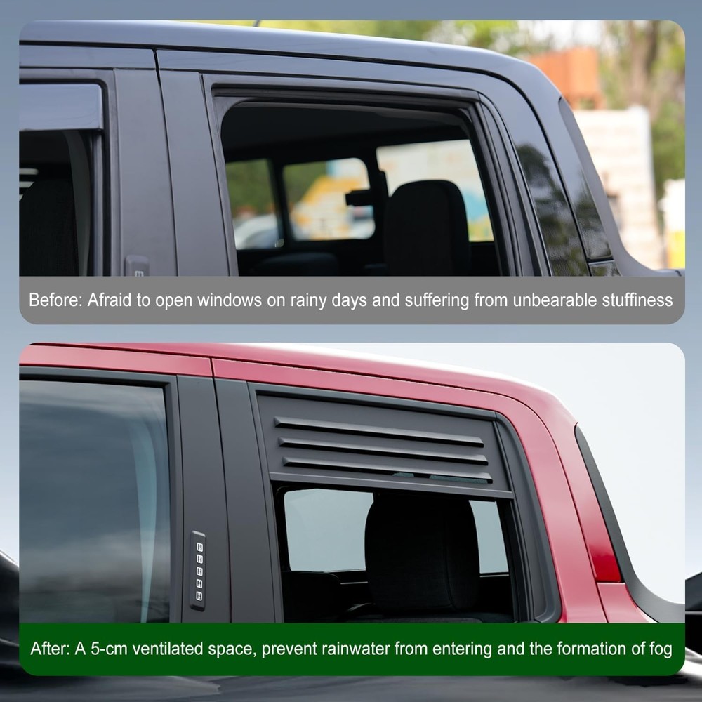 Store Categories Store Categories Other For 2022-2025 Ford Maverick Louvers Ventilation Panel Rear Side Window Blinds Product Description 1.Exclusive Fitment: The rear side window louvers ventilation panel compatible with 2022 2023 2024 2025 Ford Maverick window guard is designed according to original car. It includes 2pcs. Please check carefully before purchasing. 2.High-Quality Material: The rear side window blinds replacement for 2022-2025 Ford Maverick window louver cover is made of lightweight ABS plastic, known for its high strength and long lifespan. Their textured finish withstands scratches. 3.Multi-Function: The window vent decor replacement for Ford Maverick accessories extends the functionality of the glass window,maintaining the enclosed environment while adding a ventilation feature. Built-in mesh screen shields from flies,rain and road debris while enhancing airflow – perfect for camping naps.Their louvers deter pets or kids from reaching outside,making summer drive safer and cooler. 4.Easy Installation:The no-drill vent deflector is easy to install and remove.To use,simply insert the vent panel into the window clips and secure it by raising up the window glass.Without the glass holding it in place, the vent panel may fall due to the clip force alone.When not needed,lower the window and gently pull the vent panel downward to remove it. 5.Satisfactory Service: We will provide you with satisfactory service. If you have any problems about louvers ventilation panel replacement for 2022-2024 2025 Ford Maverick vent deflector, please contact us any time directly. Fitment Fitment The rear side window louvers ventilation panel compatible with 2022 2023 2024 2025 Ford Maverick window guard is designed according to original car. It includes 2pcs. Please check carefully before purchasing. Copyright © 2023 Dianxiaomi
