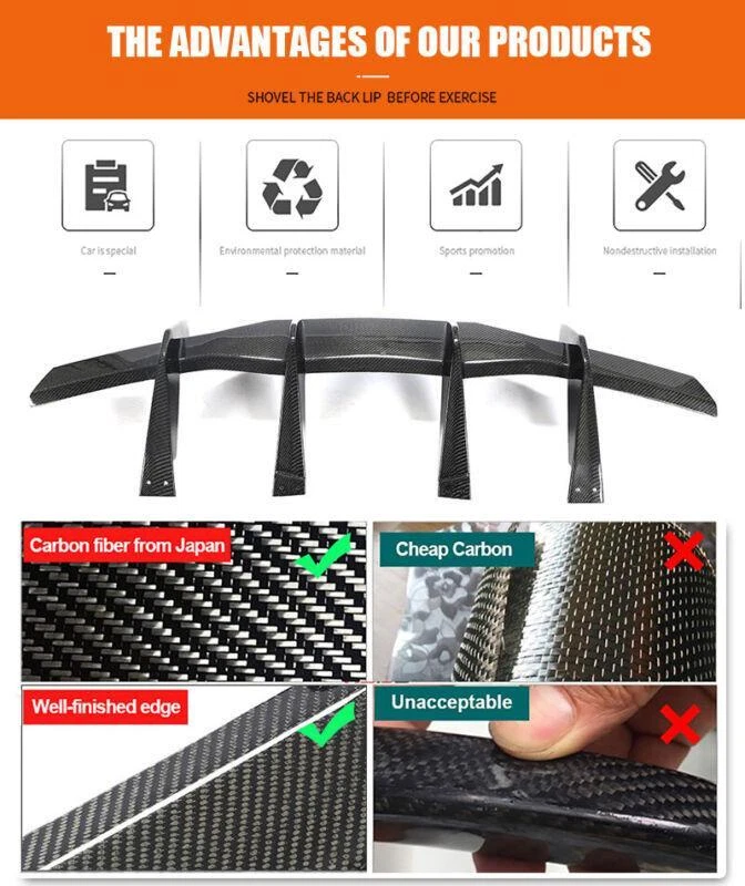 Fitment: Fit For Chevrolet Corvette C8 Stingray 2020-2022 Specifications: Product Name: Rear Bumper Lip Material: Carbon Fiber Features: • Made of High Quality Lightweight Carbon Fiber. • Improve the aerodynamic characteristics by enhancing the transition between the high-speed airflow below the vehicle and the free airflow in the surrounding atmosphere. • Provide space for the airflow under the vehicle to decelerate and expand, thereby providing pressure recovery by providing a degree of "wake fill" or more accurately. • Does not cause excessive airflow separation and resistance and keep driving safety. • Sport style rear diffuser, perfect for decoration, increase both road safety and racing style. Package included: • Car Rear Lip Bumper Body Kits • Mounting Accessories Carbon Fiber Rear Bumper Lip FOR Chevrolet TheRear Bumper Lip is one of the simplest mods you can do to the exterior of your car that will give your car that completely different look. Not only are spoilers meant for great looks, they also help Prevent the rear of the car from scratching. Fitment: Fit For Chevrolet Corvette C8 Stingray 2020-2022 Specifications: Product Name: Rear Bumper Lip Material: Carbon Fiber Features: • Made of High Quality Lightweight Carbon Fiber. • Improve the aerodynamic characteristics by enhancing the transition between the high-speed airflow below the vehicle and the free airflow in the surrounding atmosphere. • Provide space for the airflow under the vehicle to decelerate and expand, thereby providing pressure recovery by providing a degree of "wake fill" or more accurately. • Does not cause excessive airflow separation and resistance and keep driving safety. • Sport style rear diffuser, perfect for decoration, increase both road safety and racing style. Package included: • Car Rear Lip Bumper Body Kits • Mounting Accessories Delivery details Payment and TAX Return Policy Warranty Contact us Delivery details NOTE: The shipping fee is only for the mainland of each country, it does not include the overseas territories, such as Virgin Islands (U.S.) , Puerto Rico, Hawaii , French Reunion Island, etc. But on ebay, when buyers from Puerto Rico and overseas territories , the shipping fee is equal to United States, it is NOT correct,. please contact us for correct shipping fee, or we will cancel the order. Sorry for the inconvenience, and thanks for your cooperation. 2. If you want to upgrade the shipping, please contact us before making payment, we will revise the shipping fee. 3. We will ship according to your Ebay address. Please make sure it is correct and include phone number for delivery. If you want to know the exact shipping time , please contact us . Payment and TAX 1.We accept Multiple Payment Methods Available: Credit Card, Debit Card, Gift Card, Apple Pay, Goggle Pay, PayPal and PayPal Cred. 2.Please leave note for your special request (e.g. Colors or Size) in ebay note when you pay the order. 3.Your must complete the payment within 7 days or Ebay will automatically open unpaid item case For US Buyer:The invoice value of each item is less than 800USD ,so you no need to pay any tariff . NON-US Buyer Note: Most countries are tax free based on our invoices, if tax is required, which will be buyer's responsibility. Return Policy 1.Customer satisfaction is our top goal. We believe our items are so outstanding. All products are quality checked. They are new and in good condition when shipped to our customers. We are convinced you will be happy with your Purchase. 2.If product is defective or damage upon arrival, or wrong product shipped, please contact us immediately. Returns accepted within 30 days of delivery date and item must be in original new condition, not worn or altered in any way with attached tags & wrap. Otherwise deal is final. Return shipping must be paid by buyer. Please always contact us to resolve any problems, we will do our best to satisfy you. Thanks very much. Warranty 30 Days Money Back It is our goal to provide 100% satisfaction and peace of mind to our customers. If you are not satisfied with the products for any reason within 30 days of receiving the item. (Items must be not opened in their original package. Any mark of installation, mounting, cutting, scratch or using will not be allowed.) Please be free to contact us first if you have any problems.thanks. Contact us 1.We are trying our best to explain all details of the products here! If you have any question, please feel free to contact us by Ebay message, and We will get back to you within 24-48 hours. 2.Customer satisfaction is our NO.1 priority. If you are not happy with the item that you purchase, please contact us first. We will try our best to solve the problem with you.Please leave us a positive feedback if you receive the item.Please do not leave negative or neutral feedback without any contact.If you haven't received item in 30 days, please contact us and we will arrange refund.We appreciate your business.Happy Bidding & Have a nice day! 3.Working hours: From 8 a.m. to 6 p.m. from Monday to Friday. From 8 a.m. to 12 a.m. on Saturday morning Holiday/Rest time: Saturday afternoon and Sunday