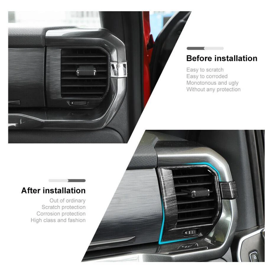 Fitment: Fit For Ford F150 F-150 2021 2022 2023 "Please note that this product does not fit the Ford F-150 Lightning(Platinum,LARIAT) car model" Feature: Condition:100% Brand new Material: Made of high quality ABS Color: Black Wood Grain Package including:4PCS Made in a ISO9001 Factory,good quality and have been exported all over the world Easy installation.3M automotive adhesive tape is attached. (Sold as seen, please ensure suitability carefully before purchase) INSTRUCTION MANUAL IS NOT INCLUDED For 21-23 Ford F150 Black Wood Grain Inner Dash Side Air Outlet Vent Covers Trim Fitment: Fit For Ford F150 F-150 2021 2022 2023 "Please note that this product does not fit the Ford F-150 Lightning(Platinum,LARIAT) car model" Feature: Condition:100% Brand new Material: Made of high quality ABS Color: Black Wood Grain Package including:4PCS Made in a ISO9001 Factory,good quality and have been exported all over the world Easy installation.3M automotive adhesive tape is attached. (Sold as seen, please ensure suitability carefully before purchase) INSTRUCTION MANUAL IS NOT INCLUDED Installation method: Step1: please clean the place with 50% alcohol to make sure no dust. Step2: remove the 3m glue in back; Step3 : heat the 3m glue by hot air gun;(A tip for putting on with supplied 3m tape is to warm the handles and the covers this makes the glue on the tape more sticky and they will stay on for ever!) Step 4: install the products in the right place ,Don't wash your car within 48hours. Customer Service If you cannot find the answers to your questions in this listing, please contact us , we will reply u ASAP,we will try our best to pleasure to serve u ! we hope have more happy and longtime shopping experience with u ! Shipping We will ship your order within 120 hours after receiving your verified payment (Excluding Weekends and Public Holidays) ! If u need delivery now , pls inform us , we will delivery it ASAP! shipping Shipping and handing Payment Refunds and returns About us shipping Country Approx / Delivery time United States : 8-25 working days United Kingdom / Australia / Canada : 20-35 working days Brazil / South America : may take up to 5-8 weeks due to strict Custom Inspection Italy / France / Spain / Germany/Eastern Europe : may take up to 6-8 weeks due to strict Custom Inspection Shipping and handing Item will be shipped within 24 -48 hours after full payment is received. · We ship worldwide with flat rate China Post , and other standard international shipping. this international order may take a longer time to arrive, Normally the shippment to worldwide is used to take 8 to 25 business days, exclude Weekend. Payment We accept PayPal only. Payment must be received in 7 business days of auction closing. Any special request cannot be accepted after 24 hours of payment, because most of orders will be processed instantly and same day dispatched. Refunds and returns Please contact us before leaving Netural or Negative feedback if you are not satisfied our service or products. Good communication is helpful for both of us to resolve any problems and issues. We are promising to try our best to provide the best service and 100% satisfaction for valuable buyer like you · All of the items are new. If it is not in new conditions, refund is offered. Otherwise, replacement can be offered for defective product. We will exchange or give the seller credit to buyer. · Please email us for all returns, and exchange shipping and handling charges are non-refundable. · Customers are responsible for return shippment fee except for wrong shipment or defective products. About us If you have any questions, please feel free to email our service specialists 24 Hours a Day, 7 Days a Week, and we will reply you ASAP. If no response within 24 Hours, please check the spam of mail box or kindly re-send it to us. We greatly appreciate your POSITIVE feedback. Please do NOT leave negative or neutral feedback without any contact. If you haven't received item in 30 days, please contact us and we will arrange refund. Advantage Will Never fade or rust Country/Region of Manufacture China Items Automotive > Exterior Accessories Approve Made in an ISO 9001 facility to ensure good quality Color Black Wood Grain Manufacturer Part Number Does Not Apply Placement on Vehicle Interior, Front, Left, Right Brand Unbranded Fitment Type Paste covering decorations Manufacturer Warranty 1 Year External Testing Certification ISO9001(ISO9001) Compatible with For Ford F150 F-150 2021 2022 2023 Material High quality ABS plastic Features Beautiful & Scratch Resistant Finish Painted Type Hood Package include 4PIECES/SET