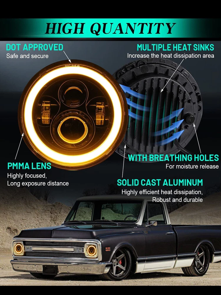 7 Inch led headlight Notice: Note: The tail light can perfectly fit Jeep Wrangler TJ(1997-2006), ( for Jeep Wrangler JK)You need to change the hole yourself ,Professional installation is highly recommended if you have any difficult in installation. Please verify the year, make and model in the product details before purchasing. Professional installation is highly recommended if you have any difficult in installation. Please allow 1-2mm in size measurement chart for variance due to manual measurement. Fitment: (Fits following vehicles:) Jeep Wrangler TJ (1997-2006) Jeep Wrangler TJ Unlimited / LJ (2003-2006) Jeep Wrangler JK 2 Door (2007-2015) Jeep Wrangler JK 4 Door Unlimited (2007-2015) Land Rover Defender 90 & 110 AM General Hummer (1992~2001) Hummer H1&H2 (2003~2009) (H2 needs 9007 male to H4 female adapter, package not included) Uses existing headlamp retainer, installation in about 20 minutes. Wrangler JK Models reqiure H4-H13 adapter (Fits following motorcycle:) Any Har ley Davidson models with 7" headlight Har ley Davidson FLD 2012-2013 Har ley Davidson Touring Models 1994-2013 Har ley Davidson Softail Models 1991-2013 (Requires 7" Bezel Kit, Not Included!) Specifications: LED Power: 75W(13pcs*5W LED+10WDRL) Operating Voltage: DC12V Color Temperature: 6000k Working Life: 50,000+ Hours Beam: High-Low beam+DRL Waterproof Rate: IP68 Material: Die-cast aluminum housing, clear hardcoated PC lens Size: 180mm x 180mm x 82mm / 7.09" x 7.09" x 3.23" Features: 75W LED light has low beam, high beam and DRL function. Perfect sealed to prevent moisture and water build-up. 7 inch 75W headlights are designed for universal use. Fit most of headlights bucket without modification. Quick and convenient installation, just plug and play. H4 adapter harness & H13 adapter harness included. Can be applied to SUVs, Project Vehicles, Watercraft, Off Road 4x4, Mining Vehicles, Heavy Equipment, Trucks lights, Jeeps, Motorcycles, Snowmobile, etc. About the Adapter: They might be slight flickering cuz the voltage instability characteristics of JEEP WRANGLER rather than headllights themselves. You couldn\\'t notice the original hologen headlight flickers because of luminance not strong enough. Be aware of that,Plug the headlight first,if the headlights are not flickering,just keep the adapter away. 2Pcs 16LED Dual Color Trailer Taillight Turn Signal Brake Light Driving Light Red White Light for Wrangler Features: - Very bright Flux LED. - Epoxy sealed, waterproof. - Function as stop, turn, tail and back up lights. - High light efficiency, low power consumption, energy saving. - Waterproof, Dustproof, Anti-shock & Anti-vibration. - Long lasting, lifespan above 50,000 hours. - Easy Install to different types vehicles. - Acrylic lens is screwed on to the housing. - Features chrome reflector inside the lens which is MUCH brighter and MORE visible from different angle. - Each contains 12 red square LED (stop, turn and tail) and 4 white square LED (back-up/reverse). - Stud Mount, five wires (2 black, 1 red, 1 white and 1 brown). Specification: Material: Plastic Color: Red/White Size: 173x147x32mm Voltage: 12V LED Quantity: 16pcs (4pcs White LEDs and 12pcs Red LEDs) Waterproof rating: IP68 Light source: LED Light source power: 0.06 * 16 (W) Life: 50000 (hours) Function: steering, braking, driving Applicable models: trucks, trailers, trucks, buses, trailers Wire Connection Tips: Black Wire (negative) + Red Wire (Positive), Red light is high brightness Black Wire (negative) + Brown Wire (Positive), Red light is low brightness 2 x Black Wire (negative) + White Wire (Positive), White light works Note:( for Jeep Wrangler JK)You need to change the hole yourself Packing included: 2 x 16 LED Red/White Light 2 x Led Headlights 2 x H4-H13 Connector (Installation instruction is NOT included)