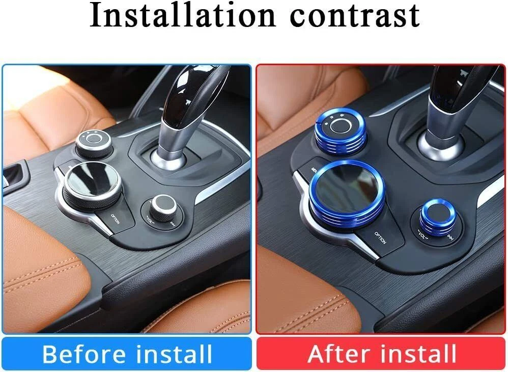 For Alfa Romeo Giulia Stelvio Blue Center Console Multimedia Knob Cover 2017-19 Fit For Alfa Romeo Giulia Stelvio 2017-2019 Please make sure this product is fit for your car,thank you ! Material: Aluminum Alloy . Colour: Same As Pictures . This product has double sided paste , The paste effect depends on paste conditions and the correct way of installation. Please see the installation manual. Payment Delivery details Terms of sales About us Contact us Payment We accept Paypal only. We only ship to your Paypal's address, please ensure your shipping address on your paypal account is correct. If you have any change for address, please inform us in ebay note. Payment must be fulfilled within 7 days after purchase. All non-paying orders will receive an unpaid reminder from eBay. Delivery details We will ship the goods as soon as we receive your payment.(usually within 5 business day). All items will be shipped to buyers E-bay address. If your E-bay address doesn't match the desired delivery address, please contact us immediately. The estimated delivery time is 8-16 business days for the US. However, for certain European and South American countries, it may take up to 6-8 weeks due to thorough customs inspections. We offer worldwide shipping. If you plan to purchase multiple products at once, please contact us. Terms of sales Items can be returned within a 30-day period. Please make sure that the item is unused, in its original packaging, and in the same condition as when you received it. To initiate a return, please get in touch with our customer service team and provide them with the necessary details, including the order number, reason for return, and any supporting documentation (such as photos or videos, if applicable), before initiating a return request. The cost of return shipping will be the responsibility of the customer, unless the return is a result of a defect or an error on our part. For a secure return, we recommend using a reliable shipping method with tracking. Refunds will be processed through the original payment method. Please allow one business day for the refund to be reflected in your account. If the item you received is damaged or faulty, please notify us immediately. We may require additional information or evidence to facilitate the return or exchange process. About us Feedback is important to all of us participating in the eBay community. We have been working hard and strive for 100% customer satisfaction. We will leave a positive feedback immediately after payment is received. We appreciate a positive feedback as much as you do. If for some reason there is any issue with the purchase,please contact us prior to leaving feedback. We will be glad to work together and provide a satisfying solution. Contact us If you are not satisfied with our products or services, please contact us before leaving negative feedback. Good communication helps buyers and sellers to solve any problems. We are promising to try our best to provide the best service and 100% satisfaction for valuable buyer like you.