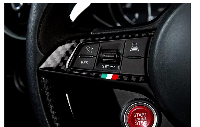 DEAR CUSTOMER, IF YOU NEED CONTACT US FIRST! NO RETURNS! THANK YOU! 2PCS Car Steering Wheel Cover Sticker Decal Carbon Fiber Trim Compatible with Alfa Romeo Giulia Stelvio 2017 2018 2019 Interior Accessories Models: 2016-2019 Alfa Romeo Giulia Stelvio Material:carbon fiber Number of pieces:2 pcs Mounting type self-adhesive