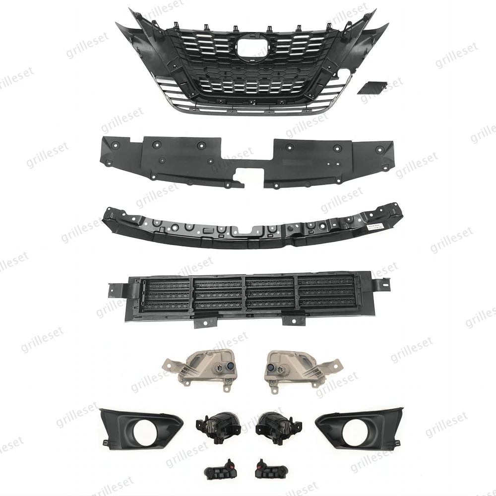Fit for : 1 Set (13 PCS) Includes:(See more pictures for details) 1 Pc front upper black grille with chrome trim 1 Pc front tow hook hole cover 1 Pc front radiator upper support cover 1 Pc front bumper cover reinforcement 1 Pc front lower grille radiator shutter assembly without motor 2 Pcs front daytime running light with bulb 2 Pcs fog lights with bulb,switch,relay and harness 2 Pcs fog light bezels 2 Pcs front bumper brackets Item OE number : 62310-6CG1A;622A0-6CA0B;62078-6CA1B;62240-6CA0A;62330-6CA0C;26135-6CA0A;26130-6CA0A;62257-6CA0B;62256-6CA0B;26155-6CA0B;26150-6CA0B;62221-6CA0A;62220-6CA0A Installation : Perfect fit direct replacement, no modifications required. Installation manual not provided; we recommend professional installation. Item's-Features : Superior quality kit 100% brand new Made from high-quality materials Excellent replacement part, no modifications needed Other parts fit for