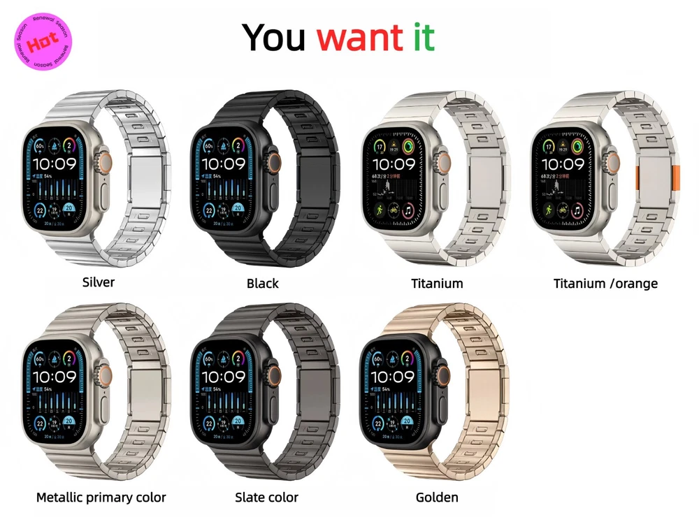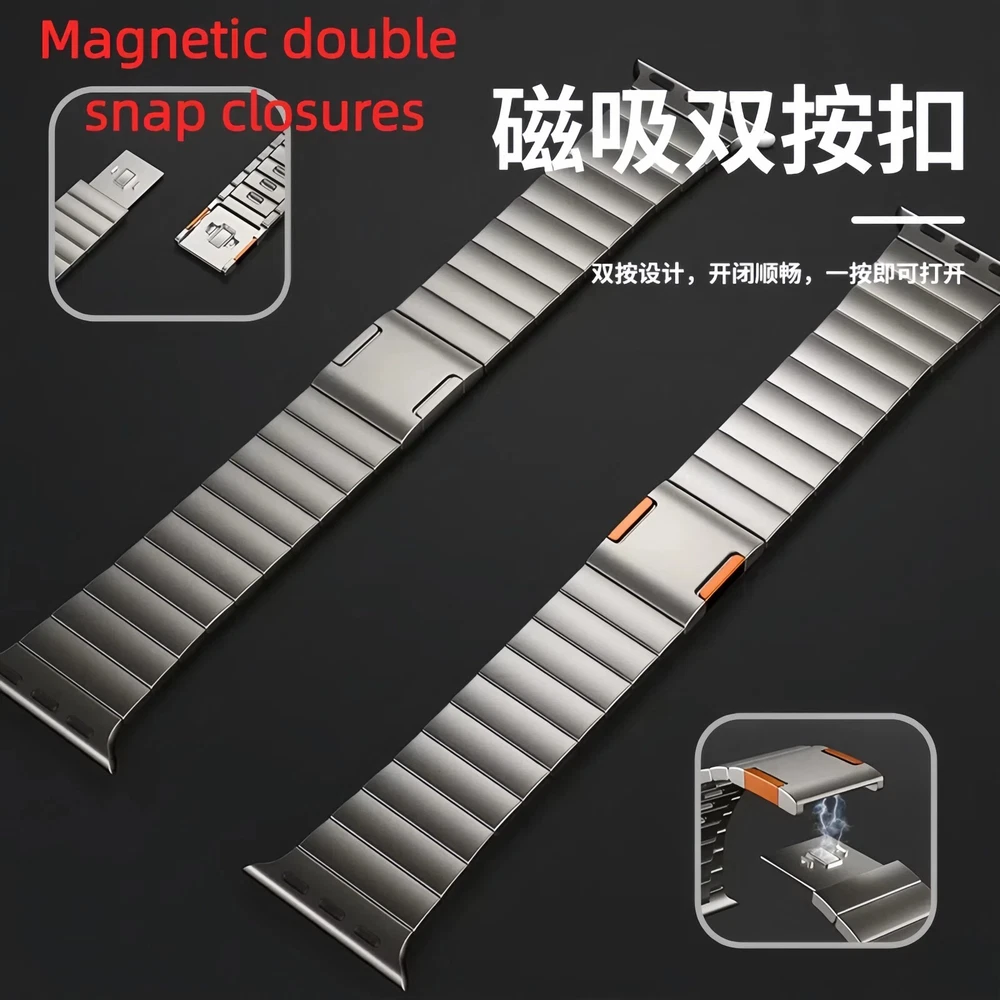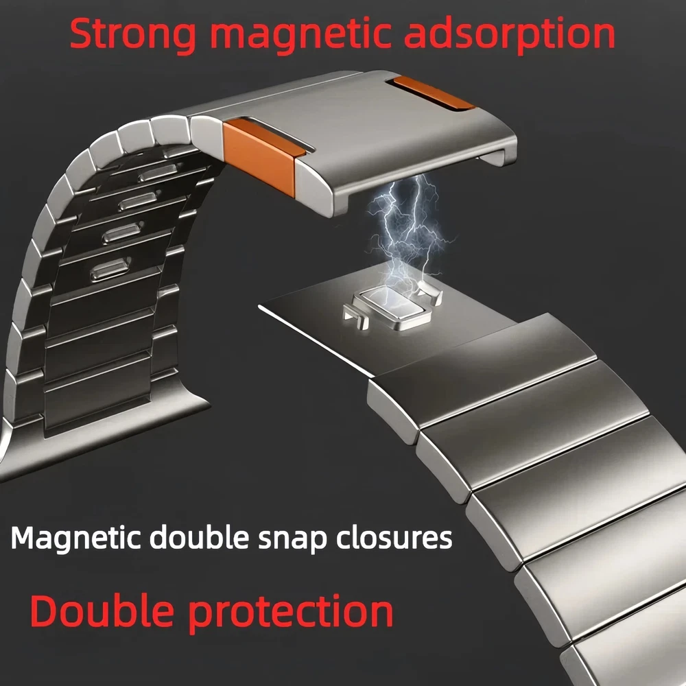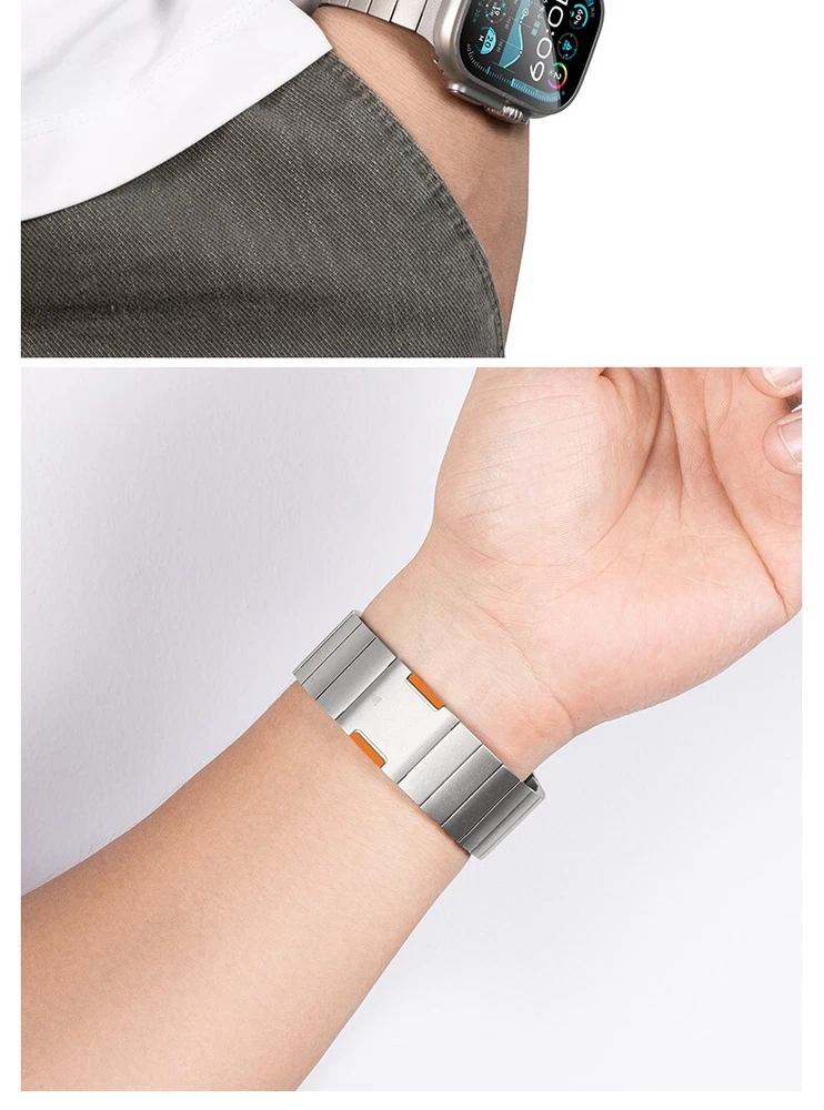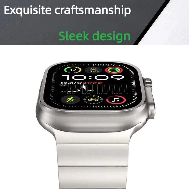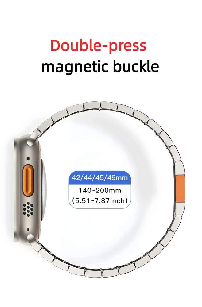 For Apple Watch 10 9 8 7 SE Magnetic buckle steel strap 42/44/46/49mm Ultra 2 Features: · 100% brand new high quality. · Material: Stainless steel. · Exquisite craftsmanship and stylish design. · Strong magnetic adsorption, firm wear; Magnetic double snap fastening, double protection. · This chain link adds a touch of luxury and is perfect for any occasion. · Quick release of buttons, no tools required, easy to wear. · Suitable for wrist size: 42/44/45/46/49mm strap fits wrist size 5.51"-7.87" (140mm-220mm); Compatible With: > For Apple Watch Ultra / Ultra 2 > For Apple Watch Series 10 / Series 9 / Series 8 / Series 7 / Series 6 / Series 5 / Series 4 / Series 3 / Series 2 / Series 1 / > For Apple Watch Nike > For Apple Watch Hermes > For Apple Watch SE Package includes: 1x Magnetic buckle steel strap ONLY !!! ( PS: The Apple Watch is Not Included )