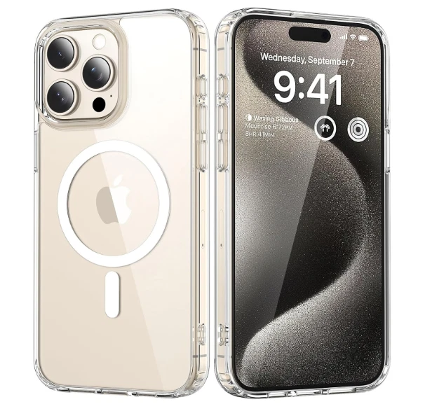 Protect your precious Apple iPhone 16 with this shockproof clear case. Specifically designed for Apple devices, this ultra-slim and transparent cover is made of high-quality acrylic material that ensures maximum protection against scratches, bumps, and minor drops. Its magnetic wireless charging standard allows for easy charging without having to remove the cover. This cover is suitable for Apple iPhone 14, 15, 14 Pro Max, 15 Pro Max, and 13 Pro Max models. With its sleek design and hybrid features, this cover is the perfect addition to your Apple ecosystem. Get yours today and experience the ultimate protection for your iPhone.