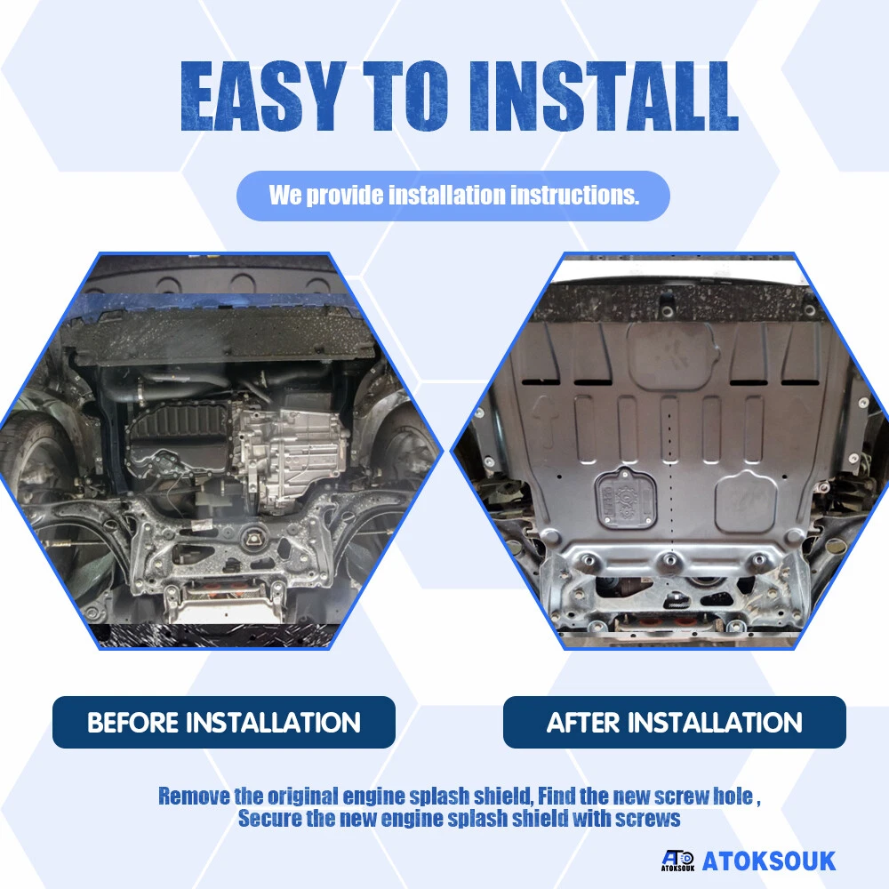 Product View Detail 1)Package Included: 1 X Engine Splash Shield ,Screw.Installation instructions 2)Material:Plastic steel Plastic steel is a kind of PVC profiles, due to its physical properties such as rigidity, flexibility, corrosion resistance, anti-aging performance, is usually used as copper, zinc, aluminum the best substitution.And is especially suitable for automobile chassis protect. 3)Better Than Original: The thickness is three times that of the original one. The original plate problem is that too thin ,broken down, easily falling off, and the hardness is not enough. To solve these problems,The new engine splash shield professionally designed . The steel beam design is to increase its hardness. 4)Wider Protection Range:it is Not 1:1 to the original Engine guard.Wider Size It is an upgrade to the original Engine guard.The new Engine guard covers a wider range. Provide wider and more robust protection. It will be larger, harder and more durable. 5)3-YEAR WARRANTY:Quality assurance We offer a 3-year quality warranty. it does not include damage caused by Human factors or External object impact. 6)EASY TO INSTALL :We provide installation instructions. Remove the original engine splash shield, Find the new screw hole ,Secure the new engine splash shield with screws. Suggest professional installation, under normal circumstances, do not need to drill holes.the car model changes, may need to drill holes. you can proactively contact us any question. We will reply within 24 hours(Excluding holidays ). Shipping Policy Payment Method Returns Policy Shipping Policy Please provide the correct address and phone number 1) We only ship to the confirmed address provided by eBay. Before you pay, please make sure your address in eBay matches the address you would like us to ship to. we must have your correct telephone number and address for express delivery to your door. Fast Shipping 2) For domestic shipments in the United States, we usually ship through FedEx, UPS, and USPS. Usually your goods will arrive within 1-7 working days. If you encounter a delay in the arrival of the goods, please contact us. 3) We ship to worldwide via international post airmail, FedEx,UPS,DHL The items will arrive to you about 5-15 days. I mport duties,taxes are not included in the item price or shipping charges, the buyers will be responsible for the taxes if necessary. Payment Method Returns Policy Copyright © 2017 DataCaciques Home Payment Shipping About us Contact us Product View Detail 1)Package Included: 1 X Engine Splash Shield ,Screw.Installation instructions 2)Material:Plastic steel Plastic steel is a kind of PVC profiles, due to its physical properties such as rigidity, flexibility, corrosion resistance, anti-aging performance, is usually used as copper, zinc, aluminum the best substitution.And is especially suitable for automobile chassis protect. 3)Better Than Original: The thickness is three times that of the original one. The original plate problem is that too thin ,broken down, easily falling off, and the hardness is not enough. To solve these problems,The new engine splash shield professionally designed . The steel beam design is to increase its hardness. 4)Wider Protection Range:it is Not 1:1 to the original Engine guard.Wider Size It is an upgrade to the original Engine guard.The new Engine guard covers a wider range. Provide wider and more robust protection. It will be larger, harder and more durable. 5)3-YEAR WARRANTY:Quality assurance We offer a 3-year quality warranty. it does not include damage caused by Human factors or External object impact. 6)EASY TO INSTALL :We provide installation instructions. Remove the original engine splash shield, Find the new screw hole ,Secure the new engine splash shield with screws. Suggest professional installation, under normal circumstances, do not need to drill holes.the car model changes, may need to drill holes. you can proactively contact us any question. We will reply within 24 hours(Excluding holidays ). Shipping Policy Payment Method Returns Policy Shipping Policy Please provide the correct address and phone number 1) We only ship to the confirmed address provided by eBay. Before you pay, please make sure your address in eBay matches the address you would like us to ship to. we must have your correct telephone number and address for express delivery to your door. Fast Shipping 2) For domestic shipments in the United States, we usually ship through FedEx, UPS, and USPS. Usually your goods will arrive within 1-7 working days. If you encounter a delay in the arrival of the goods, please contact us. 3) We ship to worldwide via international post airmail, FedEx,UPS,DHL The items will arrive to you about 5-15 days. I mport duties,taxes are not included in the item price or shipping charges, the buyers will be responsible for the taxes if necessary. Payment Method When you make a payment,please make sure the following information is included: . Name: . Full and Correct Address: . Post code: . Phone number: please make sure your address in ebay matches the address you would like us to ship to. Returns Policy 30 day free return. Please ensure that the product, accessories, and outer packaging are intact On Sep 27, 2024 at 02:35:41 PDT, seller added the following information: