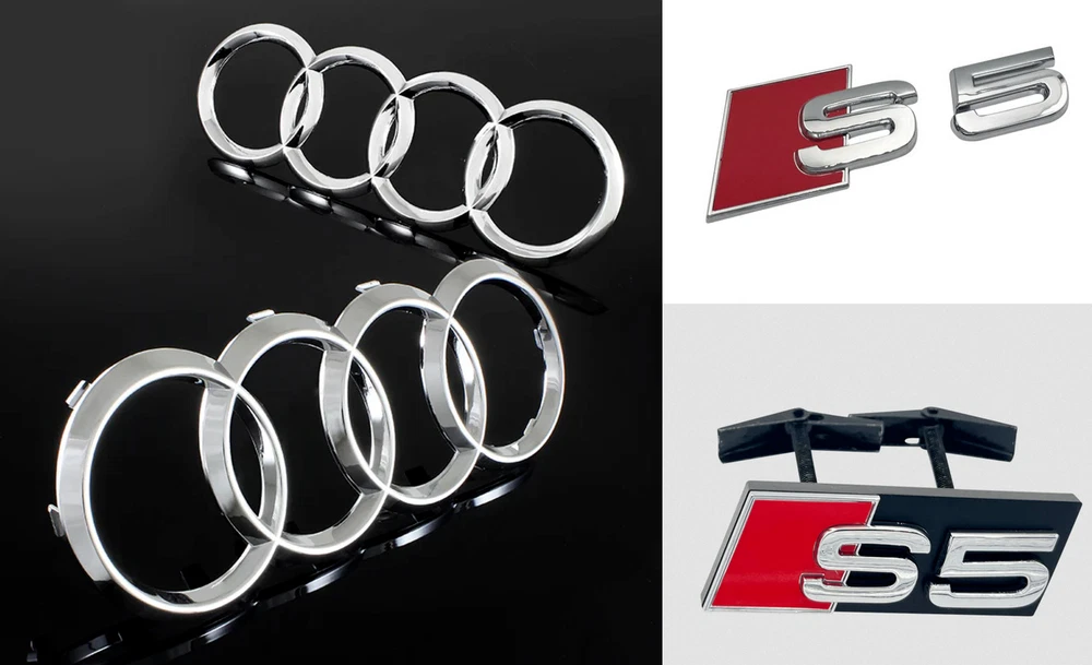 For Audi S5 Car Hood Rear Rings Front Grille Emblem Boot Decal Sticker Chrome