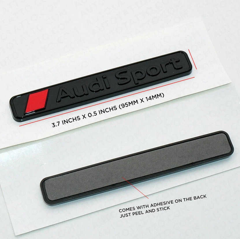 Highlights Brand New - Direct Replacement Parts. Perfect Fit - These Look Like They've Been Fitted In The Factory. Very High Quality - OEM Automotive ABS. Complete with Adhesive Tape on the reverse side Easy installation (stick on) / No Drilling Required 3D design, excellent quality, rustproof and waterproof,never fade. Product description This Badge to make your Audi stand out and to make them look more aggressive. The Badge simply sticks on Car hood / trunk / tailgate / fender/ door/ rear windshield / or anywhere you want. Complete with Adhesive Tape on the reverse side.no tools required easy installation,before sticking, completely clean off the wax and dust on the sticker surface. Package Contents: - 1x Audi Sport Nameplate Emblem - 4S0 853 737 D 2ZZ On Sep 6, 2024 at 08:12:45 PDT, seller added the following information: