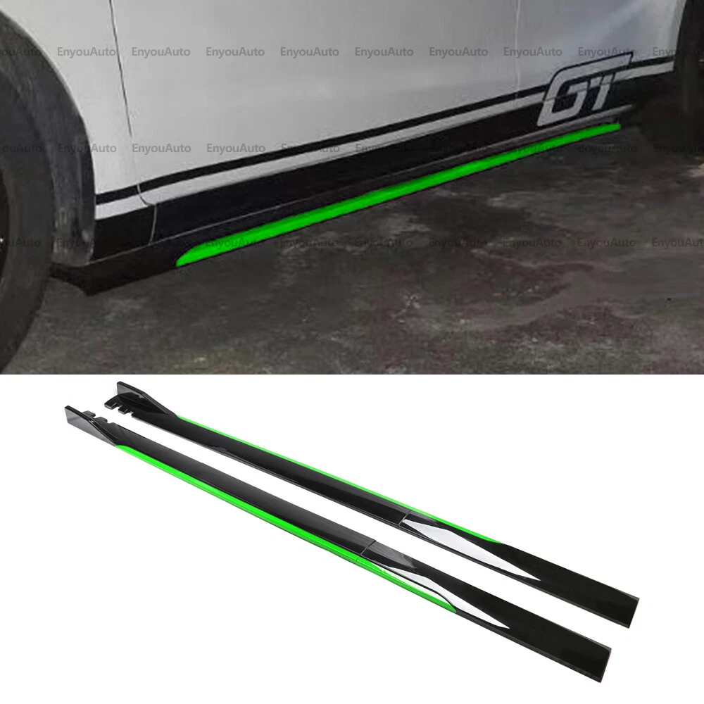Manufacturer Part Number: Does Not Apply Placement on Vehicle: Left, Right gtin13: Does not apply Interchange Part Number: Does Not Apply Type: 86 inches UNIVERSAL Side Skirt Extension Rocker Panel Splitter Mounting Hardware Included: Yes Color: Black + Green Material: High Quality ABS Attachment Method: Screws Surface Finish: Painted Fitment Type: Direct Replacement Number of Pieces: 2 Brand: Unbranded UPC: Does not apply Performance Part: Yes Features: Can be cut according to the length of the side skirt of the car