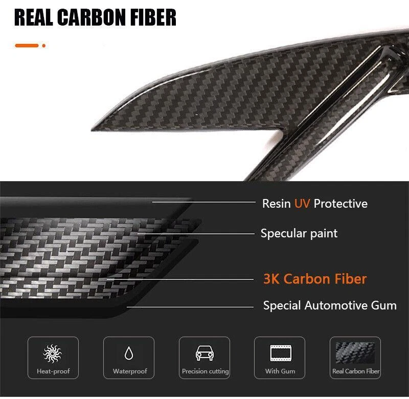 Feature: 1.Fit For BMW 3Series G80 M3 Sedan 2021UP 2.Perfect fitment ,Free Glue adhesive tape included 3.Carbon Fiber Material,light weight,high hardness,polished surface 4.Embedded packaging,damp-proof,shockproof & crashproof 5.Add a sleek, racing style to your vehicle’s exterior for a mean, lowered appearance 6.Help add to the vehicle’s aerodynamics to increase handling and high-speed stability Specification: Color:Black Material:Dry Carbon Fiber Process: Vacuum molding Pattern:3X3 twill weaven Packaging:Carton box Feature: 1. Fit For BMW 3Series G80 M3 Sedan 2021UP 2.Perfect fitment ,Free Glue adhesive tape included 3.Carbon Fiber Material,light weight,high hardness,polished surface 4.Embedded packaging,damp-proof,shockproof & crashproof 5.Add a sleek, racing style to your vehicle’s exterior for a mean, lowered appearance 6.Help add to the vehicle’s aerodynamics to increase handling and high-speed stability Specification: Color:Black Material: Dry Carbon Fiber Process: Vacuum molding Pattern:3X3 twill weaven Packaging:Carton box Package Including: 2PCS Side Fender Cover Trim Cover Installation: Professional installation is recommended. 1. Compare & Check The Install Position 2. Clean The Surface On Car 3. Paste Glue Tape On Prodcut 4. Stick Item On Position About Payment and tax About Return policy About shipping and tax About us Contact us About Payment and tax 1. We ship to your eBay address.Please make sure your eBay address is correct before you pay. 2. Multiple Payment Methods Available: Credit Card, Debit Card, Gift Card, Apple Pay, Goggle Pay, PayPal and PayPal Credit 3.Your must complete the payment within 8 days or Ebay will automatically open unpaid item case For US Buyer: The invoice value of each item is less than 800USD ,so you no need to pay any tariff . NON-US Buyer Note: Most countries are tax free based on our invoices, if tax is required, which will be buyer's responsibility. About Return policy 1.Customer satisfaction is our top goal. We believe our items are so outstanding. All products are quality checked. They are new and in good condition when shipped to our customers. We are convinced you will be happy with your Purchase. 2.If product is defective or damage upon arrival, or wrong product shipped, please contact us immediately. 3.Please contact us first if you have any problems/questions/concerns. We will be happy to resolve any issues you may have in a cordial and friendly manner. 4.We offer refund or exchange within 30 days after buyer received damaged, incorrect or defective item. Please always contact us to resolve any problems, we will do our best to satisfy you. Thanks very much. About shipping and tax The shipping fee is only for the mainland of each country,it does not include the overseas territories,such as Virgin Islands (U.S.) , Puerto Rico, French Reunion Island, etc.But on ebay,when buyers from Puerto Rico, the shipping fee is equal to United States, it is NOT correct,please contact us for correct shipping fee, or we will cancel the order.Sorry for the inconvenience,and thanks for your cooperation. 1. Please contact us if we have not specified the shipping fee to your country. 2. If you want to upgrade the shipping,please contact us before making payment,we will revise the shipping fee. 3.Import duties, taxes and charges are not included in the item price or shipping charges. These charges are the buyer's responsibility. Please check with your local customs to determine what these additional costs will be prior to bidding/buying. Please track your parcel constantly, once customs issue arise, please contact with your local customs in time to avoid returning. 4.Package will be shipped from China, usually it will be delivered in 3-15 business days to most countries. About us 1.Powerful professional factory to ensure to provide best quality Products. We are specilized in designing,developing and producing carbon fiber,PU,FRP car body parts, and interior and exterior trims for Germany & American & luxury super cars. 2.We sell them directly to ensure give you best price at best quality.We have distributors from all over the world,Europe,US,Middle East,South Afria etc... 3.Our company is one of the earliest and leading auto parts manufacturer in China,established in 2002. We had more than 15 years of experience in overseas business. We are offering more of material finishing, please refer to the listing title for the correct one: 1.Carbon Fiber, surface glossy finished, 3K twill weave real carbon fiber material. 2.FRP Fiber Glass, Matt Black or Gloss black or grey unpainted semifinished, MUST primed & painted before fitted 3.Matte Carbon Fiber, it is matte finished. 4.ABS, it is plastic and can be installed directly. Contact us 1.We are trying our best to explain all details of the products here! If you have any question, please feel free to contact us by Ebay message, and We will get back to you within 24-48 hours. 2. Customer satisfaction is our NO.1 priority. If you are not happy with the item that you purchase, please contact us first. We will try our best to solve the problem with you. Please leave us a positive feedback if you receive the item. Please do not leave negative or neutral feedback without any contact.If you haven't received item in 30 days, please contact us . We appreciate your business. Happy Bidding & Have a nice day! 3.Working hours: From 8 a.m. to 6 p.m. from Monday to Friday. From 8 a.m. to 12 a.m. on Saturday morning Holiday/ Rest time: Saturday afternoon and Sunday