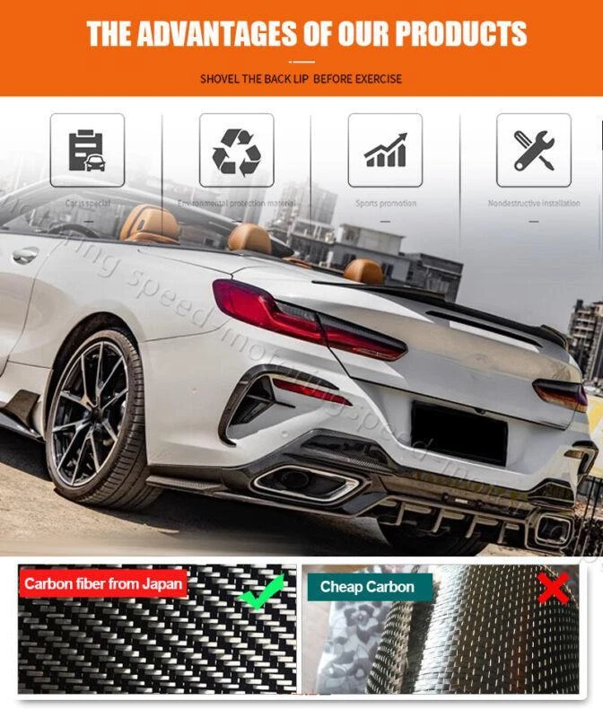 Description Item Type: Rear bumper splitter Material:Carbon fiber Item Weight: 1.3KG Special Features: Decoration Installation: The back with automotive adhesive tape Project: Car sticker Condition: new with box Fit For BMW 8 Series G14 G15 M-Sport M850i xDrive Coupe Convertible 2018-2023 Easy to install Back with double-sided glue. Please Confirm The Same As The Picture Before Installation Show With Your Car Description Item Type: Rear bumper splitter Material:Carbon fiber Item Weight: 1.3KG Special Features: Decoration Installation: The back with automotive adhesive tape Project: Car sticker Condition: new with box Fit For BMW 8 Series G14 G15 M-Sport M850i xDrive Coupe Convertible 2018-2023 Easy to install Back with double-sided glue. Please Confirm The Same As The Picture Before Installation Show With Your Car Installation Measures: 1. Be sure to clean and dry the installation location. 2. Carefully adjust the test to the part in the installation position. 3. Carefully remove the self-adhesive label and heat the tape with a hair dryer before installation. 4. Carefully secure the position and extend it from the side. Press hard for three minutes. 5. Do not expose to sunlight or water within 48 hours. 6. You can go to a professional car store to install it. Package Contents: 4pcs Rear Side Air Vent Trim Delivery details Payment and TAX Warranty Policy Return Policy Contact us Delivery details NOTE: The shipping fee is only for the mainland of each country, it does not include the overseas territories, such as Virgin Islands (U.S.) , Puerto Rico, Hawaii , French Reunion Island, etc. But on ebay, when buyers from Puerto Rico and overseas territories , the shipping fee is equal to United States, it is NOT correct,. please contact us for correct shipping fee, or we will cancel the order. Sorry for the inconvenience, and thanks for your cooperation. 1. Item will be shipped in 10 days, most within 2 days.usually it takes 7-30 days in transit to most countries. 2. If you want to upgrade the shipping, please contact us before making payment, we will revise the shipping fee. 3. We will ship according to your Ebay address. Please make sure it is correct and include phone number for delivery. If you have any questions , please contact us, we would do our best to serve you solve the problem. Payment and TAX 1.We accept Multiple Payment Methods Available: Credit Card, Debit Card, Gift Card, Apple Pay, Goggle Pay, PayPal and PayPal Cred. 2.Please leave note for your special request (e.g. Colors or Size) in ebay note when you pay the order. 3.Your must complete the payment within 7 days or Ebay will automatically open unpaid item case For US Buyer:The invoice value of each item is less than 800USD ,so you no need to pay any tariff . NON-US Buyer Note: Most countries are tax free based on our invoices, if tax is required, which will be buyer's responsibility. Warranty Policy We Warranty Our Product Within the Limited Warranty Policy Specified on Ebay. Please Email us if ou have any question regarding the warranty policy on a specific item. Most of the items are Aftermarket Parts and they are intended for off-road usage only, therefore no installation instruction will be included, Professional installation are Highly Recommended. We are not responsible for any damages to the item or the vehicle that occur during the installation of the item.Also, Please Make Sure Proper Installation is Performed as we are not responsible for item being missing or flew off after the installation. if you don't think the item can stay on the car properly, please do not attempt to drive the car with it and please check with professional shops/mechanics or contact us for assistance. Return Policy We Accept Returns Within the Return Period On Ebay. Return Authorization/Return Approval is Required For Every Return. So If you Wish to Make a Return On Your Purchase. Please Contact us Before You Send The item back For any damages occured to the item upon arrival, Please notify us within 5 days of the delivery so we can take proper action to fix the issue. So Please Kindly inspect and check the item condition upon arrival.For Any other Return Inquries, You can contact us within the return period to obtain return authorization/return approval. In case of return, the merchandise needs to be returned in original condition with origi- nal packaging in order to be eligible for an exchange or a refund. Items must be not opened in their original package. Any mark of installation, mounting, cutting, scratch or using will not be allowed. Contact us 1.We are trying our best to explain all details of the products here! If you have any question, please feel free to contact us by Ebay message, and We will get back to you within 24-48 hours. 2.Customer satisfaction is our NO.1 priority. If you are not happy with the item that you purchase, please contact us first. We will try our best to solve the problem with you.Please leave us a positive feedback if you receive the item.Please do not leave negative or neutral feedback without any contact.If you haven't received item in 30 days, please contact us and we will arrange refund.We appreciate your business.Happy Bidding & Have a nice day! 3.Working hours: From 8 a.m. to 6 p.m. from Monday to Friday. From 8 a.m. to 12 a.m. on Saturday morning Holiday/Rest time: Saturday afternoon and Sunday