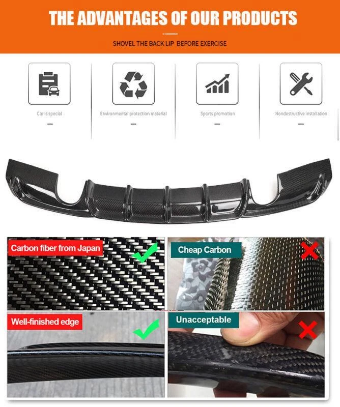 Fitment: Fit for BMW 3 Series F30 318i 320i 328i 330i 335i 340i M Sport Sedan 4 Door 2012-2018,Not for BMW F30 Base Models Specifications: Product Name: Rear Bumper Lip Material: Carbon Fiber Package Size: 143*30*15cm Package Weight:2.6kg Features: • Made of High Quality Lightweight Carbon Fiber. • Improve the aerodynamic characteristics by enhancing the transition between the high-speed airflow below the vehicle and the free airflow in the surrounding atmosphere. • Provide space for the airflow under the vehicle to decelerate and expand, thereby providing pressure recovery by providing a degree of "wake fill" or more accurately. • Does not cause excessive airflow separation and resistance and keep driving safety. Carbon Fiber Rear Bumper Lip The Rear Bumper Lip is one of the simplest mods you can do to the exterior of your car that will give your car that completely different look. Not only are spoilers meant for great looks, they also help Prevent the rear of the car from scratching. Fitment: Fit for BMW 3 Series F30 318i 320i 328i 330i 335i 340i M Sport Sedan 4 Door 2012-2018, Not for BMW F30 Base Models Specifications: Product Name: Rear Bumper Lip Material: Carbon Fiber Package Size: 143*30*15cm Package Weight:2.6kg Features: • Made of High Quality Lightweight Carbon Fiber. • Improve the aerodynamic characteristics by enhancing the transition between the high-speed airflow below the vehicle and the free airflow in the surrounding atmosphere. • Provide space for the airflow under the vehicle to decelerate and expand, thereby providing pressure recovery by providing a degree of "wake fill" or more accurately. • Does not cause excessive airflow separation and resistance and keep driving safety. • Sport style rear diffuser, perfect for decoration, increase both road safety and racing style. Package included: • Car Rear Lip Bumper Body Kits • Mounting Accessories Delivery details Payment and TAX Return Policy Warranty Contact us Delivery details NOTE: The shipping fee is only for the mainland of each country, it does not include the overseas territories, such as Virgin Islands (U.S.) , Puerto Rico, Hawaii , French Reunion Island, etc. But on ebay, when buyers from Puerto Rico and overseas territories , the shipping fee is equal to United States, it is NOT correct,. please contact us for correct shipping fee, or we will cancel the order. Sorry for the inconvenience, and thanks for your cooperation. 2. If you want to upgrade the shipping, please contact us before making payment, we will revise the shipping fee. 3. We will ship according to your Ebay address. Please make sure it is correct and include phone number for delivery. If you want to know the exact shipping time , please contact us . Payment and TAX 1.We accept Multiple Payment Methods Available: Credit Card, Debit Card, Gift Card, Apple Pay, Goggle Pay, PayPal and PayPal Cred. 2.Please leave note for your special request (e.g. Colors or Size) in ebay note when you pay the order. 3.Your must complete the payment within 7 days or Ebay will automatically open unpaid item case For US Buyer:The invoice value of each item is less than 800USD ,so you no need to pay any tariff . NON-US Buyer Note: Most countries are tax free based on our invoices, if tax is required, which will be buyer's responsibility. Return Policy 1.Customer satisfaction is our top goal. We believe our items are so outstanding. All products are quality checked. They are new and in good condition when shipped to our customers. We are convinced you will be happy with your Purchase. 2.If product is defective or damage upon arrival, or wrong product shipped, please contact us immediately. Returns accepted within 30 days of delivery date and item must be in original new condition, not worn or altered in any way with attached tags & wrap. Otherwise deal is final. Return shipping must be paid by buyer. Please always contact us to resolve any problems, we will do our best to satisfy you. Thanks very much. Warranty 30 Days Money Back It is our goal to provide 100% satisfaction and peace of mind to our customers. If you are not satisfied with the products for any reason within 30 days of receiving the item. (Items must be not opened in their original package. Any mark of installation, mounting, cutting, scratch or using will not be allowed.) Please be free to contact us first if you have any problems.thanks. Contact us 1.We are trying our best to explain all details of the products here! If you have any question, please feel free to contact us by Ebay message, and We will get back to you within 24-48 hours. 2.Customer satisfaction is our NO.1 priority. If you are not happy with the item that you purchase, please contact us first. We will try our best to solve the problem with you.Please leave us a positive feedback if you receive the item.Please do not leave negative or neutral feedback without any contact.If you haven't received item in 30 days, please contact us and we will arrange refund.We appreciate your business.Happy Bidding & Have a nice day! 3.Working hours: From 8 a.m. to 6 p.m. from Monday to Friday. From 8 a.m. to 12 a.m. on Saturday morning Holiday/Rest time: Saturday afternoon and Sunday