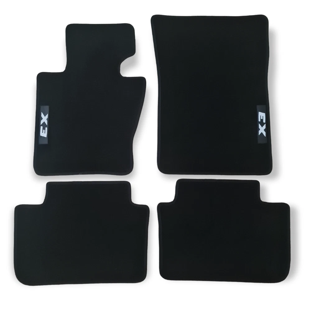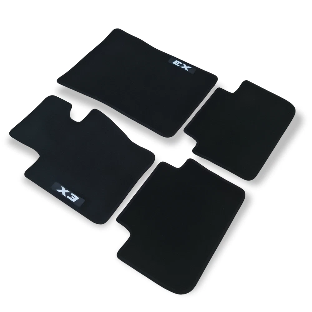 All Weather Black Heavy Duty Rubber Backing All Season Car Floor Mats For: BMW Series X3 E83 2003 2010 Car floor mats compatible with BMW X3 series E83 2003 2010 for all types of equipment, like M X3 , M Performance , Luxury etc. Rubber Backing Edge stripe Embroidery logo X3 Velcro stickers Anti Slip Long Lasting Waterproof Long lasting Perfect fitting Soft surface for driving comfort Easy to clean One set contains: Driver mat Co-Driver mat Rear left mat Rear Right mat