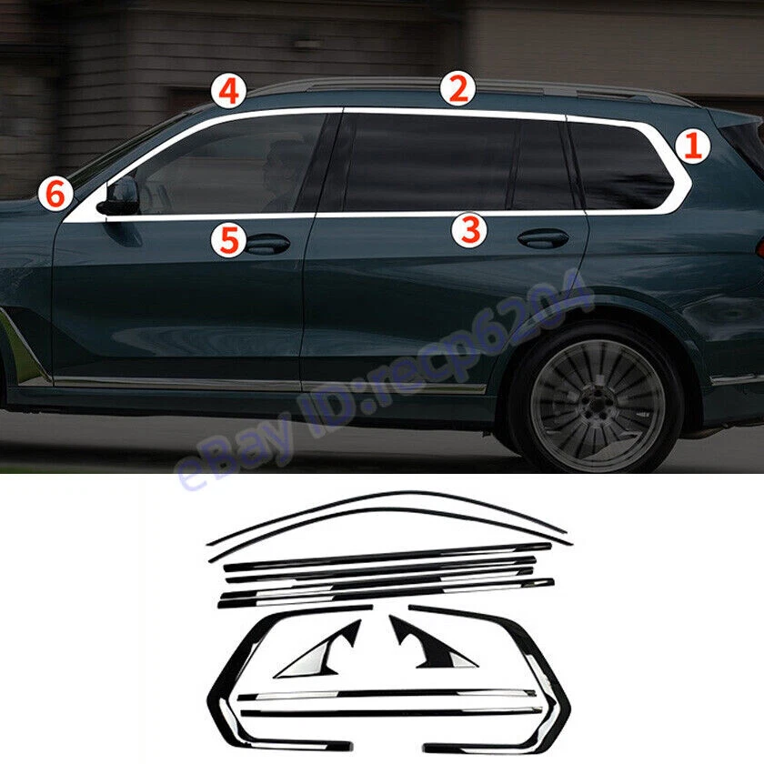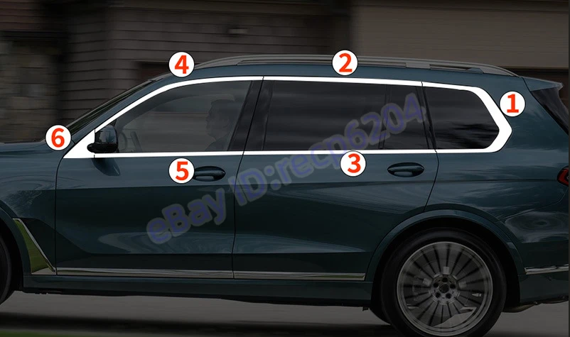12pcs Black Steel Car Window Frame Strip Cover Trim Decor For BMW X7 2019-2024 Product Description Attention: Because the same model car may be differently produced in different country. Please ensure the part of your car like our picture shows, or it will not fit, if any differences, please contact with us before purchase, thanks! Item Fitment: Fit For BMW X7 2019-2024 Item Description: Condition: 100% Brand New Material: High quality of stainless steel Color: Same as in the pictures Made in an ISO 9001 facility to ensure good quality Easy installed and No modification needed,double side Automotive tape at the back Pa ckage Include: 12pcs/set(Sold as seen, please ensure suitability carefully before purchase) This item doesn't come with manual installation Installation method: 1. Clean the location of the installation with rubbing alcohol before proceeding. (make sure to remove any grease, wax or dust etc) 2. Please ensure that the product completely fits before proceeding with installation. (Note: if there any questions or if the product does not fit properly, please contact us) 3. Remove the high strength double-sided adhesive from the back of the plate. In the case of a relatively low temperature, heat installation location, and plate with a hair dryer or a heat gun on low setting 4. Carefully place the product in desired location and press down for about 1-2 minutes, (Note: do not wash your car for 24-hours. The adhesive should be cured after 12-hours) 5. The installation is complete