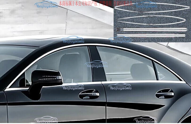 For Benz CLS W218 12-17 Silver Steel Windows Strip Sill Molding Cover Trim 8PCS