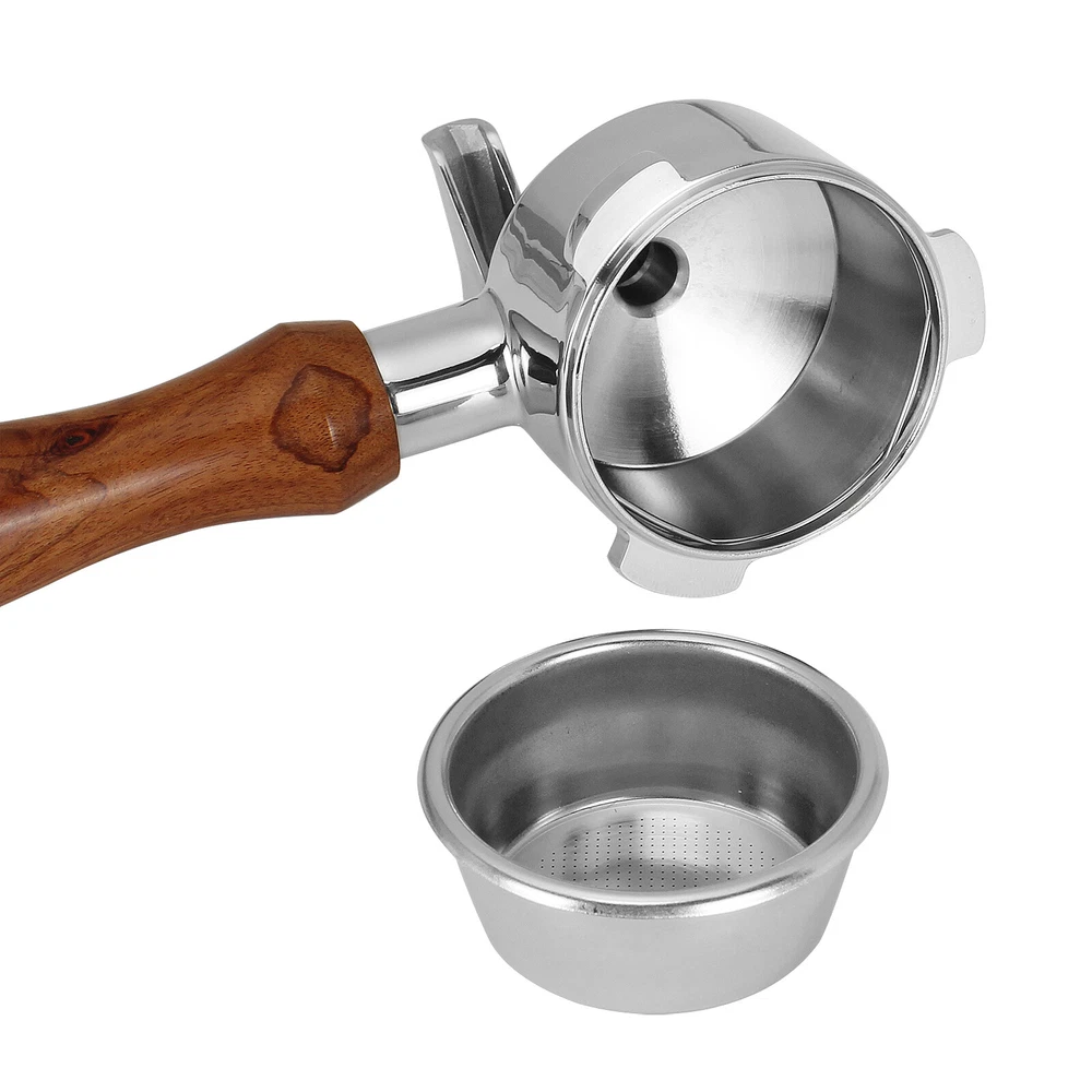 Descriptions: This coffee portafilter is design with double spouts, which allows you to make two espresso cups at the same time without coffee residue. Perfect for use at cafe or home which with many members, can improve the efficiency of coffee making Made of food-grade 304 stainless steel, its exceptional resistance to oxidation, corrosion, and rust, which ensures that your coffee stays free from any unwanted impurities. The handle is made of solid wood which provide a natural grip, ergonomic design also ensure that it remains stable extracting process. The filter basket and wood handle of this dibtsa portafilter can be disassemble, convenience to clean. Specifications: Condition: Brand New Type: Portafilter with Filter Basket Material: Wood + Stainless Steel Size: 54mm Color: Silver Fitment: Compatible with Breville RM-BES870XL, BES878BSS, BES840XL, BES840CBXL, BES840BSXL, BES810BSS. Package Includes: 1 x 54mm Portafilter These Home & Kitchen products are also on sale for a 10% reduction!!! USD 19.88 51mm Coffee tampe - walnut wood handle - Eco-friendly 304 stainless steel Base BUY NOW USD 19.88 53mm Coffee tampe - Eco-friendly 304 stainless steel Base - walnut wood handle BUY NOW USD 19.88 1x 58mm Coffee tampe - Eco-friendly 304 stainless steel Base, Walnut wood handle BUY NOW USD 26.09 1 Pcs of Large capacity Stainless Steel Coffee Ground Knock Box and Rubber stem BUY NOW USD 33.65 10.8*10.8*11.3cm Large Capacity Coffee Grounds Knock Box Anti-rust Easy to clean BUY NOW USD 44.72 13.8*13.8*13.5CM Large Capacity Coffee Grounds Knock Box Anti-rust Easy to clean BUY NOW USD 33.65 Large Capacity 10.8*10.8*11.3cm Easy to clean Coffee Grounds Knock Box Anti-rust BUY NOW USD 44.72 13.8*13.8*13.5CM Large Capacity Coffee Grounds Knock Box Anti-rust Easy to clean BUY NOW