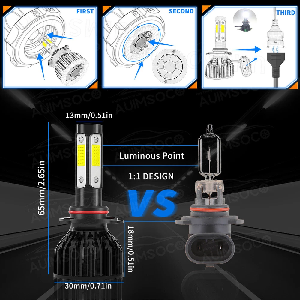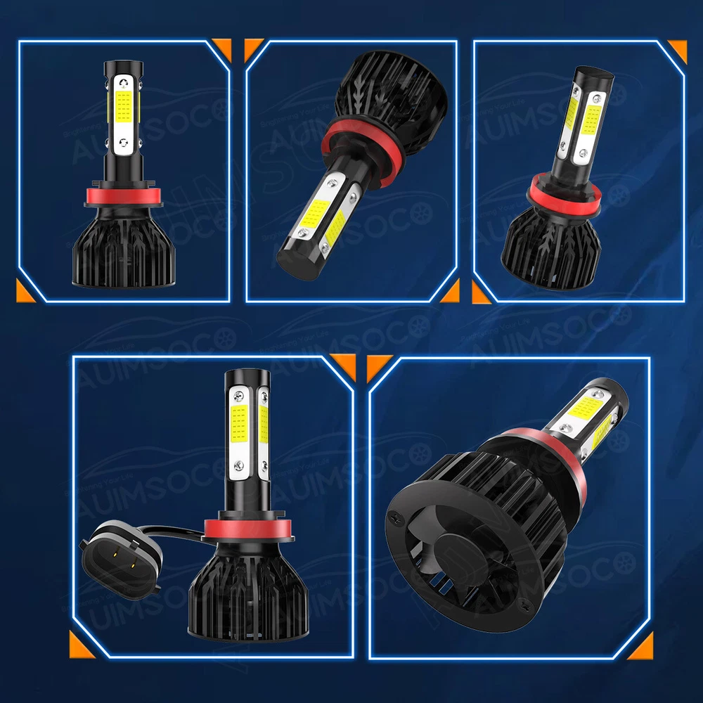 HOME PAYMENT SHIPPING ABOUT US CONTACT US Detail AUIMSOCO product details : 9005+H11 LED headlights light, 6000K Cool white LED light. 300% brighter than Halogen headlights. Light up your road but no blind others drivers. They have a perfect beam pattern without any dark spots or foggy light. LED & HALOGEN: LED is 6000K White Light while the halogen is yellow light, as we know, yellow light is easy make driver tired when driving in the night. And the white light as the daylight, it is more comfortable for the eyes. And LED light will give you a more wider and longer sight. It can help you see the road sign more clear. TURBO FAN and WATERPROOF DESIGN : K9 LED headlight kit design IP67 waterproof. It can work underwater! Rainproof driver, it also shockproof. 12,000 RPM high speed turbo fan will help the heat dissipation. In this way can ensure the bulbs lifespan last more than 50,000 hours. Buy it confidence. EASY INSTATION: Just plug-N-play, no wire cutting, you can done within 20 minutes. Tips: Insert into the right slot-clockwise, rotate-led chips face 3 o’ clock and 9 o’ clock direction. Otherwise, it will happen to yellow light or blue light in the edge and the light beam will not focus. FITMENT: This kit replaces traditional OEM stock headlights with our LEDs. In order to avoid buy wrong size bulb, please double check the bulb size before purchase. For a few newest years make cars(About 0.1%) Note: If you are not sure about your model, please contact us. We can provide special lights according to your model. Specifications: Plug type: 9005/HB3+H11 Luminous Flux: 4000LM/Per Pair Condition: 100% Brand New / Never Used Voltage: DC 9-32V ( Fit 12V,24V Vehicle ) Wattage: 40W/Per Pair IP Rate: IP67 LED type: latest 4Sides LEDs Color Temperature: 6000K White Beam Beam Angle: 360° Operating Temperature: -40 - +80°C Lifespan: 50000+ working hours Application: Headlights Number of Bulbs: 4 To Fit: Headlights Kit Placement on Vehicle: Left,Right,Front Application: Headlight (High + Low Beam Head Lights ) Package Content: 2 x 9005 High Beam + 2 x H11 Low Beam LED Headlights Bulbs 2 x H11 Fog Light Randomly send new and old packaging boxes Automotive LED headlamps advantages: LED lights than traditional halogen energy, more power. Xenon lamp brightness and proximity , but the LED lights light up without delay, to enhance road safety. Instant start no strong currents impact , effectively protecting the car comes with a battery , improving battery life of more than 30%. Fast cooling , the appearance of the most advanced design , thermal structure ingenious and reasonable.Less warranty, power driver with wide voltage constant current mode , the car can respond to a variety of voltage instability , the effective protection of normal use Led efficient and simple structure . Fewer Components damaged, repair the probability is very low , compared with HID ballast repair lower than 80% . Heating temperature is low , protect the car . Xenon working temperature up to 800 ° -1000 ° , the main reason for the car ignition . LED car headlights simple structure, fewer parts than xenon lamps, significantly lower than the xenon lamp failure rates ! Automotive LED headlamps color temperature balancing. The Xenon bulbs in the same color to clear , about 6000K. Install Caution: As a safety precaution, make sure that the car has had time to cool down properly before starting the installation process. Put the vehicle into park or make sure it is securely in gear. Make sure to have the ignition turned off and the keys removed. Be careful to avoid burns, especially when turning on or off the vehicles lighting. Be careful to avoid crushing or cutting the bulbs. Also make sure to not touch the bulbs with your fingers, as this will cause blotting. Fully examine the connection of the contact points, ports and the wires as faulty connections can cause lighting problems. Make certain that the end of the bulb does not come in contact with the interior light shield of the headlight when adjusting the bulb. Shipping Policy Payment Method Returns Policy Shipping Policy We will deliver the goods to you through USPS, which will take about 3-6 working days. You can track it online. Payment Method 1. You can use a variety of payment methods such as credit, debit, and gift cards, Apple Pay, Google Pay, PayPal, and PayPal Credit. 2. Items will be shipped to your eBay address. Please make sure it is correct. 3. Payment must be received 4 days after auction ended. Returns Policy If product is defective or damage upon arrival, or wrong product shipped, please contact us immediately. Returns accepted within 30 days of delivery date and item must be in original new condition, not worn or altered in any way with attached tags & wrap. Otherwise deal is final. Return shipping must be paid by buyer. HOME PAYMENT SHIPPING ABOUT US CONTACT US HOME PAYMENT SHIPPING ABOUT US CONTACT US Store Categories Store Categories For Ford For Chevy For GMC For Honda For Toyata For Dodge For Nissa Detail AUIMSOCO product details : 9005+H11 LED headlights light, 6000K Cool white LED light. 300% brighter than Halogen headlights. Light up your road but no blind others drivers. They have a perfect beam pattern without any dark spots or foggy light. LED & HALOGEN: LED is 6000K White Light while the halogen is yellow light, as we know, yellow light is easy make driver tired when driving in the night. And the white light as the daylight, it is more comfortable for the eyes. And LED light will give you a more wider and longer sight. It can help you see the road sign more clear. TURBO FAN and WATERPROOF DESIGN : K9 LED headlight kit design IP67 waterproof. It can work underwater! Rainproof driver, it also shockproof. 12,000 RPM high speed turbo fan will help the heat dissipation. In this way can ensure the bulbs lifespan last more than 50,000 hours. Buy it confidence. EASY INSTATION: Just plug-N-play, no wire cutting, you can done within 20 minutes. Tips: Inser