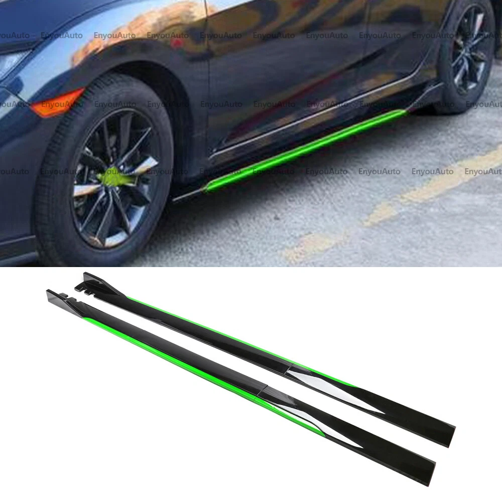 UPC: Does not apply Manufacturer Part Number: Does Not Apply Features: Can be cut according to the length of the side skirt of the car Material: High Quality ABS Placement on Vehicle: Left, Right Fitment Type: Direct Replacement Type: 86 inches UNIVERSAL Side Skirt Extension Rocker Panel Splitter Brand: Unbranded gtin13: Does not apply Attachment Method: Screws Interchange Part Number: Does Not Apply Mounting Hardware Included: Yes Color: Black + Green Performance Part: Yes Number of Pieces: 2 Surface Finish: Painted