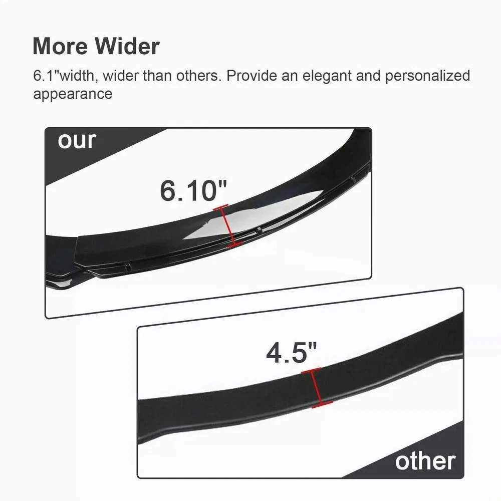 Home Payment Shipping About us Contact us Details Front Bumper Lip Key Features: ☛ Durable ABS Plastic: Updated material with added stiffeners to prevent deformation during long-term use. ☛ Increased Dimensions: Longer and wider than standard options for an elegant and personalized appearance. ☛ Protection: Prevents scraping and enhances the overall decorative level of your vehicle. ☛ Adjustable Angle: Compatible with most car models for a versatile fit. ☛ Easy Installation: Comes with 2 blocks for convenient installation and stable adjustment. ☛ Weight: Approximately 3.5 lbs . ☛ Placement on Vehicle: Front; Lower. Specifications: -Type: Front Lip Chin Bumper Body Kits -Material: ABS -Color: Gloss Black -Fitment Type: Performance/Custom Features: ☛ Direct Fit: Designed for easy installation and durable use. Quality Assurance: Great quality with strict standards for building and testing. Sporty Look: Provides a sporty appearance without being overly aggressive. Lightweight & Durable: Various optical effects depending on viewing angles. Professional Installation Recommended: Instruction not included; it's best to have a professional handle the installation. Package Includes: 1 x Set of Front Bumper Cover Lip (Front Spoiler) 1 x Bag Mounting Hardware Note: Please ensure the size is what you need! If you have any doubts or questions, feel free to contact us for confirmation! Shipping Policy Payment Method Returns Policy Shipping Policy All orders will be shipped within handling time ( Business Days ) after the payment is cleared. We use Standard / Expedited Shipping Service: all shipments will be with valid tracking number. If you didn't received your shipment within estimated shipping time , please contact us. We will check and offer a good solution to you . Our goal is customer satisfaction! Payment Method We accept multiple payment methods which ebay allowed . For faster service, please update your correct address before sending payment. We do not accept any transaction methods other than ebay. Returns Policy We offer 30 days exchange or return and money back policy If you feel unsatisfied with our product for any reason , please contact our professional customer team within 30 days ,you can choose exchange , return or refund , we will take care of your issue . If the product is defective or damage upon arrival, please contact us immediately don't open dispute , we will spare no effort to offer the best solution . As most of our products are aftermarket car parts, which DO NOT come with instructions.PROFESSIONAL INSTALLATION is highly recommended. Before install your item, please refer to internet or your local Auto parts store for some tips. Buyer assumes all risks for any improper installation and usage. NOTE : Any item that is approved for exchange or return, item will need to be in brand new condition, which means the item is never installed and needs to be kept in original packaging. Fees will be applied for missing parts or damages. We don't accept return if item got used , modification painting or damaged for improper installation. Whatever happens, please contact us. Our goal is 100% customer satisfaction. We will reply you within 24 hours on working days.