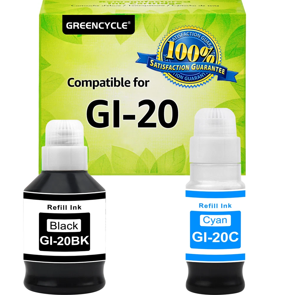 Compatible Model: PIXMA G5020 G6020 G7020 MegaTank Country/Region of Manufacture: China MPN: Does not apply Compatible Brand: For Canon Print Technology: Inkjet Brand: GREENCYCLE Type: Remanufactured Color: Black, Tri-Color Manufacturer Warranty: 1 year Model: INK-CN-GI20