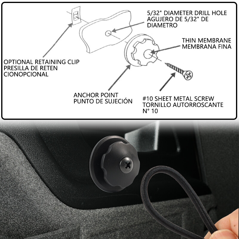 About this item 1. Material: this cargo net attachment is made of quality hard ABS plastic material, which is wear-resistant and not easy to age, durable. 2. Corrosion-Resistant Design: They are designed to resist corrosion and rust, ensuring long-term reliability and performance in all weather conditions. 3. Convenient Point: They are widely used in trucks, RVs, vans, boats, and trailers, providing a secure tie-down solution for a variety of applications. 4. Easy Installation: Each tie down hook is straight forward to install, allowing you to quickly create secure tie-down points wherever needed. This ease of installation makes them perfect for fast-paced loading and unloading scenarios. 5. Heavy-Duty Steel: It is designed for superior strength and security, ensuring that your cargo stays in place during transport. Whether you're on the road, you can trust these Hooks to keep your belongings safe and secure. Specification: Origin: Mainland China Material: Steel & Plastic Quantity: 16PCS Single maximum bearing capacity: 11LBS/Pc Suitable for:rear trunk for most of vehicle such as SUV, Hatchback, trucks, RVs, vans, boats, trailers... Included: 16Pcs Hardware Kit [As Pictures]